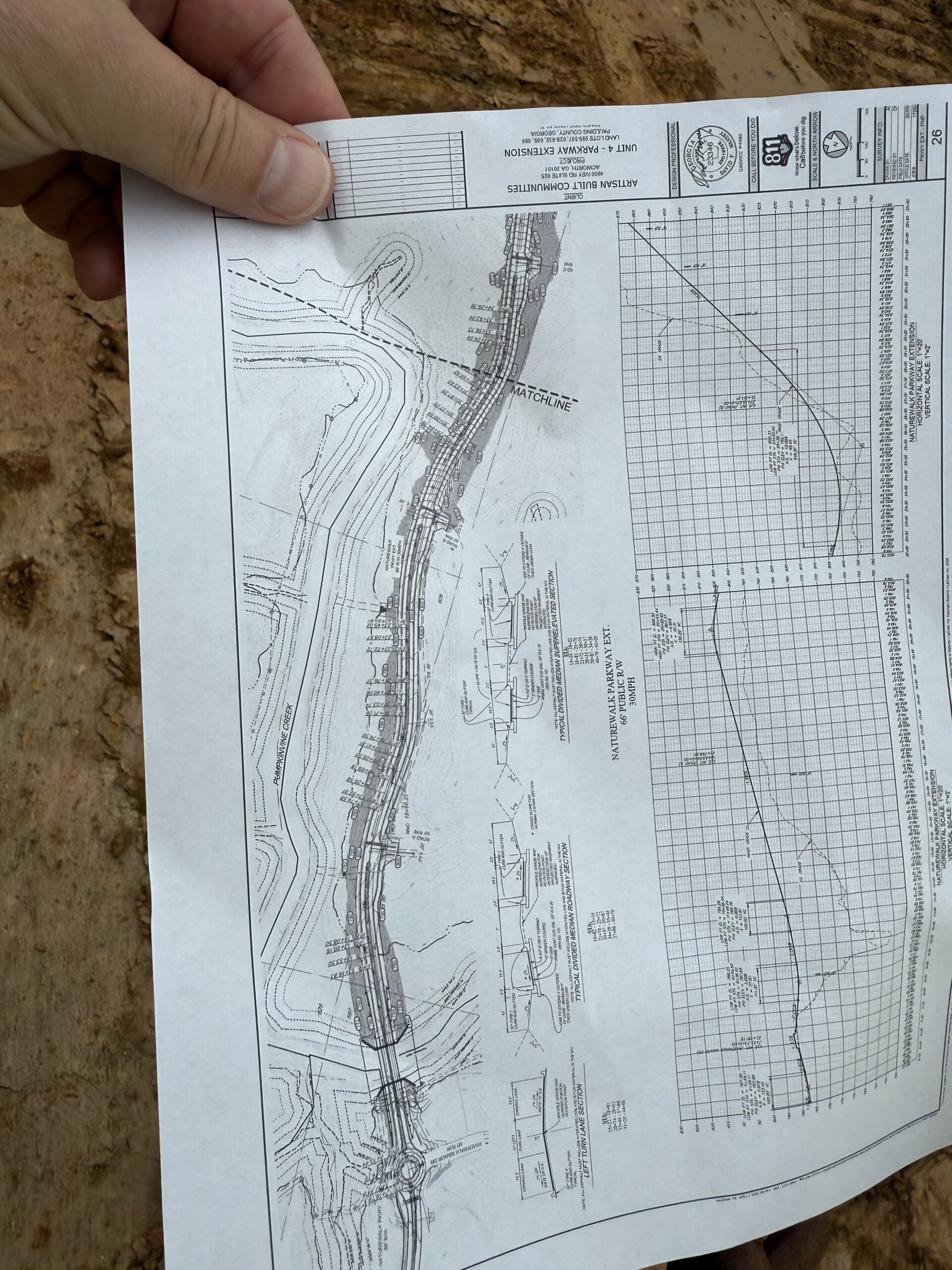 A proof-roll was performed previously on the designated section of the Main Parkway Extension (see attached map). Two areas failed the proof-roll and required remediation. The first area measured approximately 60 ft x 21 ft x 2 in in depth; soil was removed as directed. Remediation of the second failed area was not completed during this workday.
