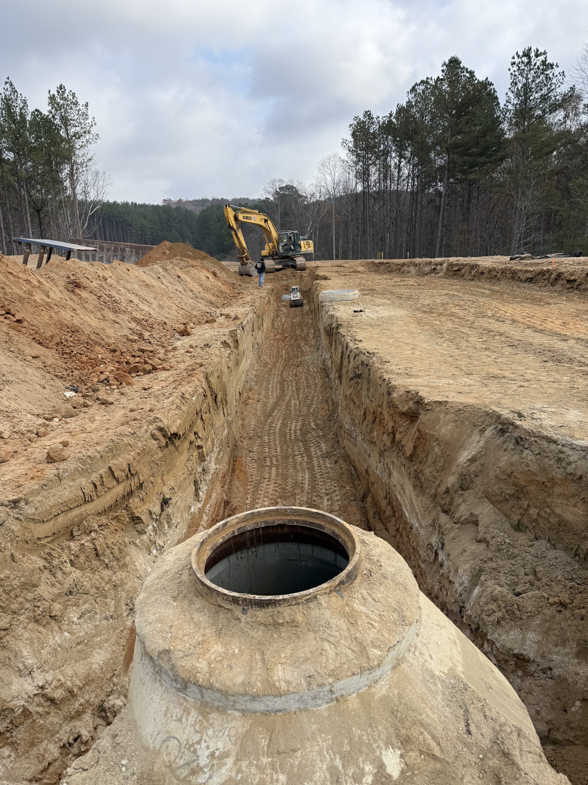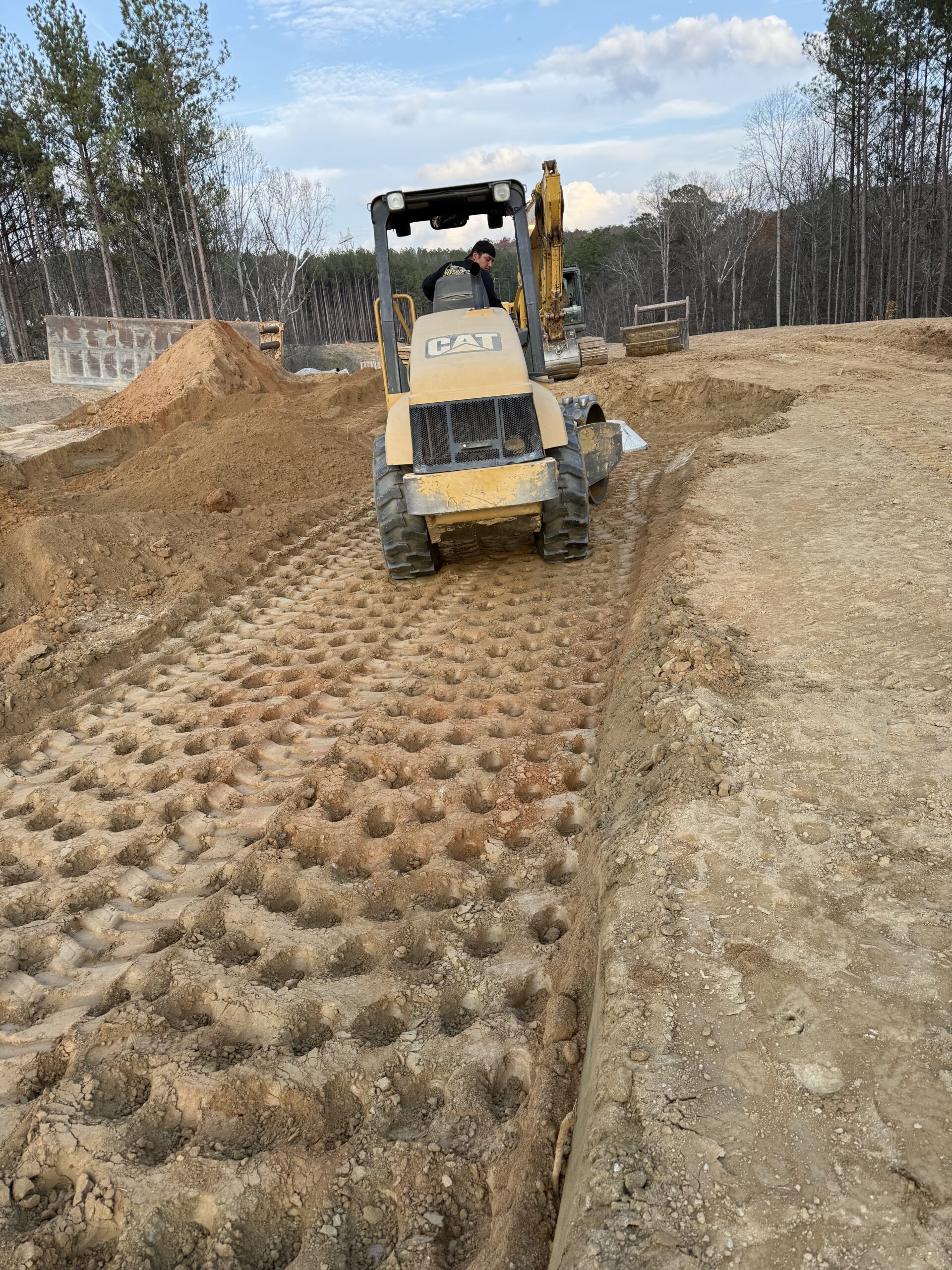 Work on this trench remained incomplete at the end of the day. The final lift left the trench approximately 1 foot below finished grade.