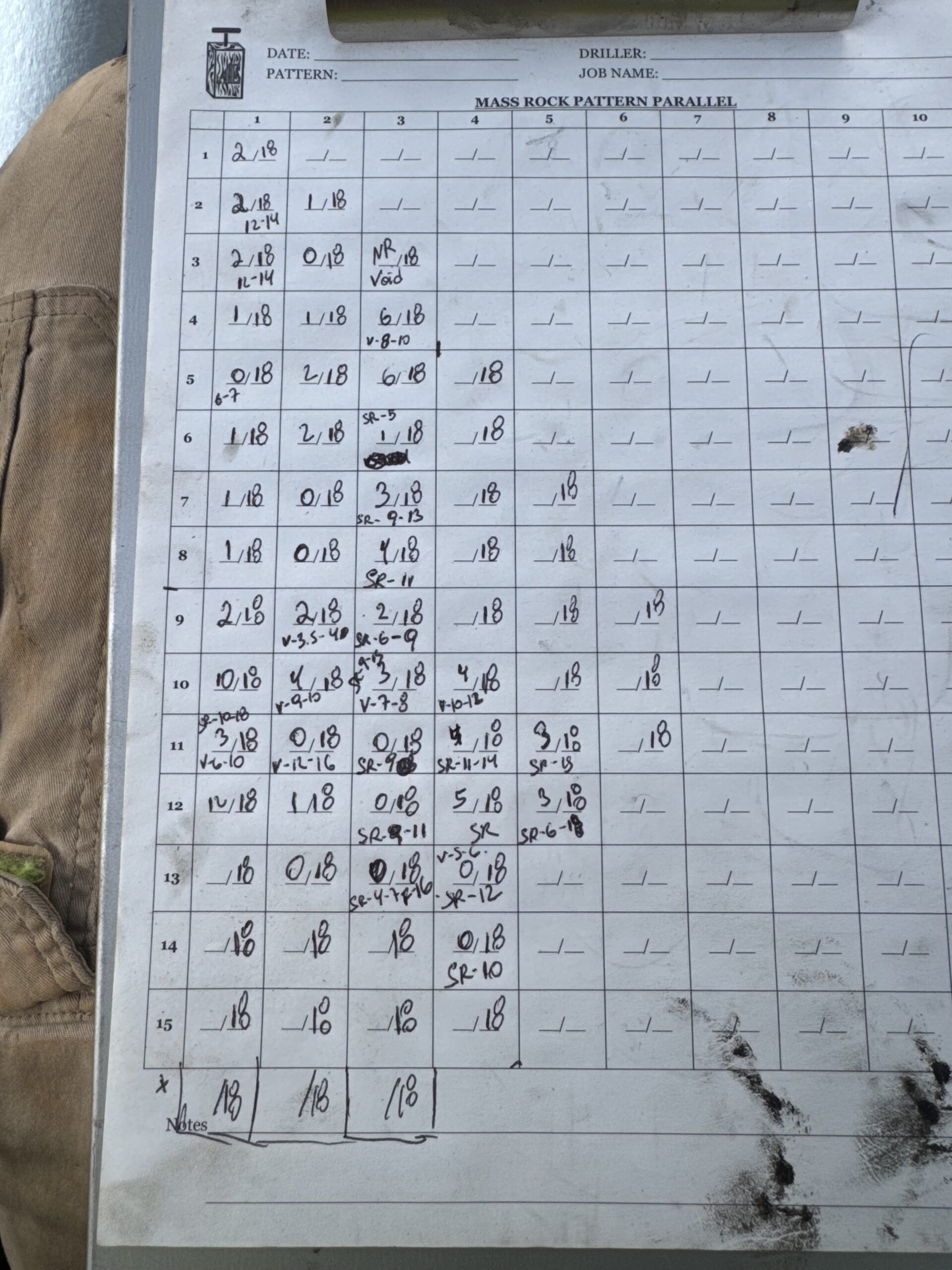 Drilling was completed by Advanced explosives (see attached drilling log).