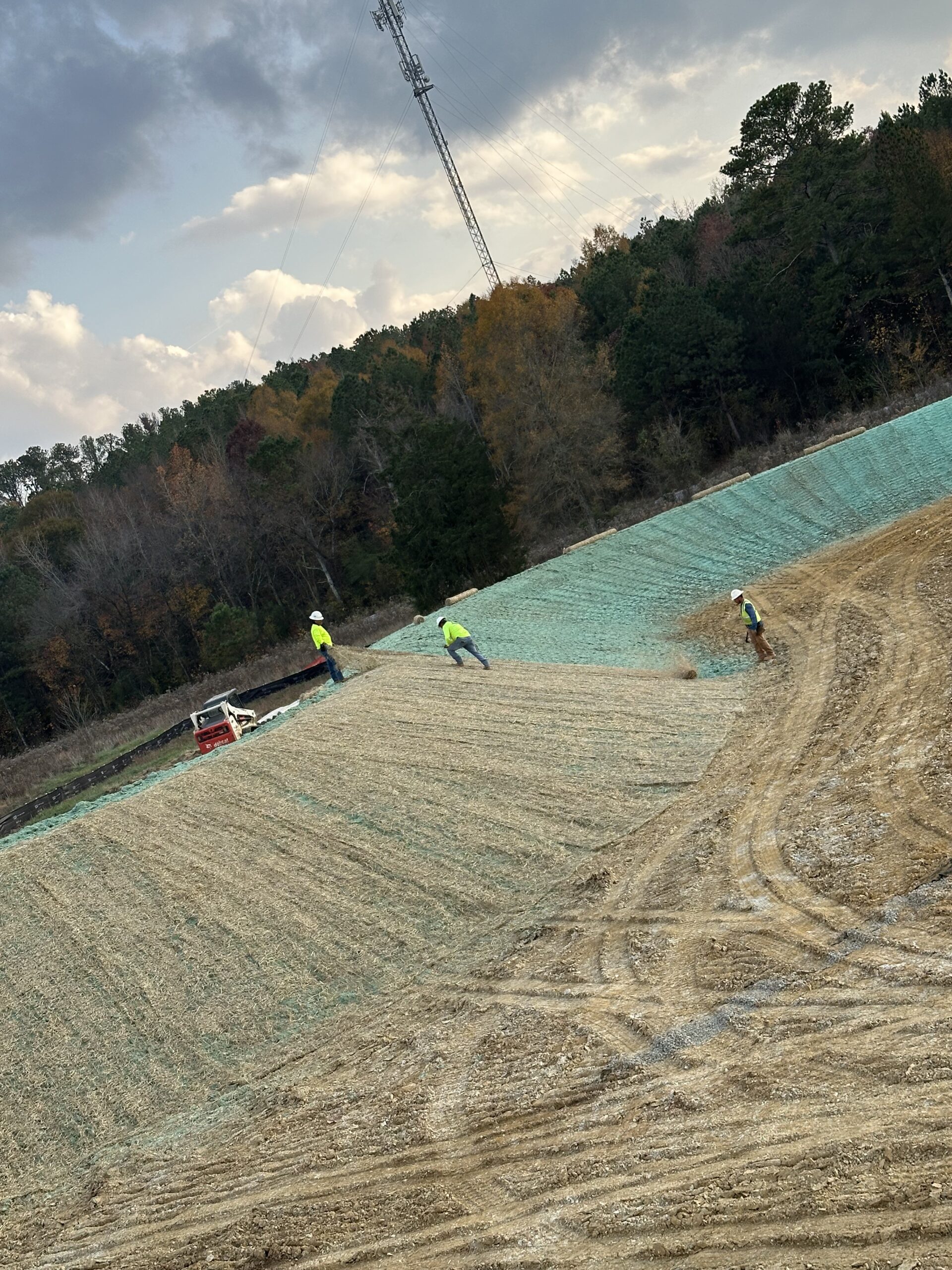 Meanwhile, the erosion-control crew continued installing straw erosion control blankets along the SD3-A pond slopes.
