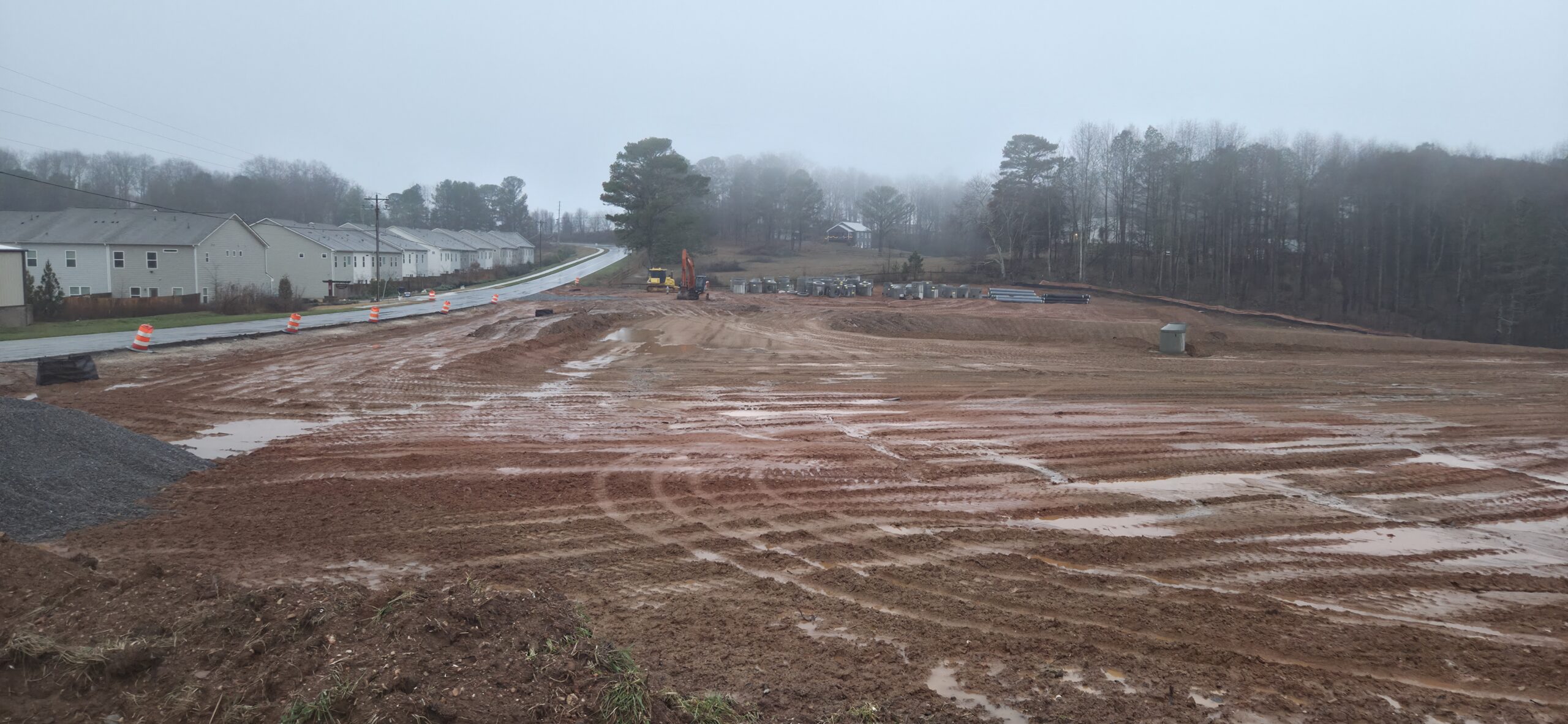 observation/testing of the placement of fill/backfill. Upon arrival to the site, it appears that the rainfall was far higher than what was reported on the forecast. The site is far too saturated to place any fill today. The contractor agreed and shut the site down for the day. The contractor focused of de-mucking the silt fence around the site. ASEC left the site.