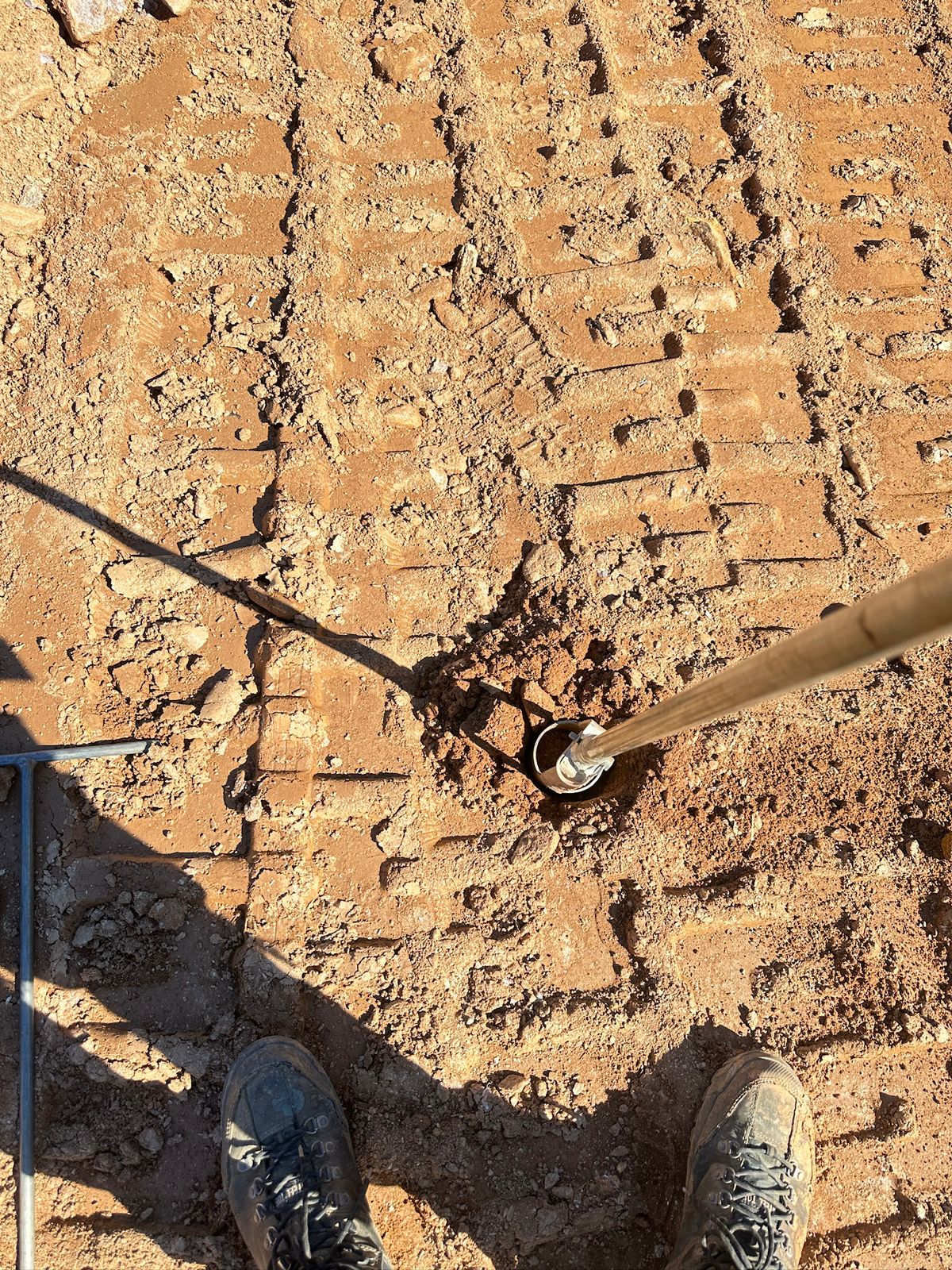 We began with the automatic bearing capacity tester at Station 293. The test indicated soil strength values exceeding 11,000 psi at depths of approximately 2–3 feet. To verify consistency, a second automatic test was performed approximately 50 feet away, and the readings closely matched the initial results, confirming uniform soil strength in that area.