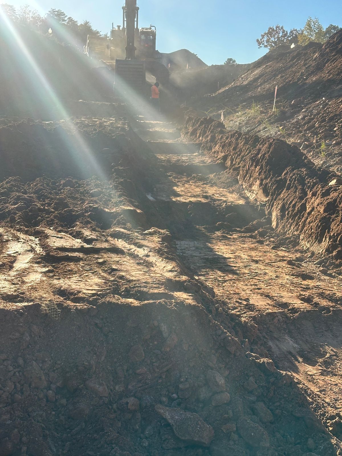 To further validate these findings, we conducted manual penetration tests at 50-foot intervals. The manual tests showed high resistance starting at the first foot, recording 25+ blows, and refusal at the second foot. A total of eight manual tests were performed between Stations 293 and 180, all showing similar results with 15–20+ blows in the first foot and early refusal. These consistent readings across all locations indicated dense, well-compacted soil suitable for supporting the planned structure.