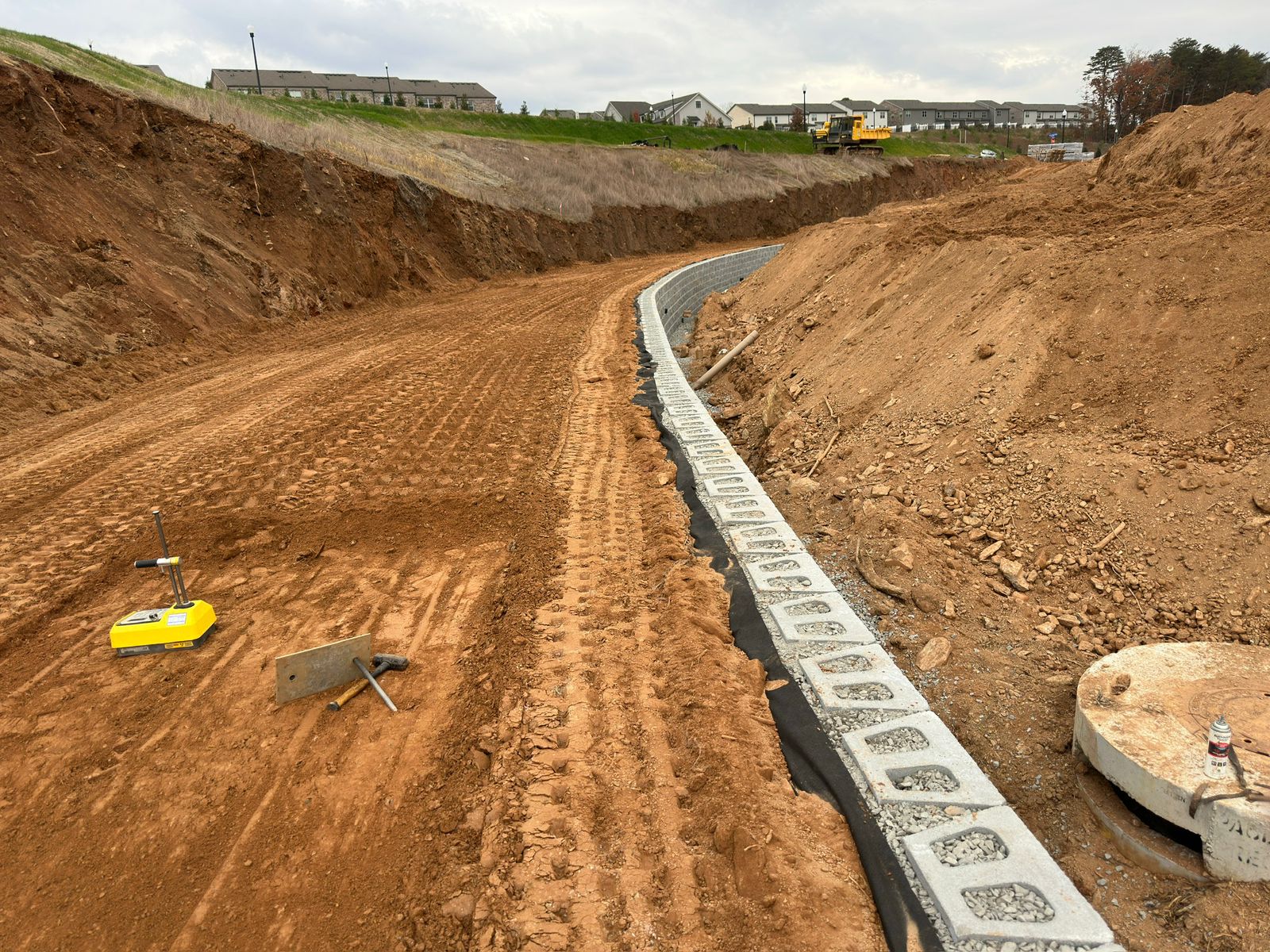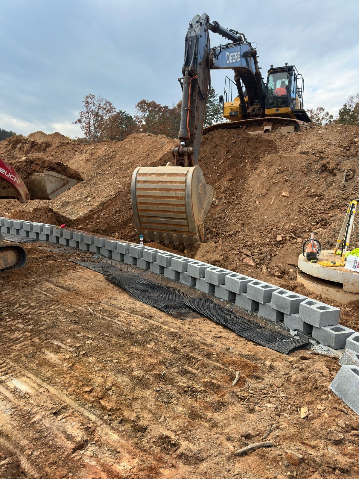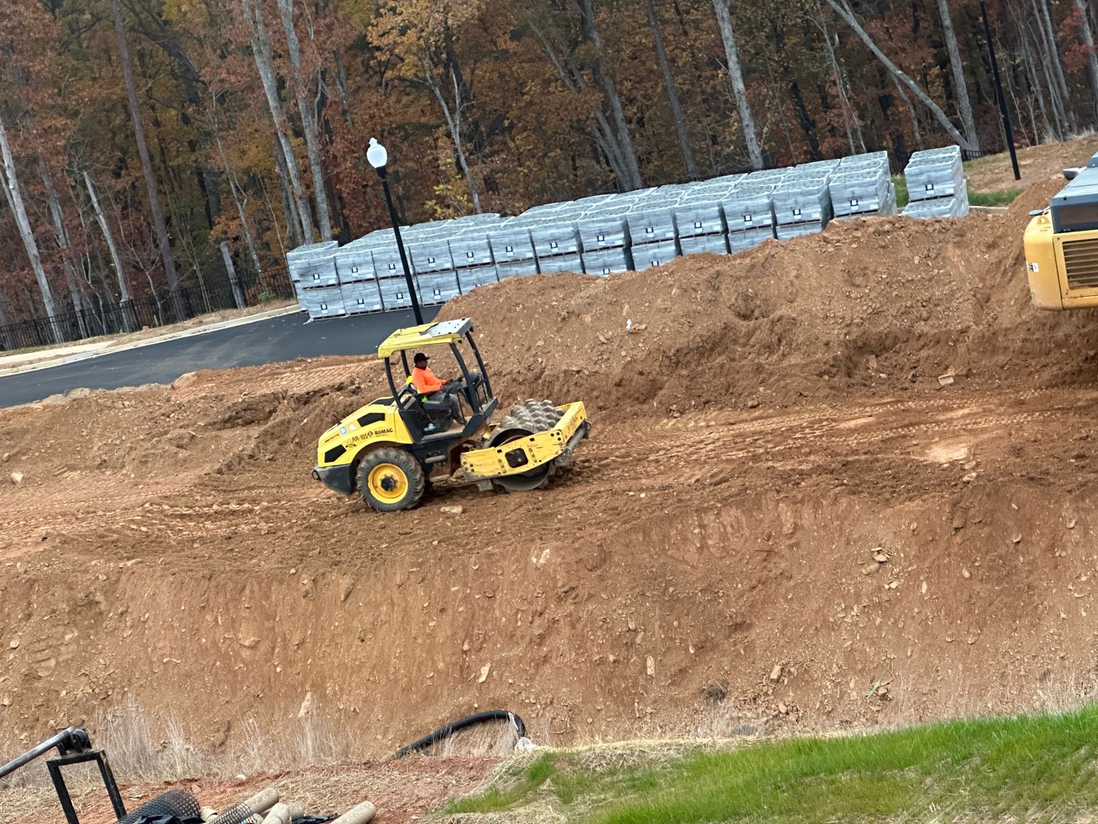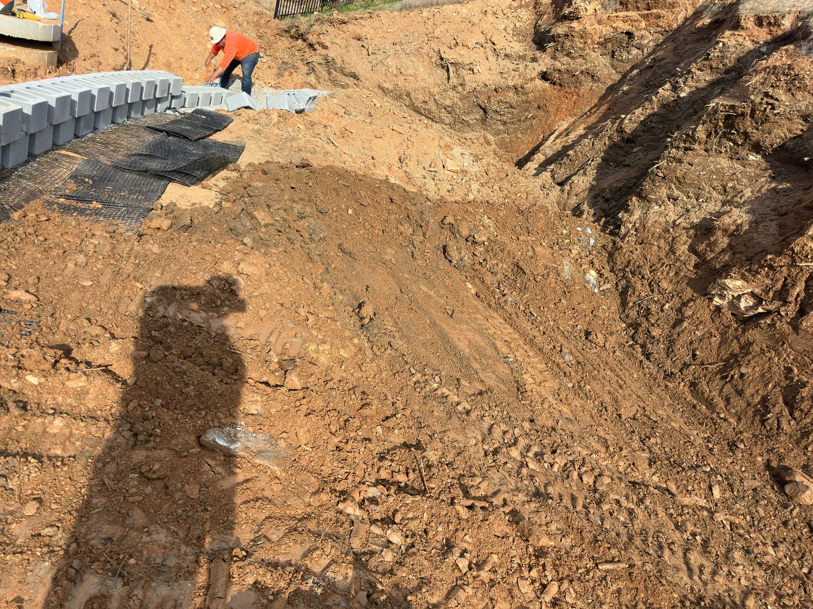 In addition to lift placement, the contractor also removed additional soil behind the retaining wall to reach the required grade line needed for the geogrid installation. As of today, the required line is properly established throughout the area, ensuring readiness for upcoming grid placement.