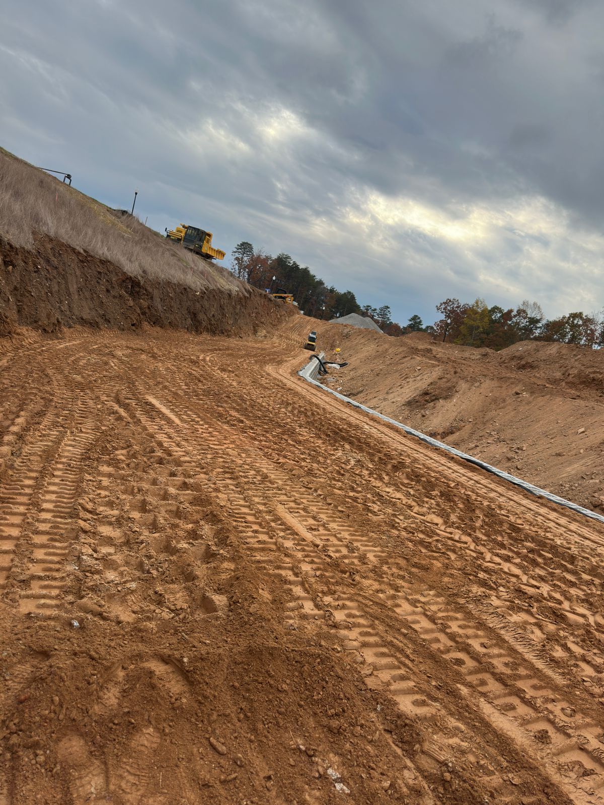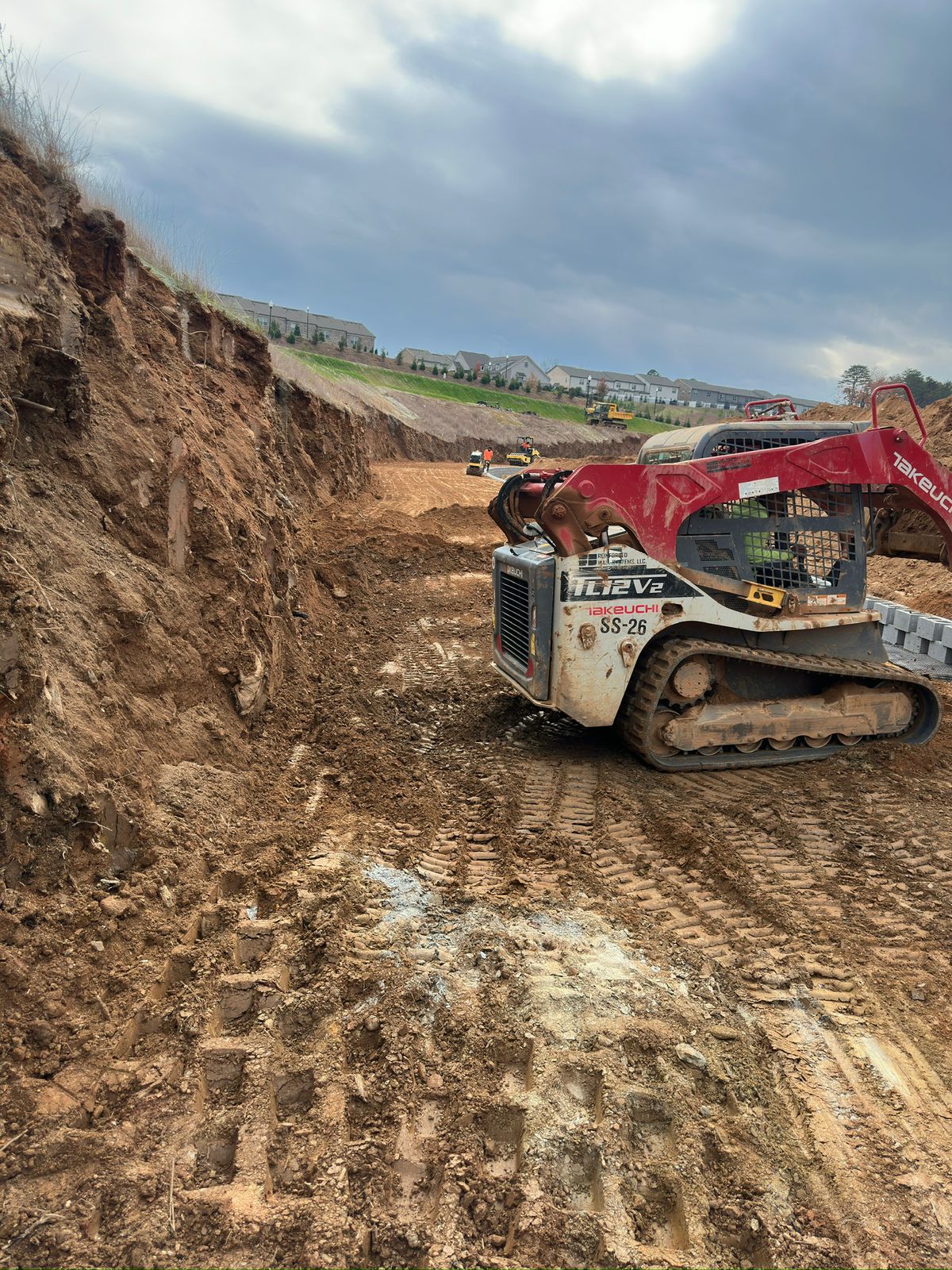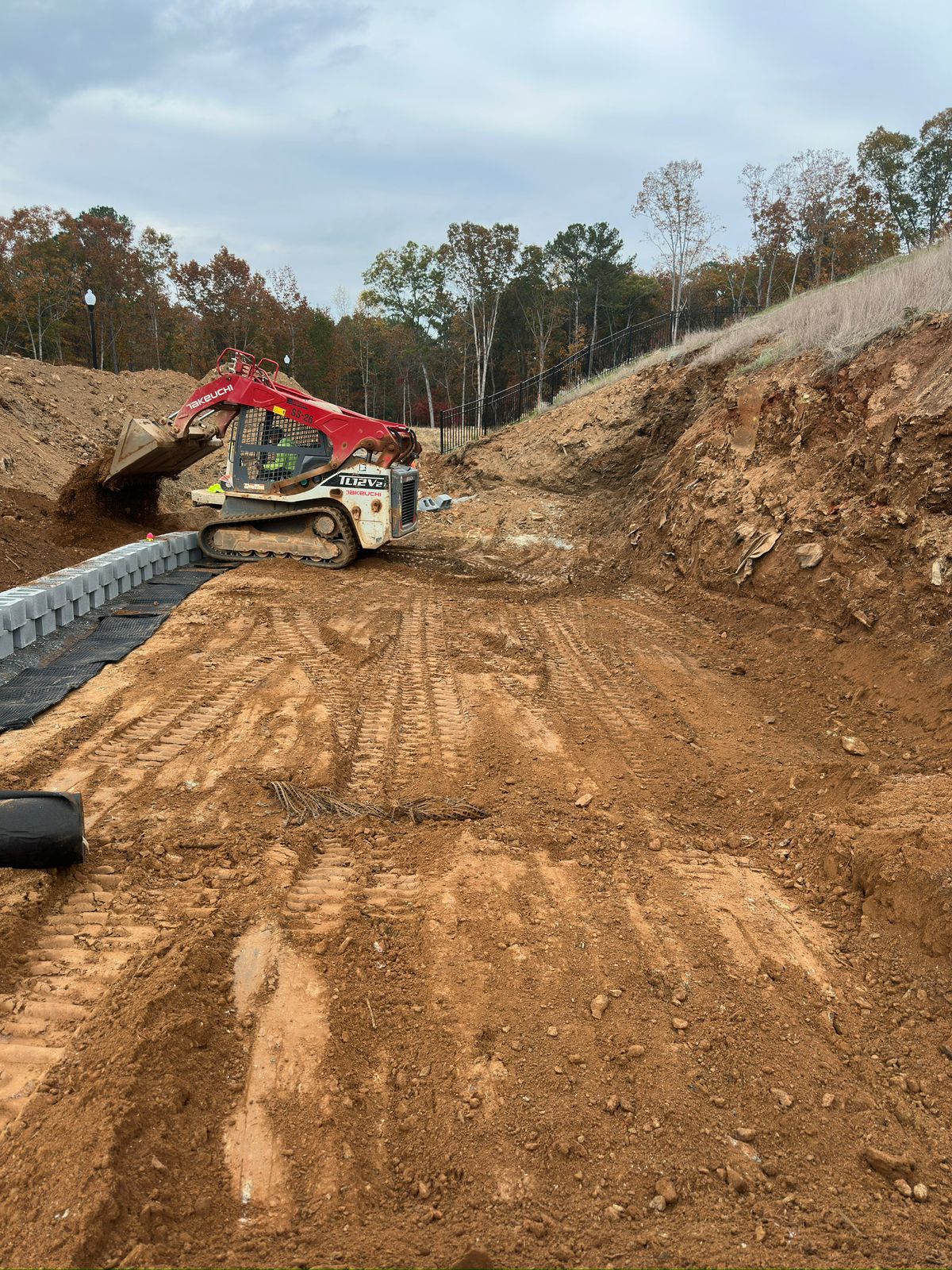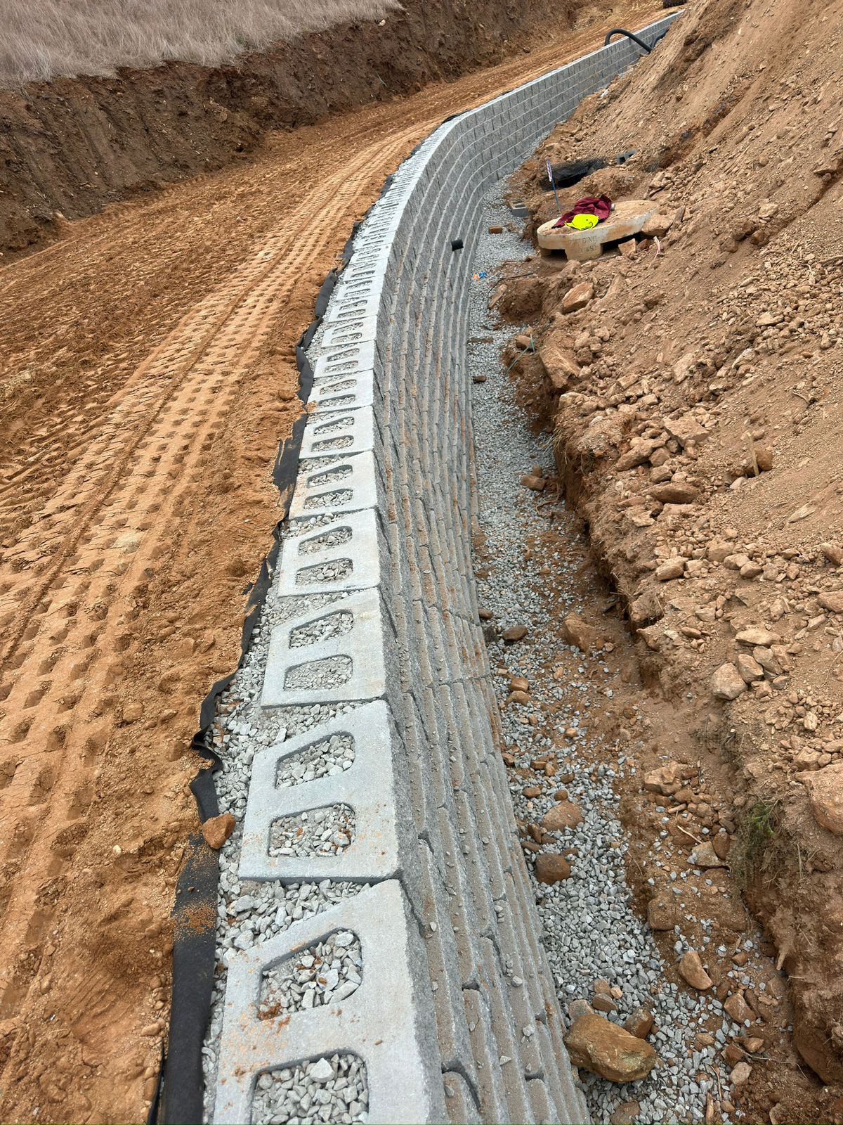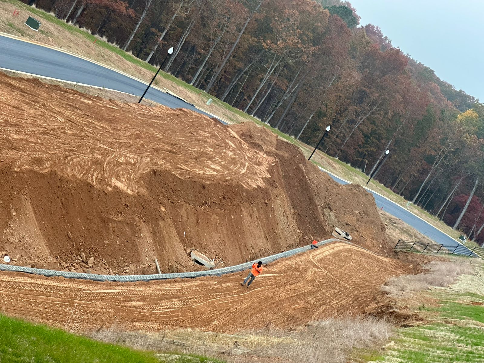 In addition to lift placement, the contractor also removed additional soil behind the retaining wall to reach the required grade line needed for the geogrid installation. As of today, the required line is properly established throughout the area, ensuring readiness for upcoming grid placement.