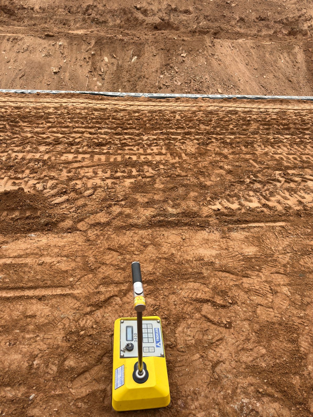 Upon completion of compaction, random nuclear gauge density tests were performed at several locations, including: