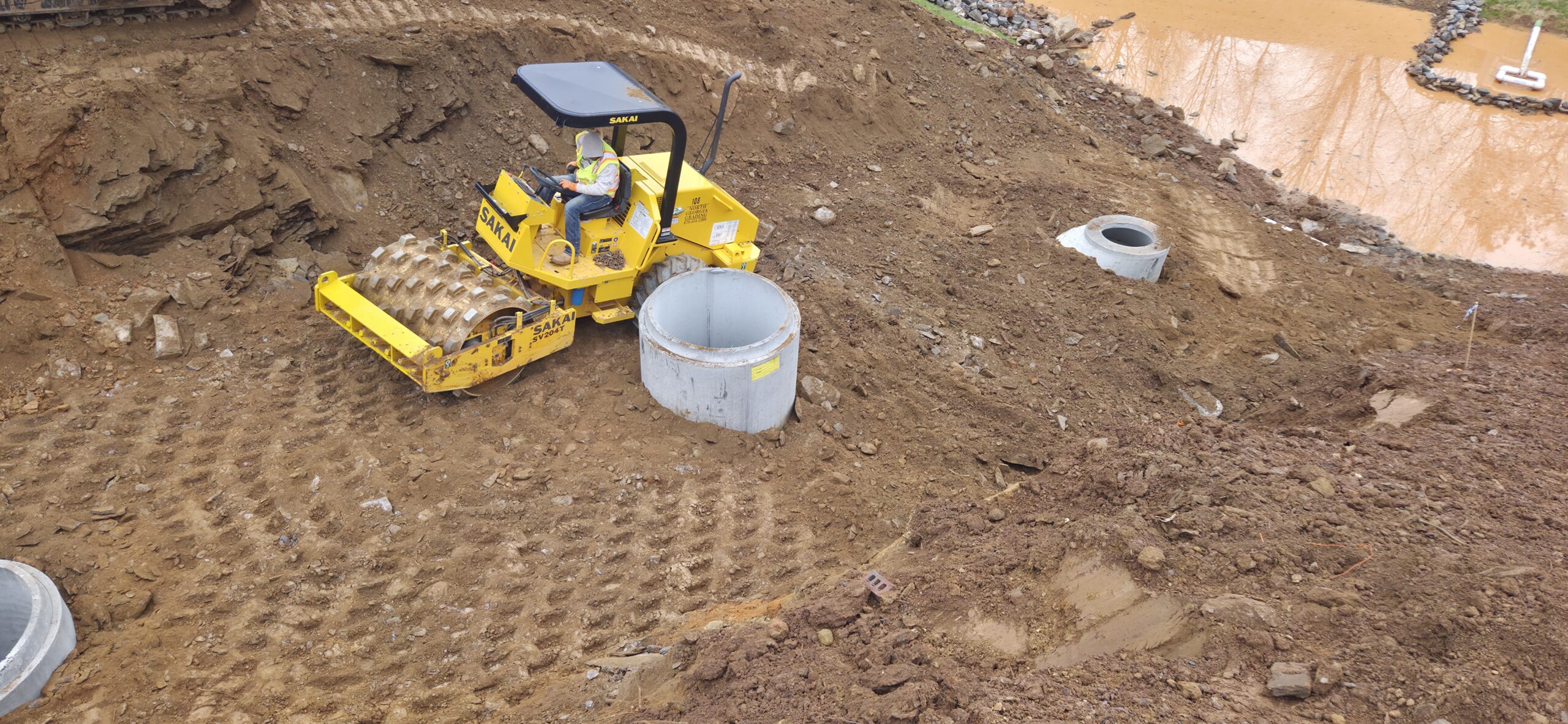 The pipe crew began installation of pipeline in the back detention pond area. This pipeline appears to be in greenspace located along the bank and running in-between the lots. The contractor appears to be putting in a good effort to properly compact this area.