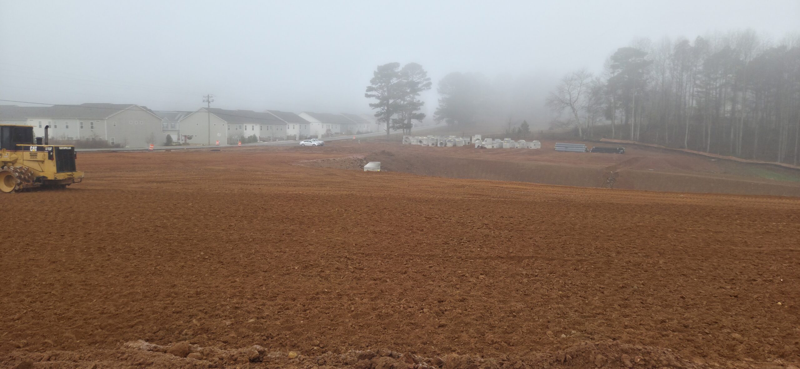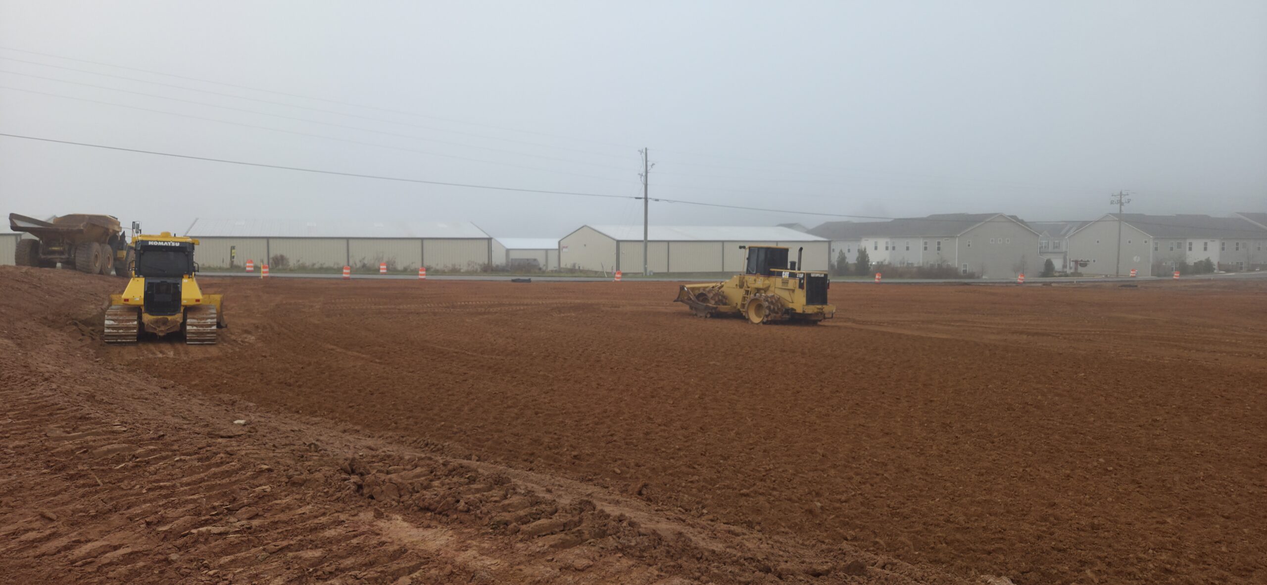 The contractor started moving topsoil for most of the day. Topsoil was taken from cut areas in the commercial lot area above the connex at the entrance and from lots #52 – #60. Topsoil was stockpiled by lots #1 – #5 to be spread on the slope of the front detention pond once it has been built up.