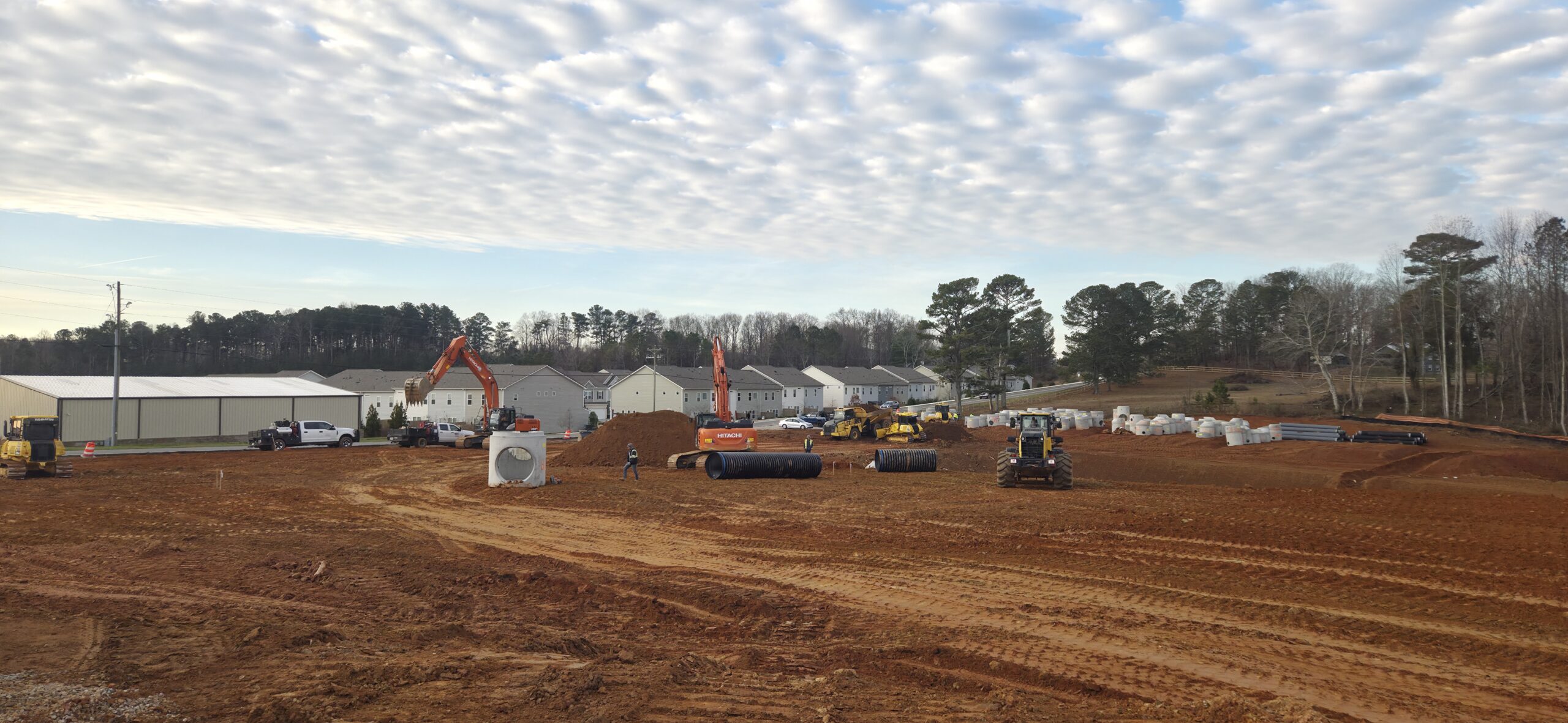 observation/testing of the placement of fill/backfill. The contractor continued placing lifts of approx. 1ft to 1.5ft in size across the commercial lots located by front detention pond. ASEC discussed the lift size with the contractor and expressed concerns of potential low compaction results due to lifts being installed too thick. The contractor requested to test the area first before they change lift size. ASEC agreed and conducted density testing. All test results were provided to the contractor.