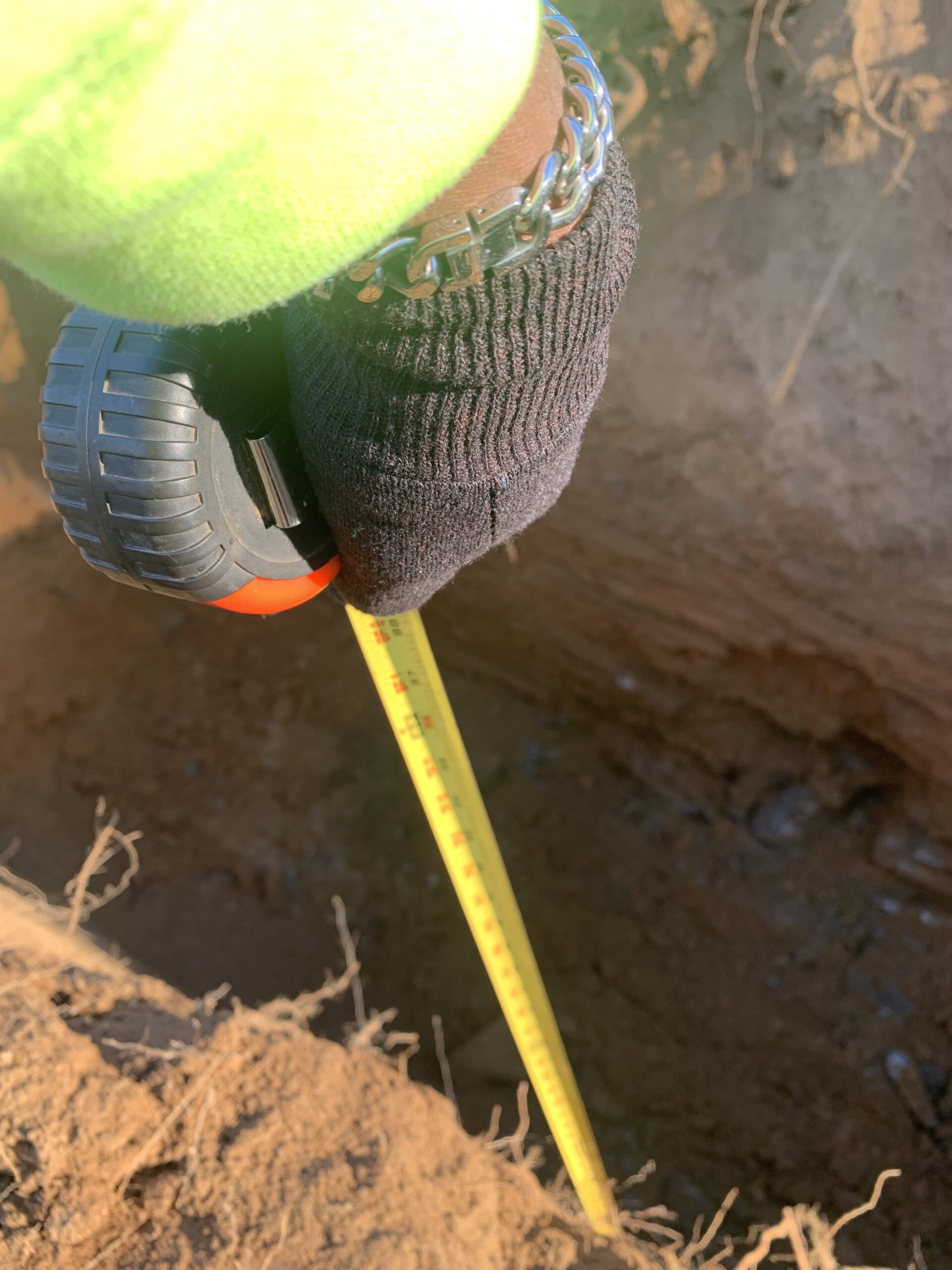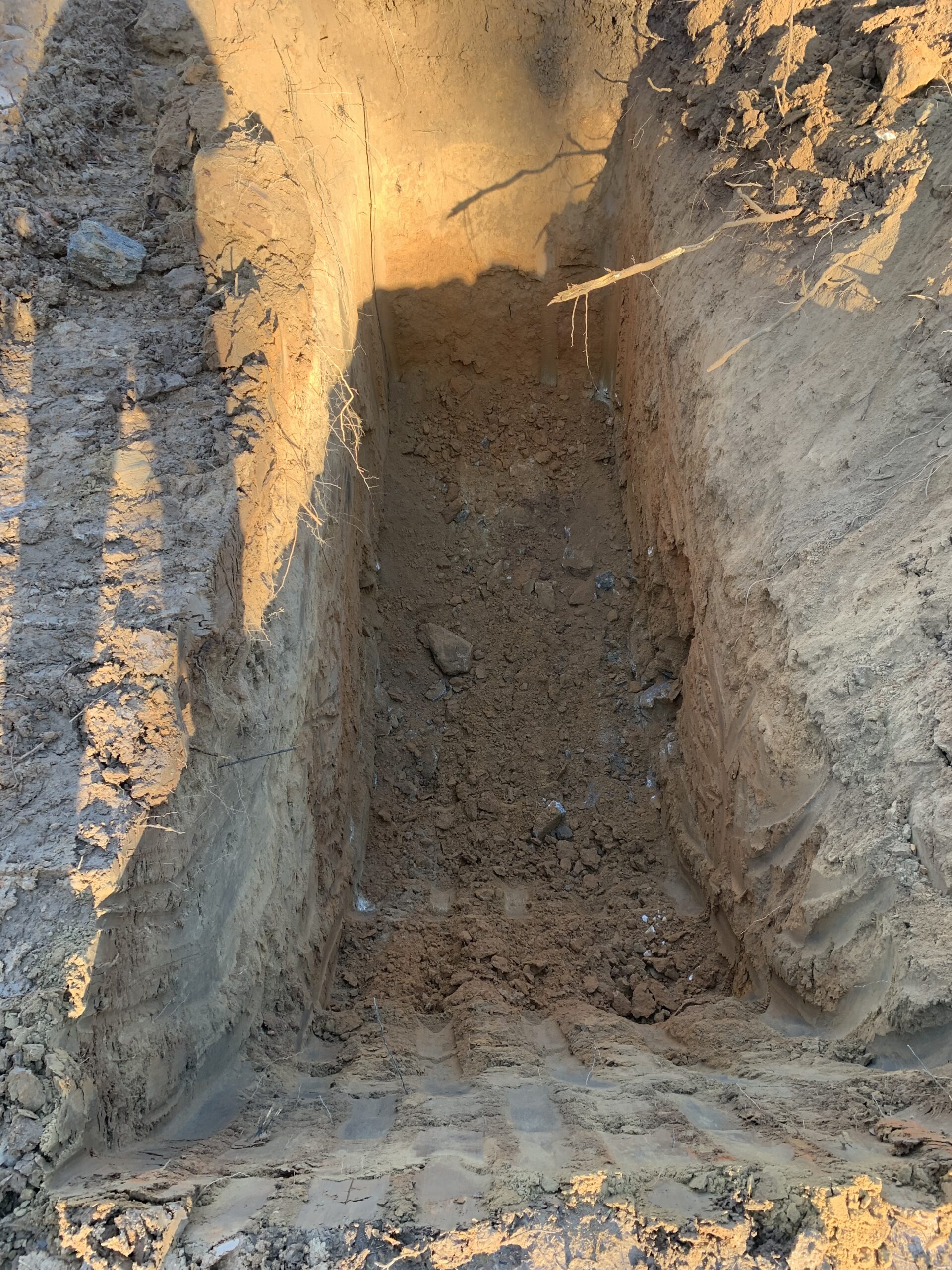 On the above date our representative observed the grading contractor Thompson Grading excavate three exploratory test pits north of the creek for bridge construction at embankment using an excavator/backhoe. The following results were observed: