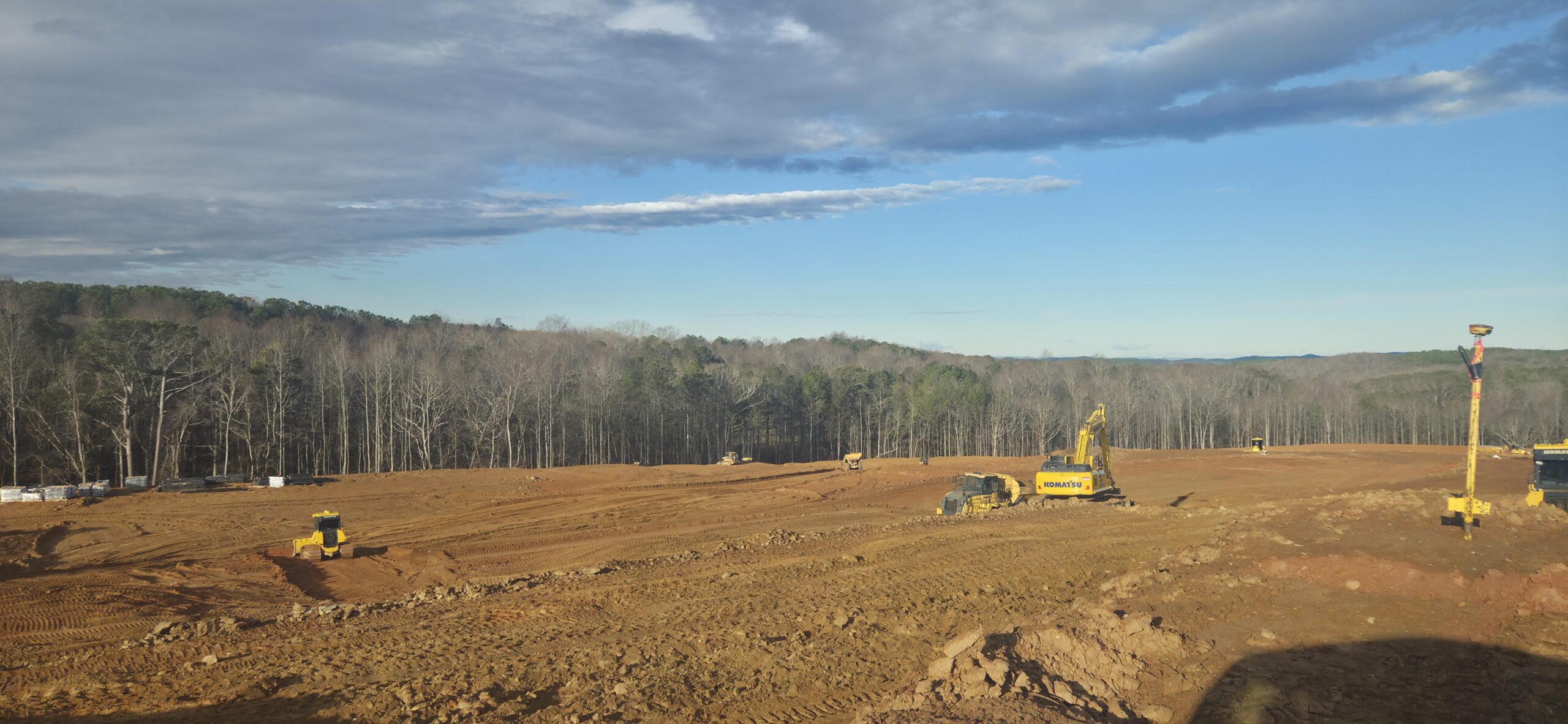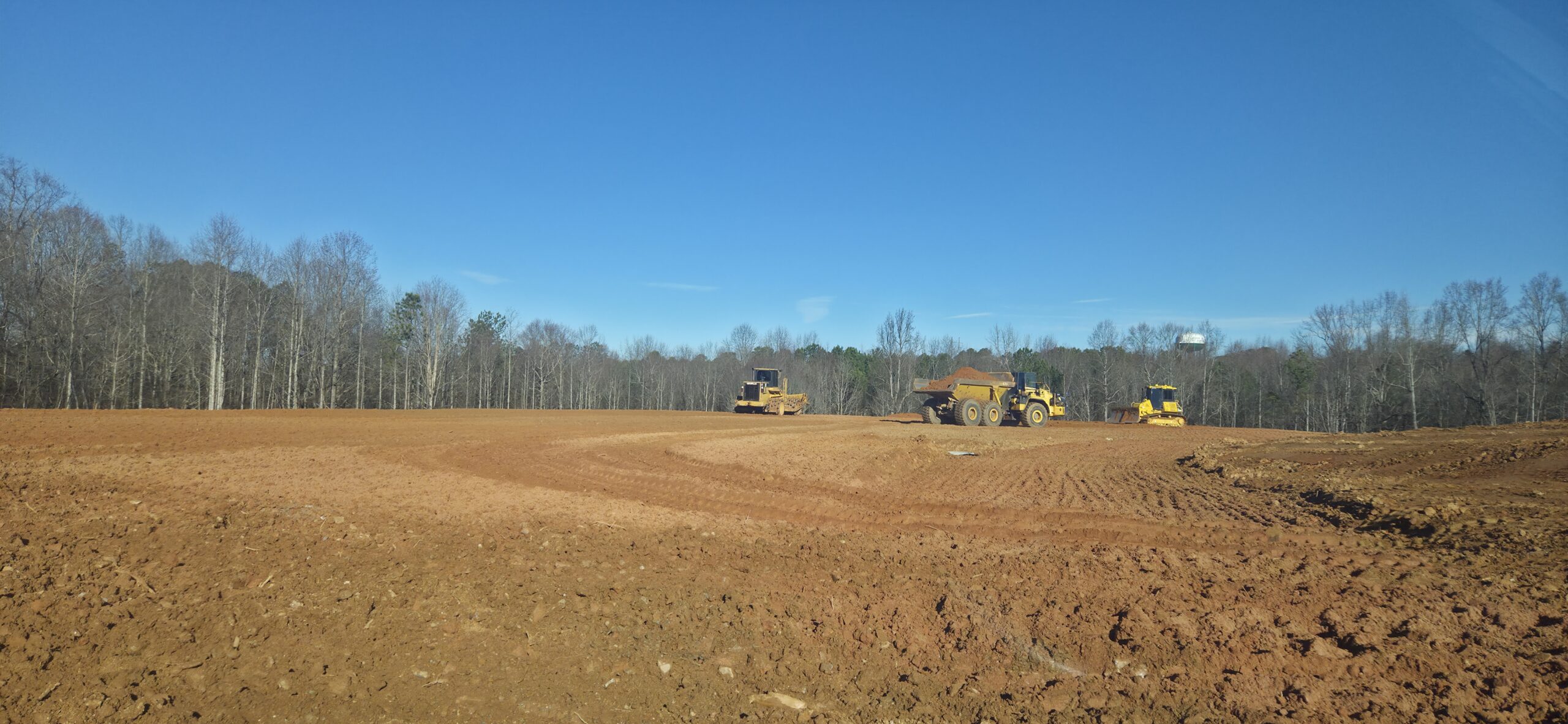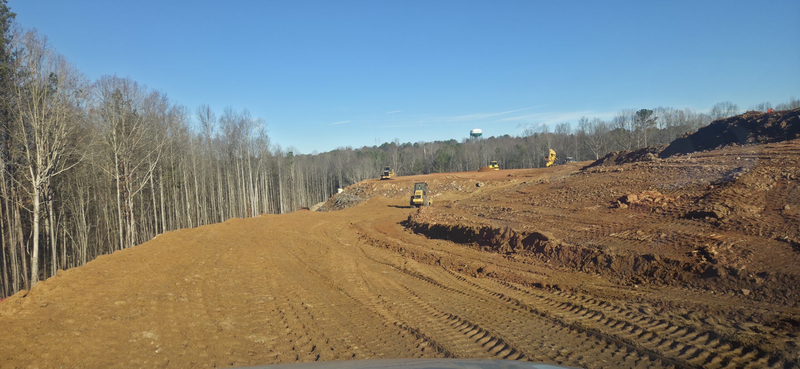 Pipe crew continued installing storm line along the greenspace located by the front entrance and deceleration lane.