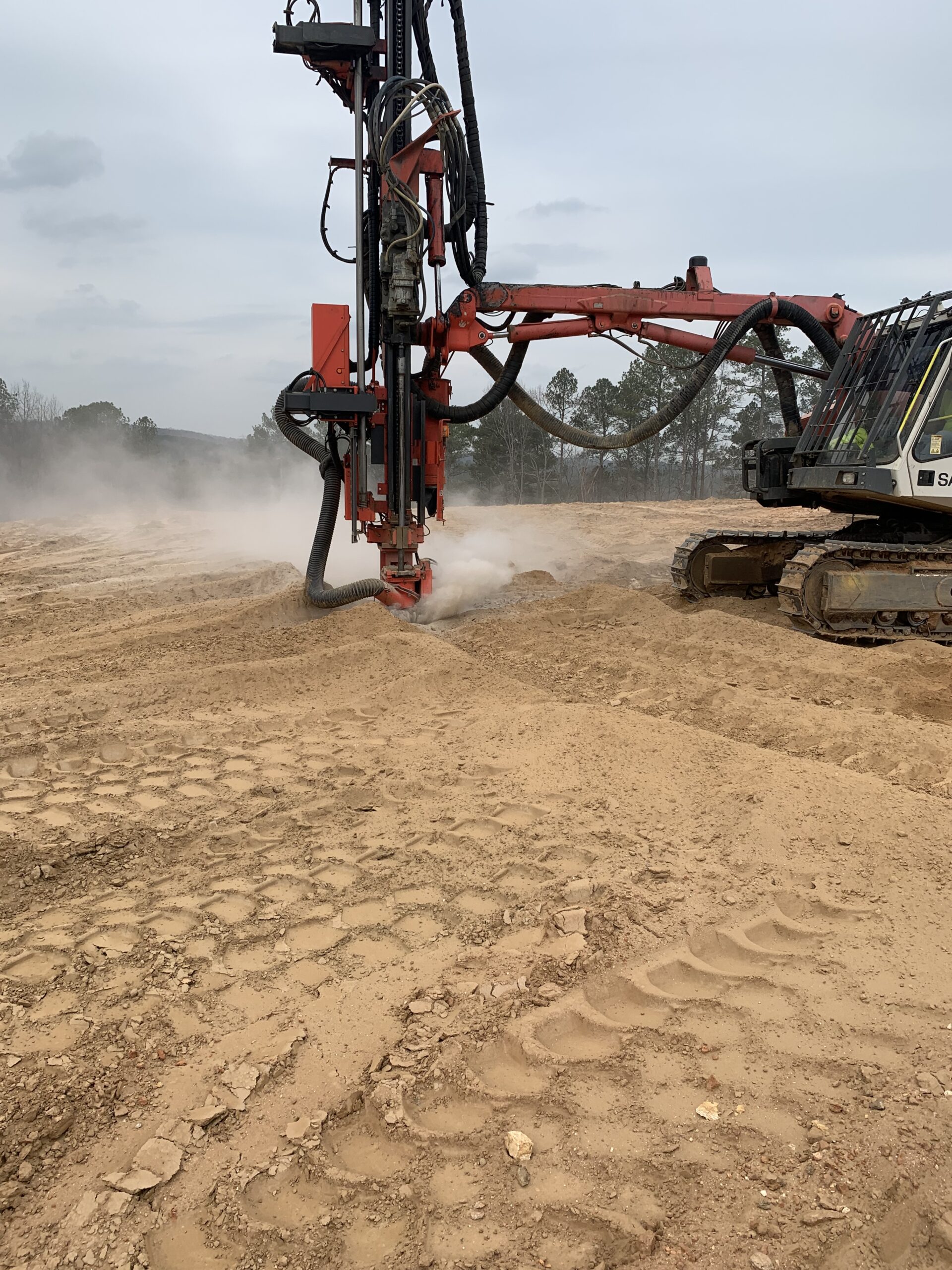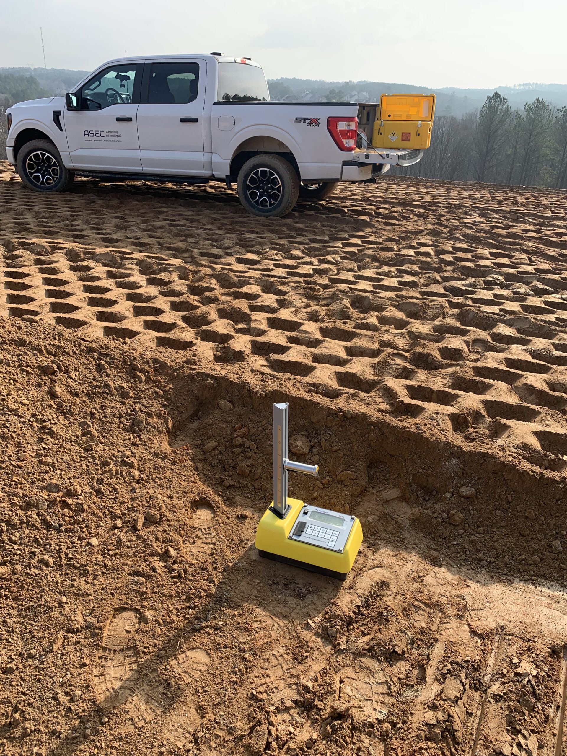 On the above date our representative was on site to observe the grading contractor continue placing fill for the Phase 2 extension building lots. The writer performed density tests at elevations 881,883 and 885 using a Troxler Nuclear gauge (model 3430, serial no. 91643). Compaction results were found to meet project specifications. The writer also observed the grading contractor continue placing stripped topsoil for the slope embankment near the horse park. Also observed the blasting contractor (Advance Drilling) onsite today performing test drills at several locations at Unit 4-Phase 2 verifying rock depths.