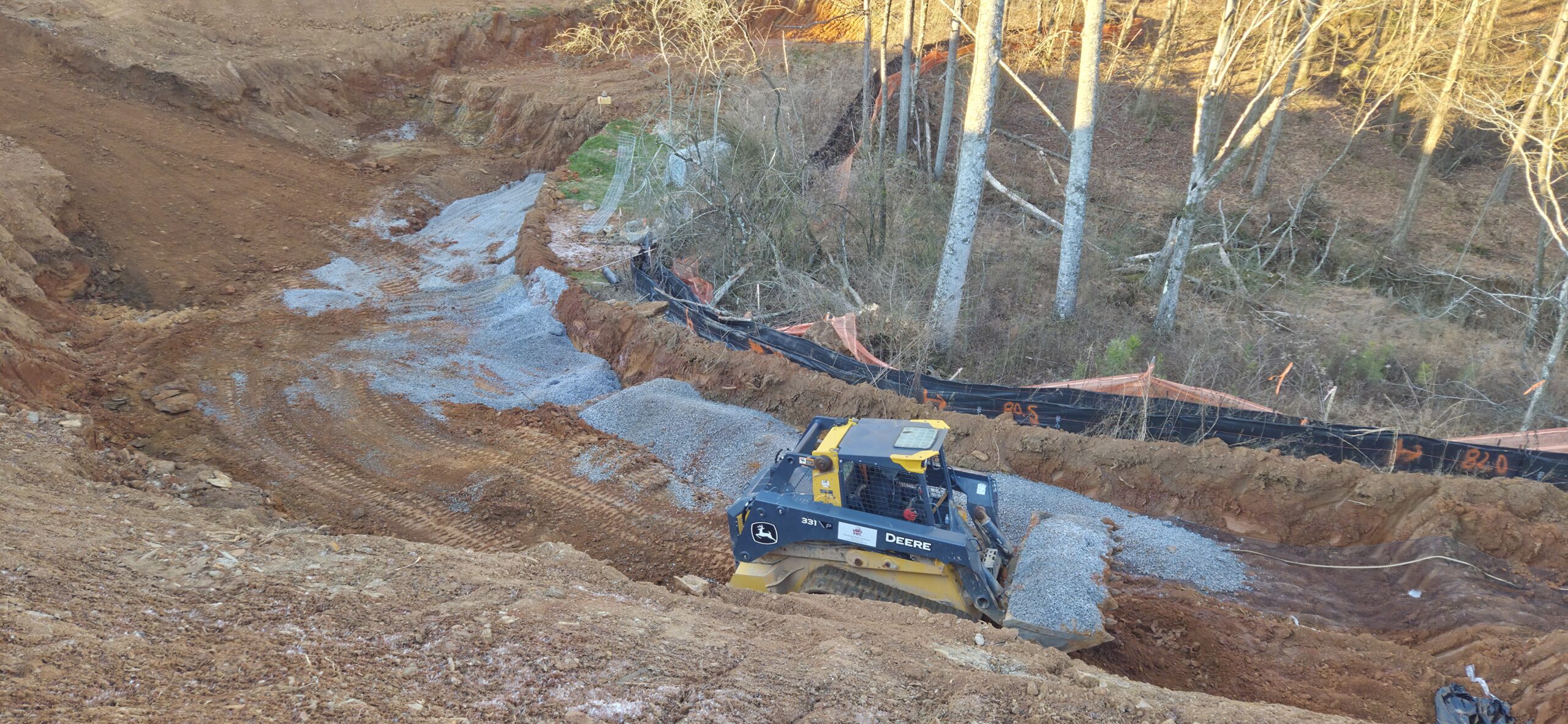 The grading crews continued placement of topsoil along slopes and greenspace areas. The soil lifts were approximately 12 inches in thickness and compacted using a sheep-foot roller.