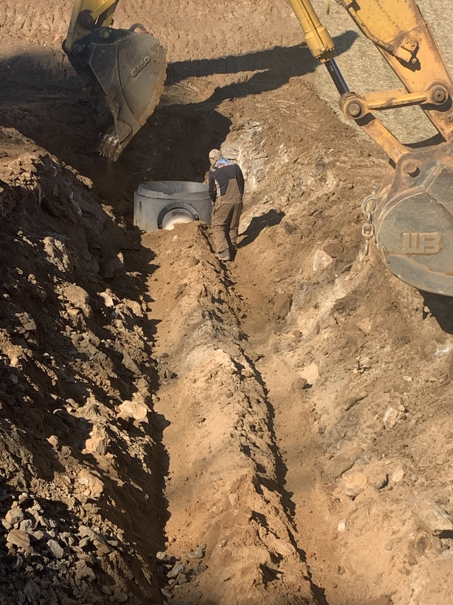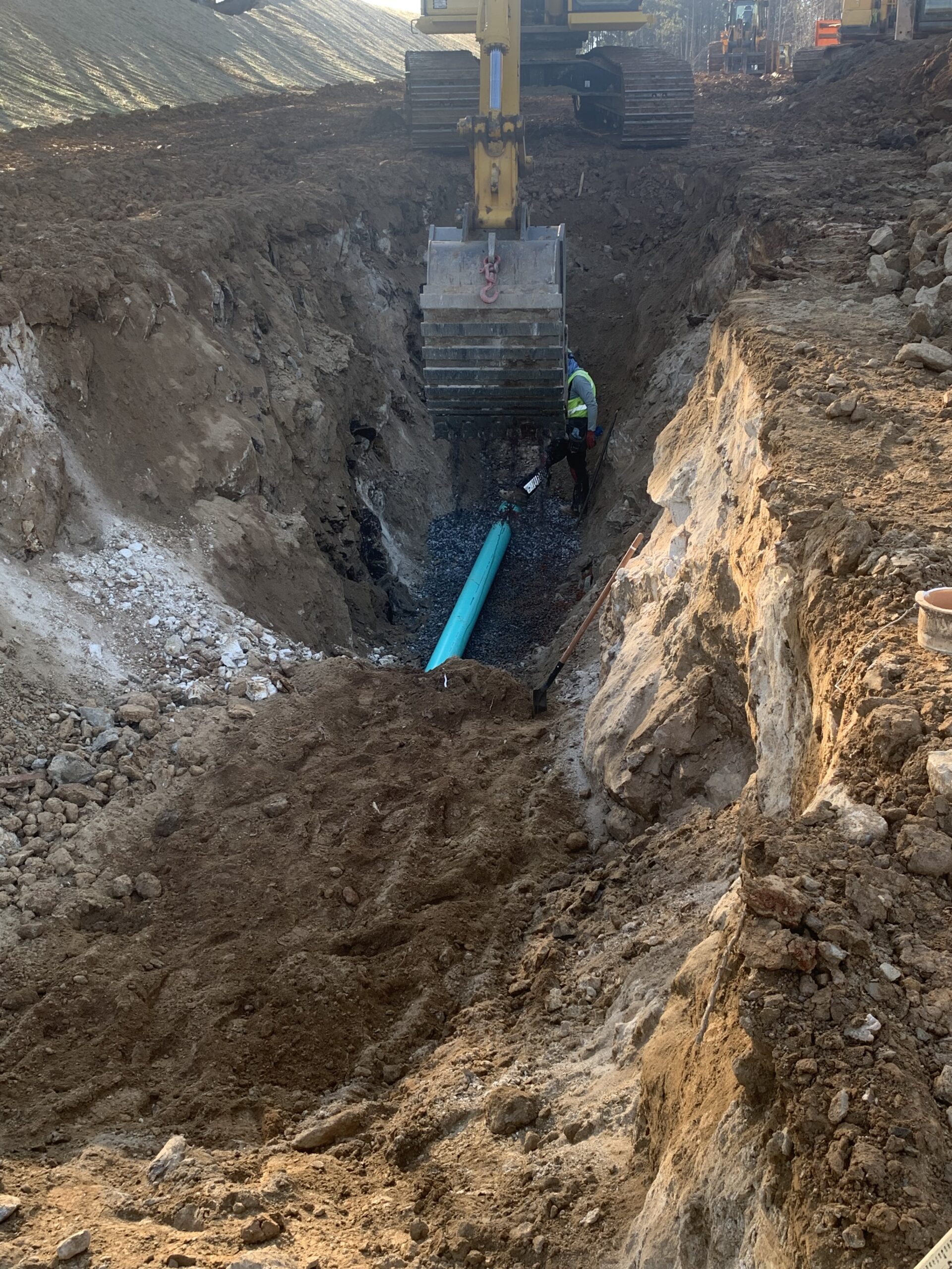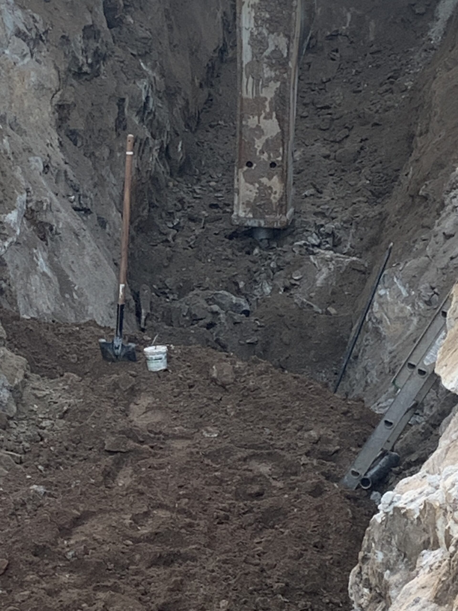 Note: The pipe contractor hammered rock to install thirty-two feet of 8″ PVC sanitary sewer pipe (1.25 hours of hammering rock today).