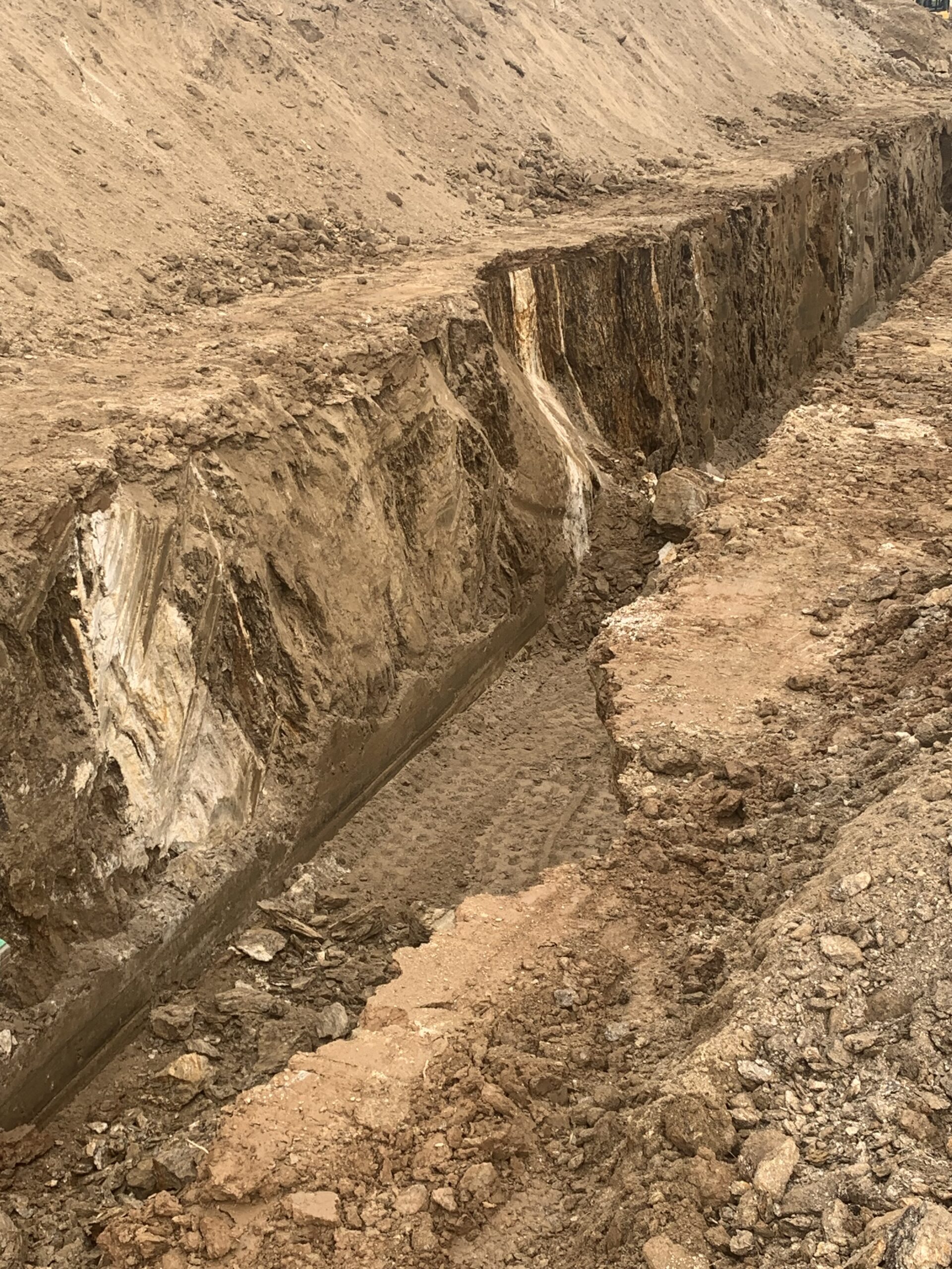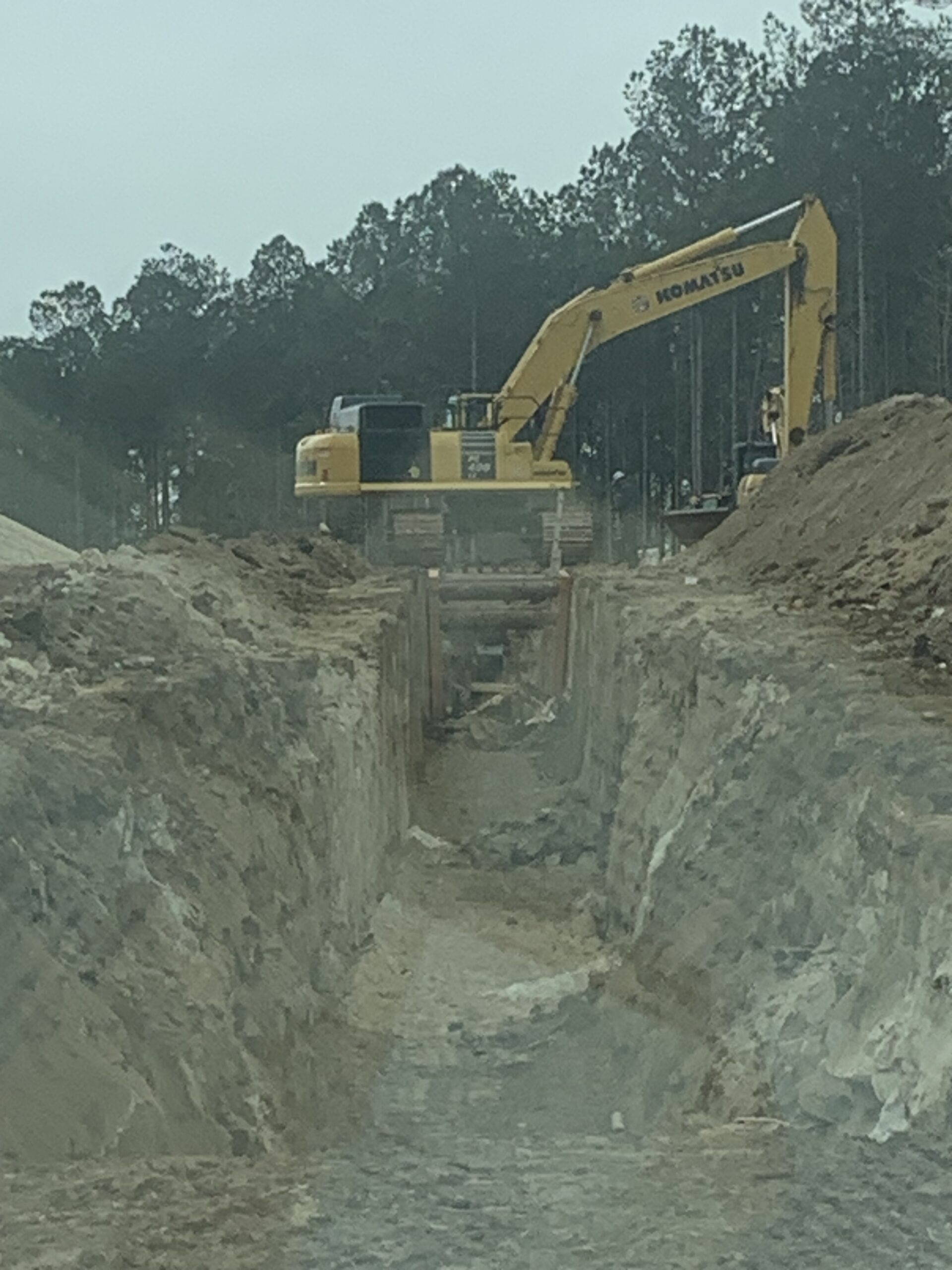 The pipe contractor continued installing 8″ PVC sanitary sewer line to manhole structure #13 and also continued from structure #13 installing 8″ DIP sanitary sewer line. The contractor installed 162′ of 8″ PVC sewer pipe between structures # 13 and #12. Also installed 40′ of 8″ DIP between structures # 13 and #14. The contractor was able to dig weathered rock on today without using hammer.