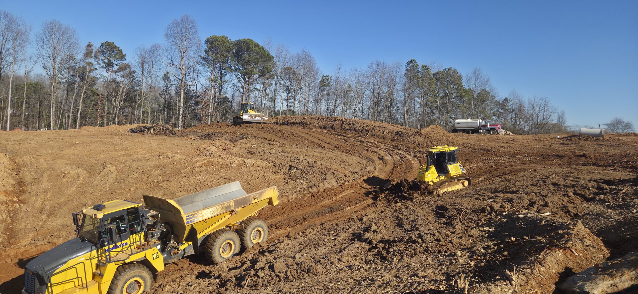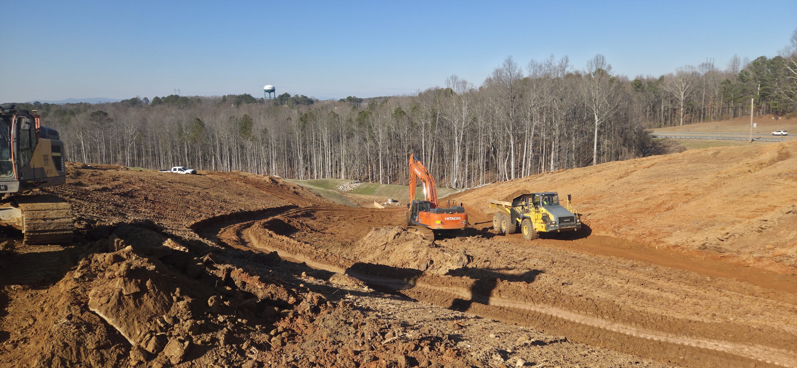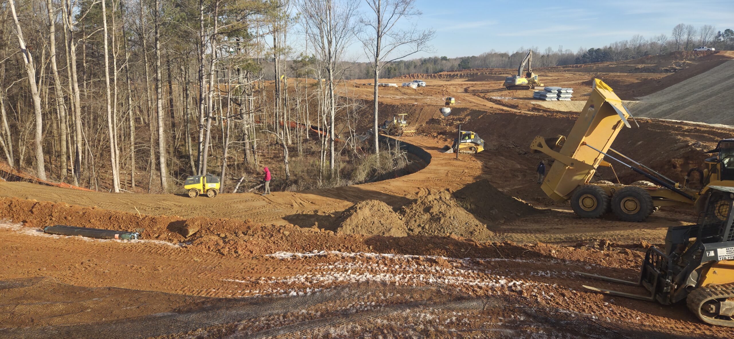 Our ASEC representative was on site to observe the contractor (NG Grading) and for the observation/testing of the placement of fill/backfill. The grading crew continued placement of fill along the slope near retaining wall #3 to retaining wall #4. The contractor is placing fill in approximate 1 foot lifts and compacting using a vibrating sheep-foot roller. The contractor removed topsoil from the approximate location of Lots #44, #96, and #97. Topsoil was stockpiled to be used in greenspace areas on a later date. A proof-roll was performed in this area with a loaded off-road dump truck. There did not appear to be any severe pumping present. This is a deep fill area, consisting of approximately 25 to 30 feet of fill in the lowest point. The contractor placed large boulders (that were removed from structural fill and stockpiled) in the lowest point and spread a thickened lift of finer soils to help fill voids. The contractor spread the lift with a dozer and then began placing structural fill.
