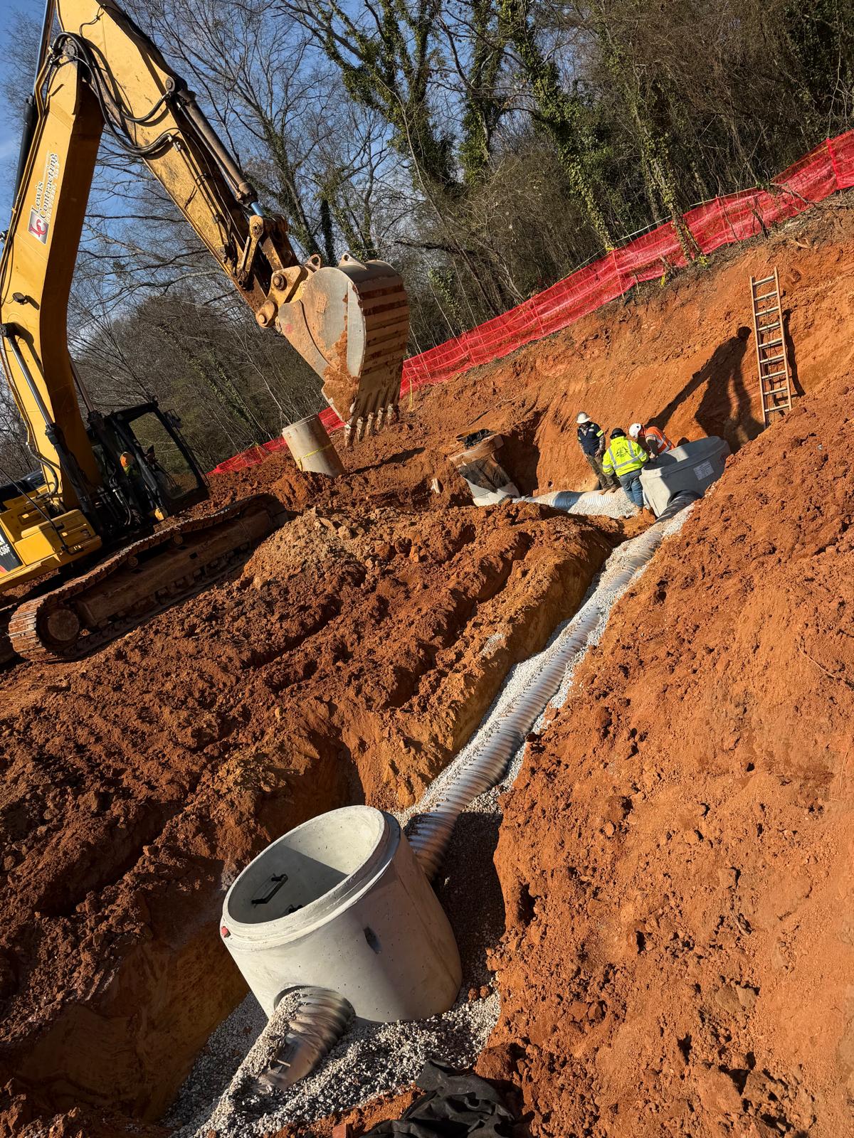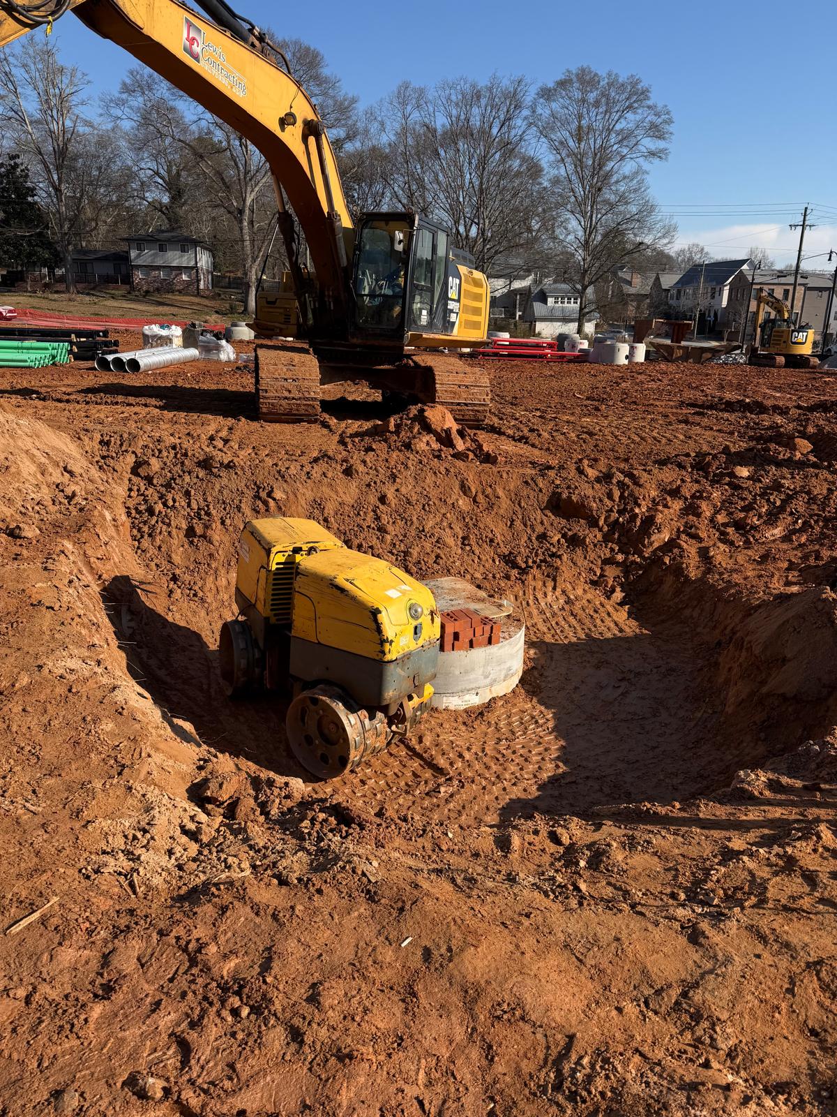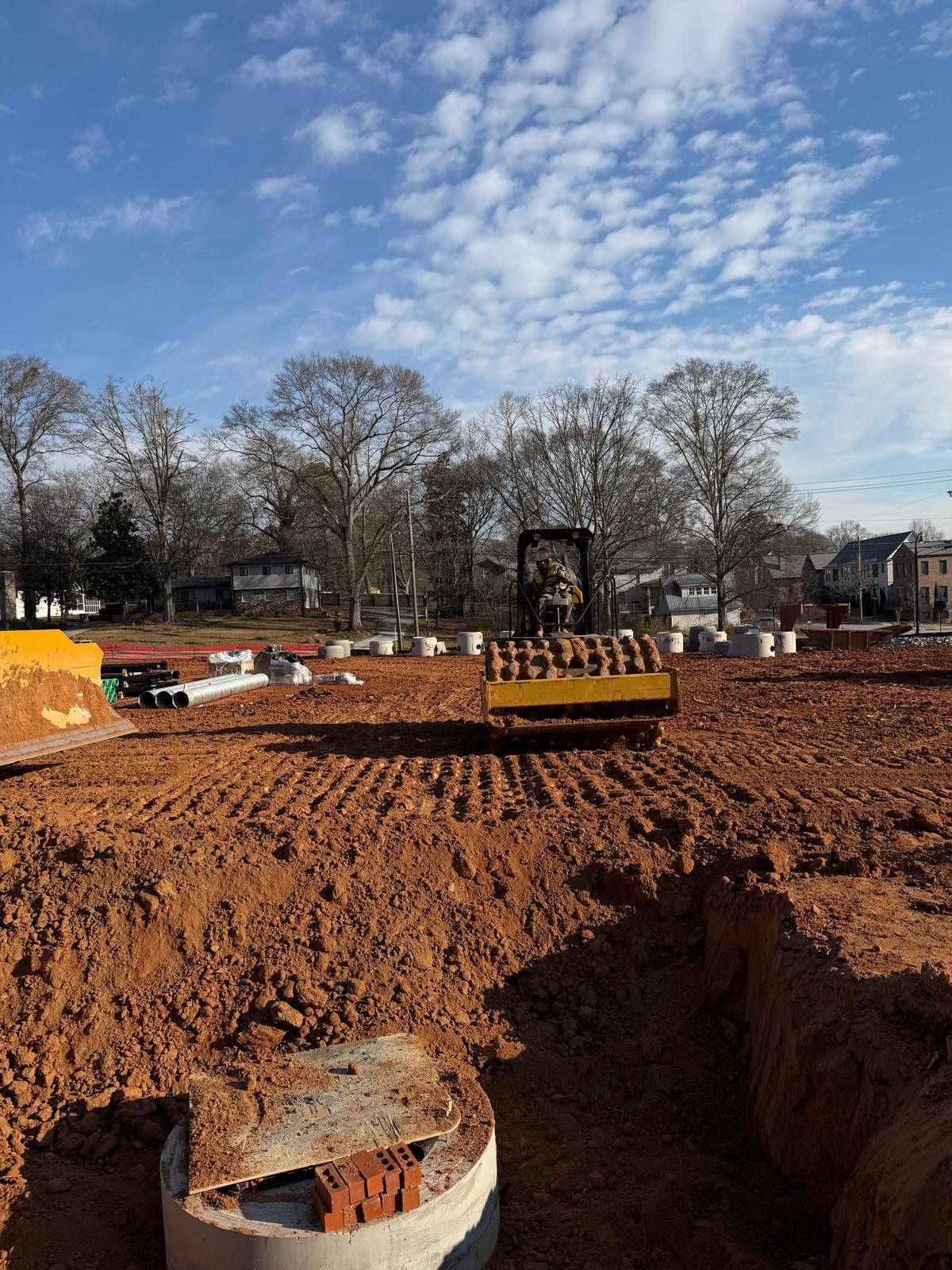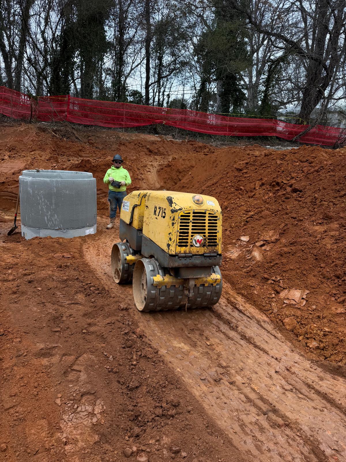 Crew 1 began backfilling operations at locations B9–B11. The first two lifts were placed in thicknesses of approximately 6–8 inches and compacted using a jumping-jack compactor. The next two lifts were compacted with a double-drum roller, followed by an additional lift compacted using a sheep’s foot roller.