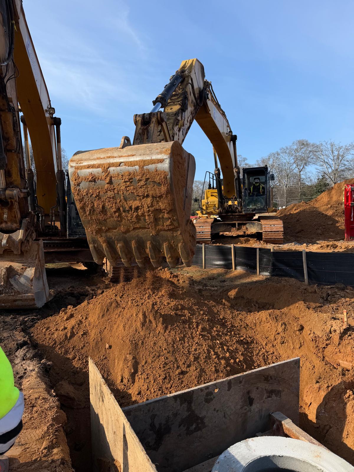 Backfilling dirt around manhole