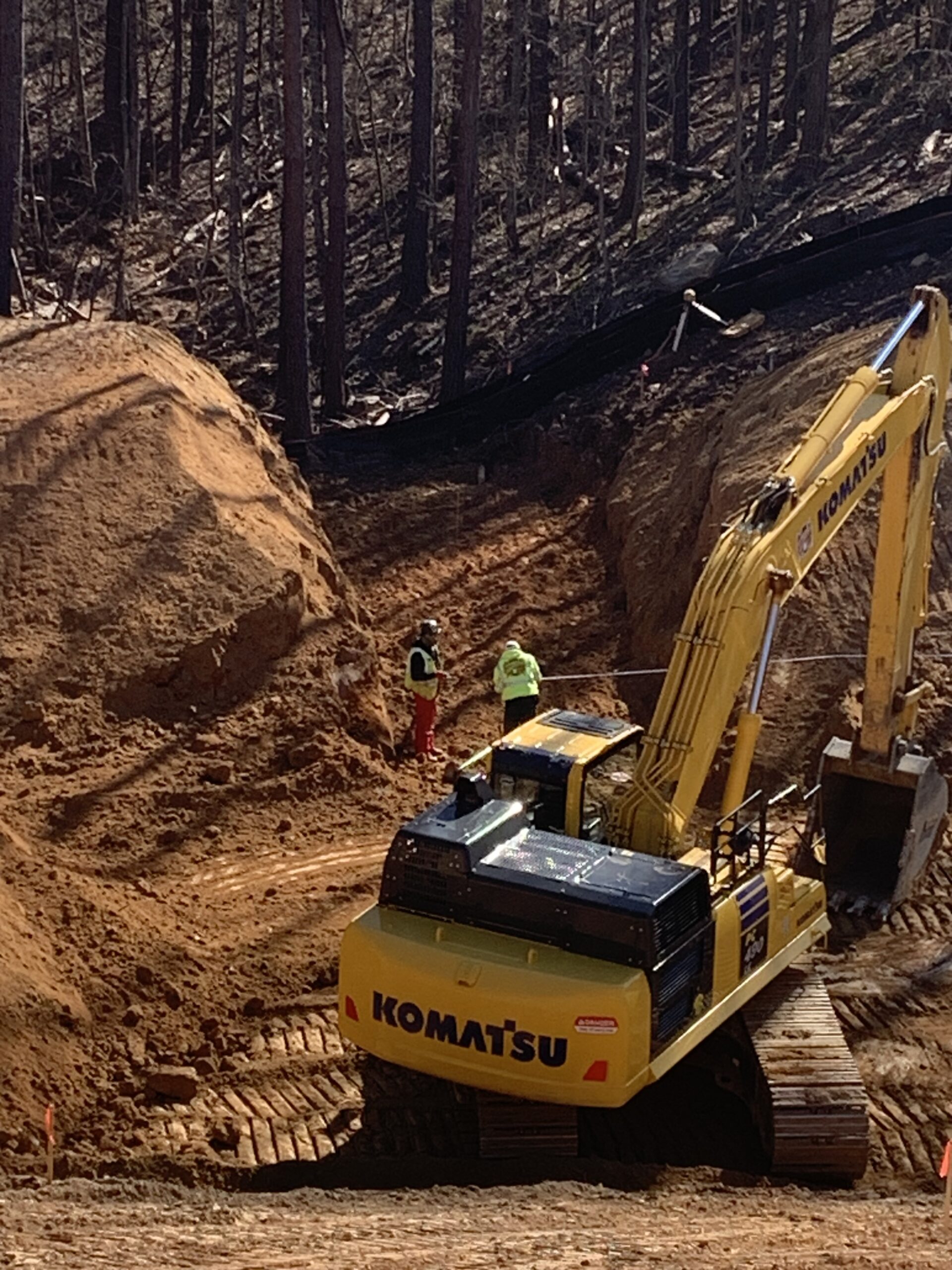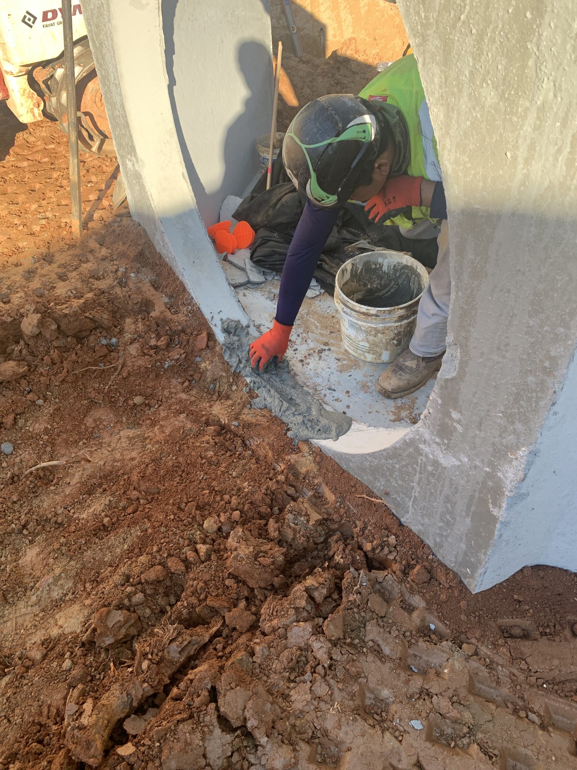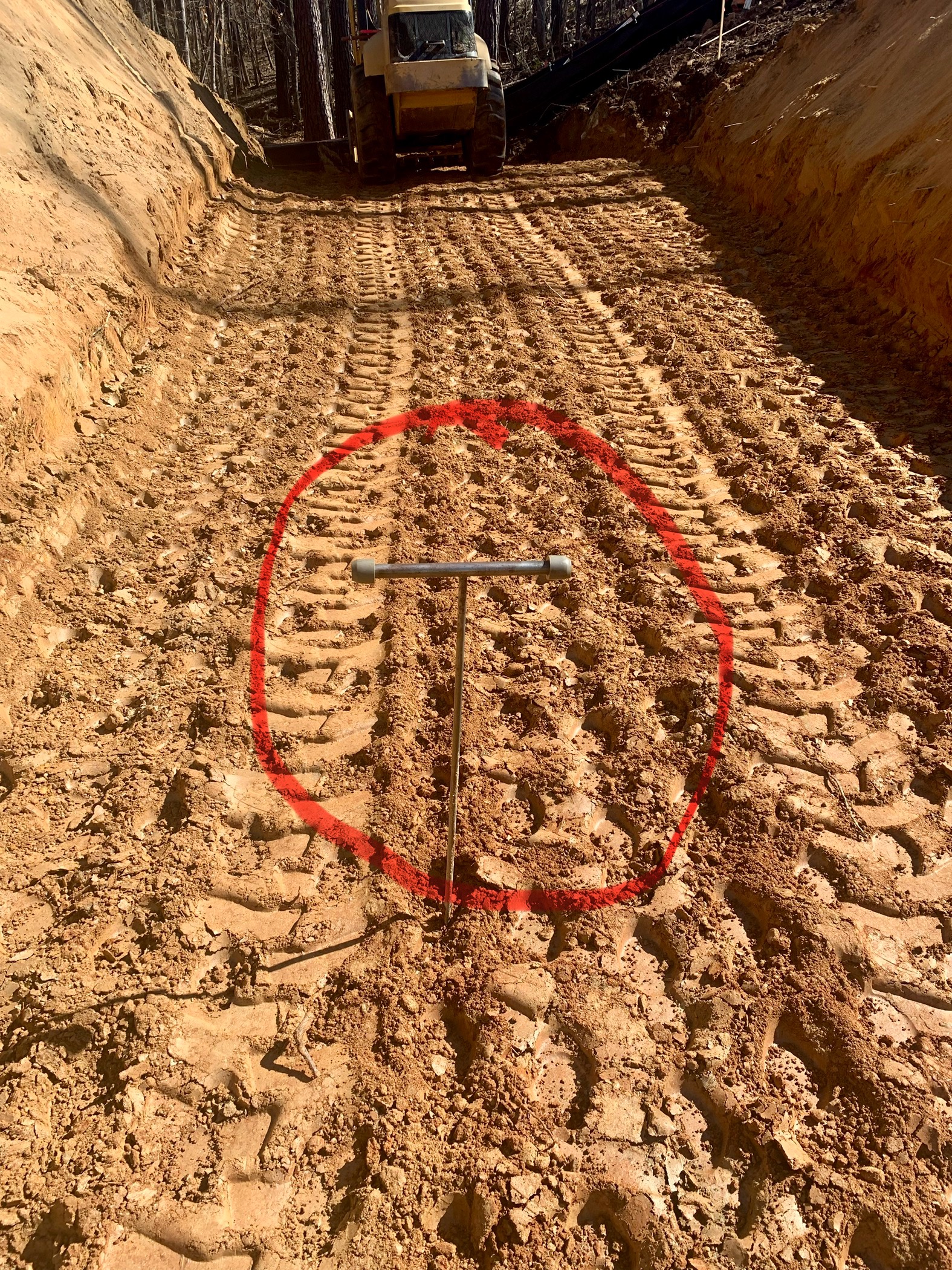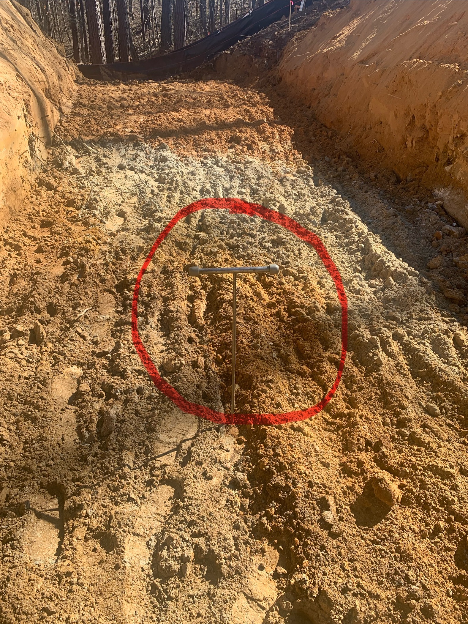 On the above date our representative was on site to observe the pipe contractor (Savanna) begin excavating to install a 48″ RCP outlet pipe between the OCS structure and headwall #3. As recommended, the contractor undercut existing sandy silt soils to replace with clay-based soils. The undercut was extended -2′ beneath bottom of design elevation for the pipe into residual materials. The undercut soils were replaced with suitable compacted clay base soils. The contractor set headwall structure #3 placed on filter fabric and begin laying a 48″ RCP outlet line from the headwall toward the OCS structure in which the pipe was bedded on suitable compacted clay base soils.