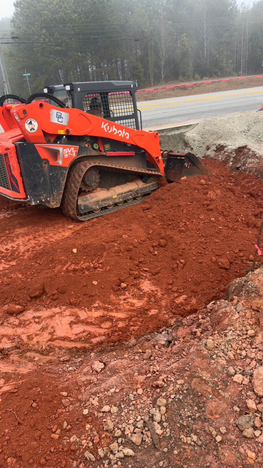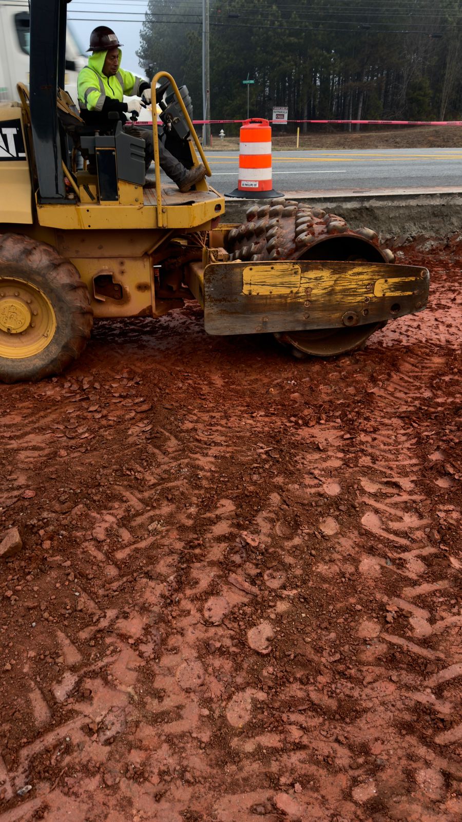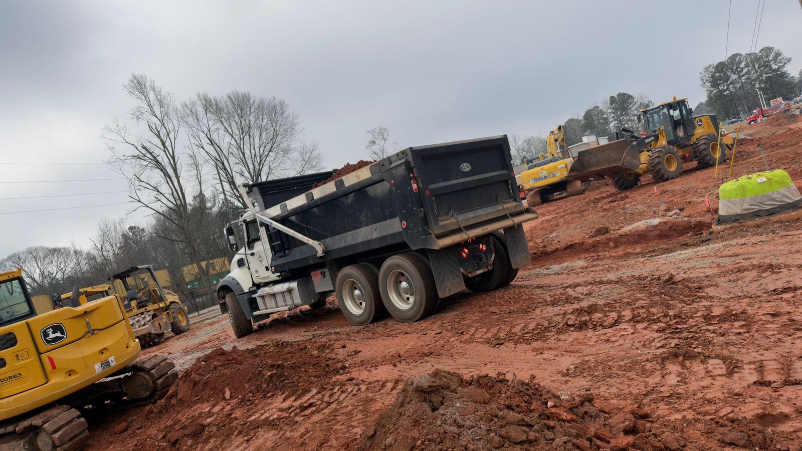 Upon completion of compaction, proof-rolling was performed using a loaded dump truck. The truck was driven slowly across the compacted surface to identify any yielding, pumping, rutting, or deflection. Subgrade soils displayed no significant displacement, deflection, or soft area during the proof-roll operation. The decel lane subgrade is suitable for base course placement.