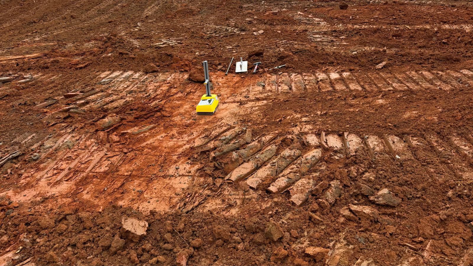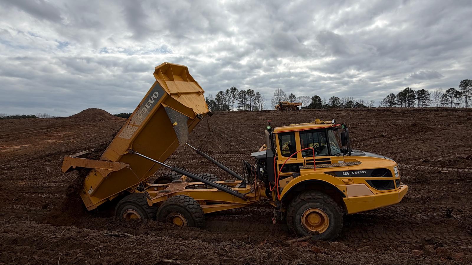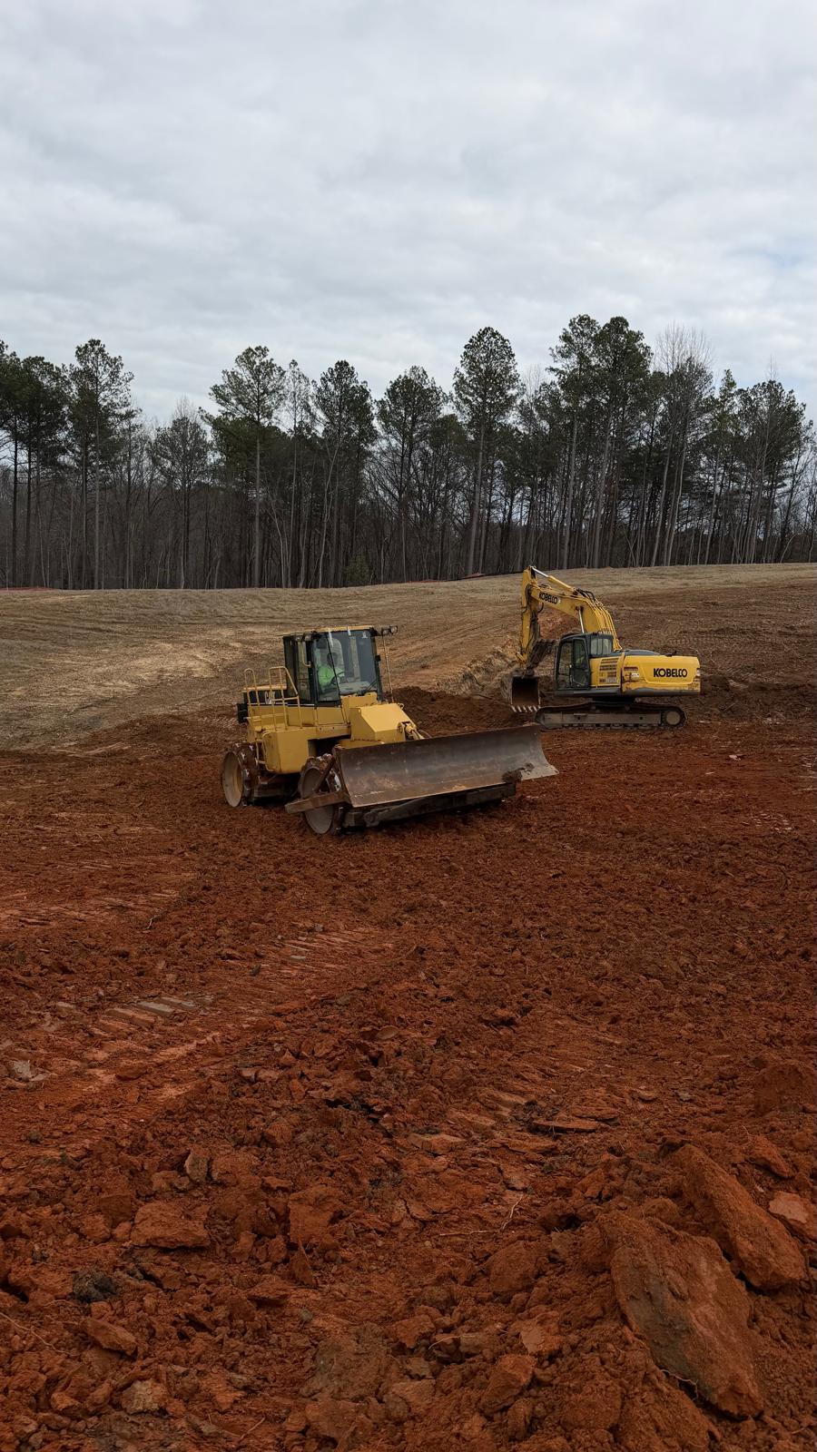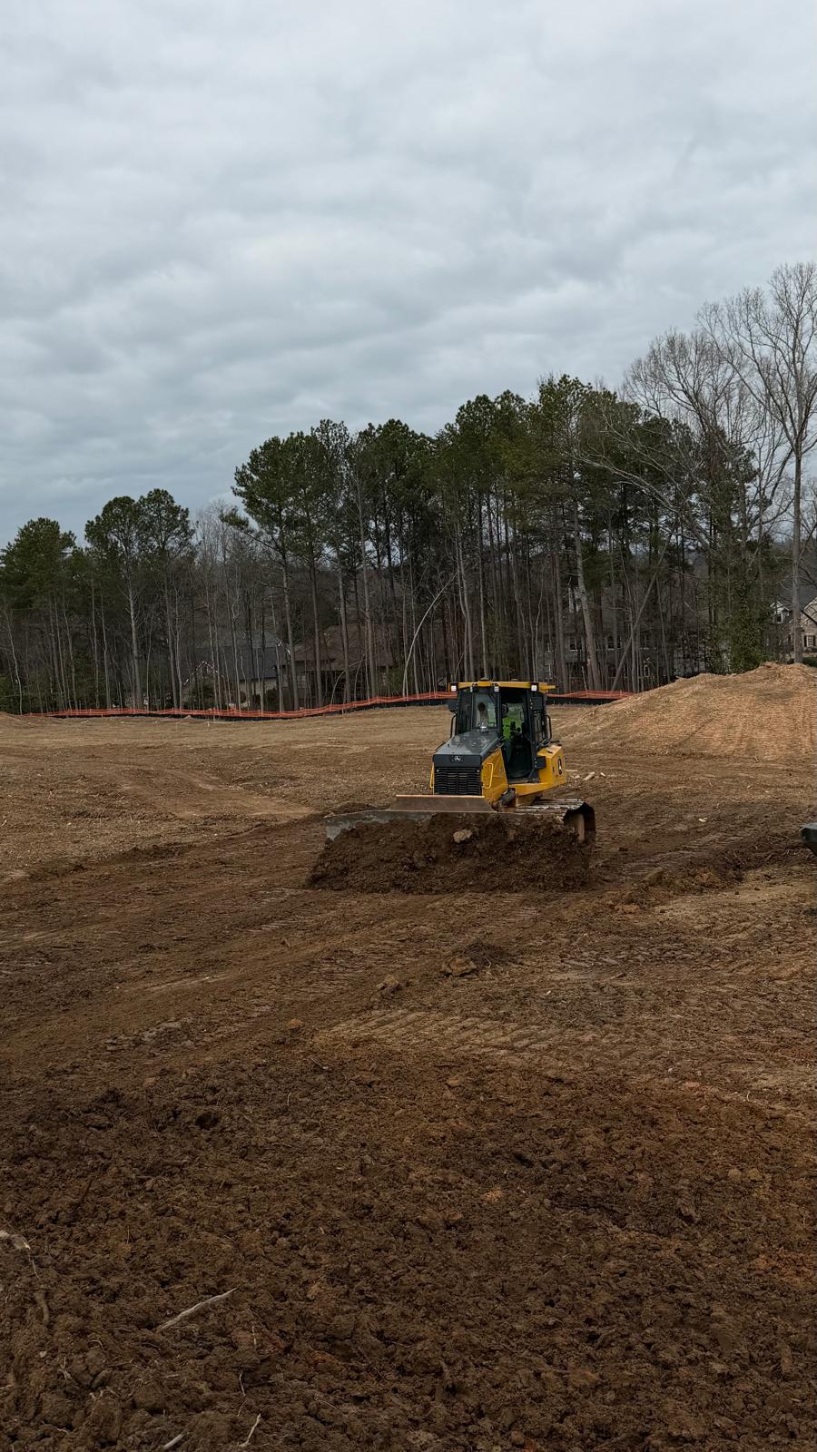 On the other side, at Lots #39, 40, and 41, existing topsoil was removed and stripped using a crawler bulldozer. After grading operations, the exposed surface was rolled using a sheep-foot roller to prepare the area for fill placement.