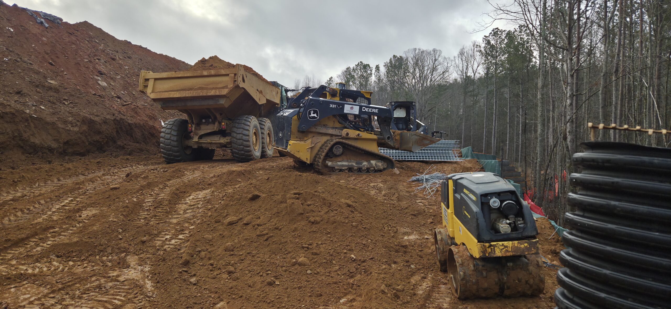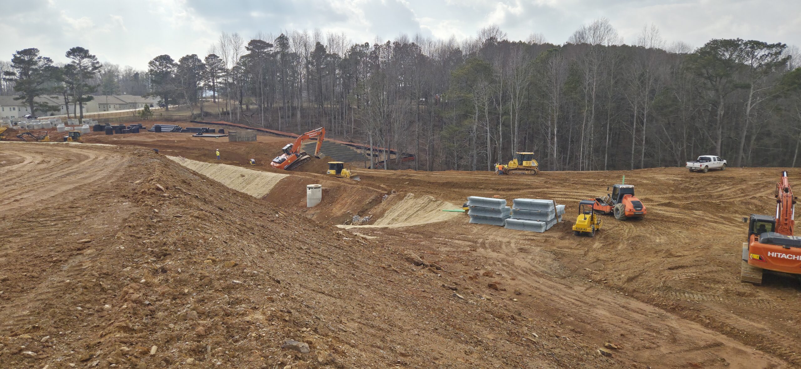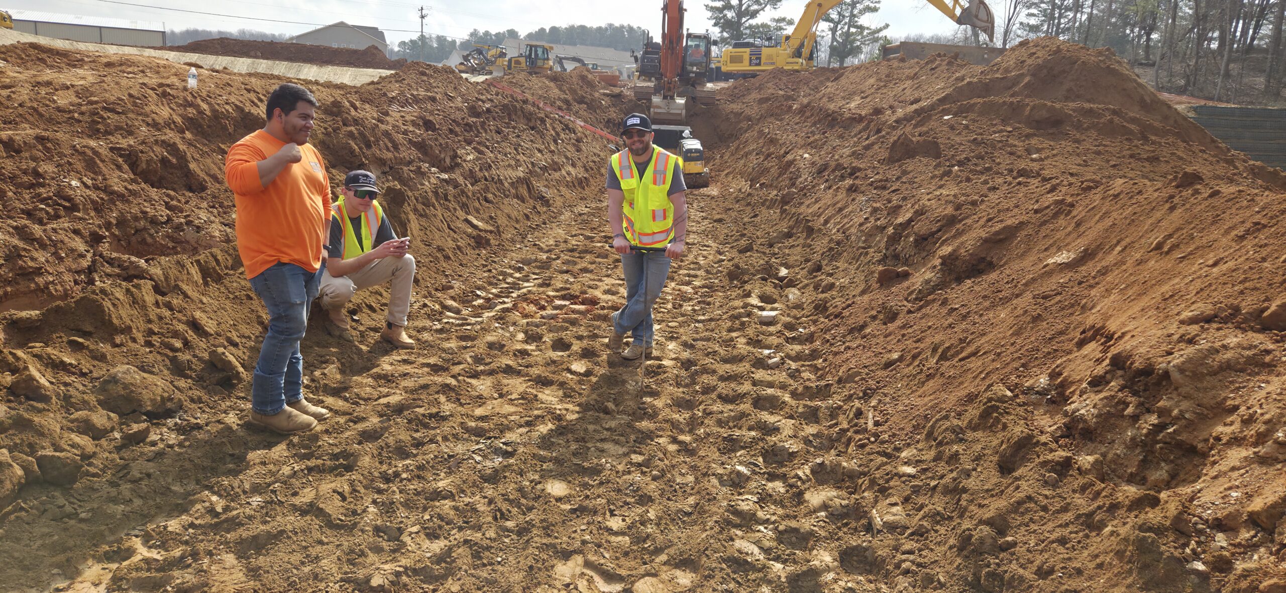 At this time, the grading crew and wall crew have shut down for the day. The pipe crew had begun a new excavation of SSMH 4.0 to SSMH 5.0, even though we have forecasted rainfall later in the day and the next day as well as clear signs that the soil on site was far too wet to backfill with. ASEC began density testing approximately 2 to 3 feet over the pipeline. All tests failed, and ASEC called the pipe crew foreman to discuss site conditions and failing tests. The contractor made it clear that they have no intention on stopping the installation of the pipeline because now they have an exposed trench that will fill with water.