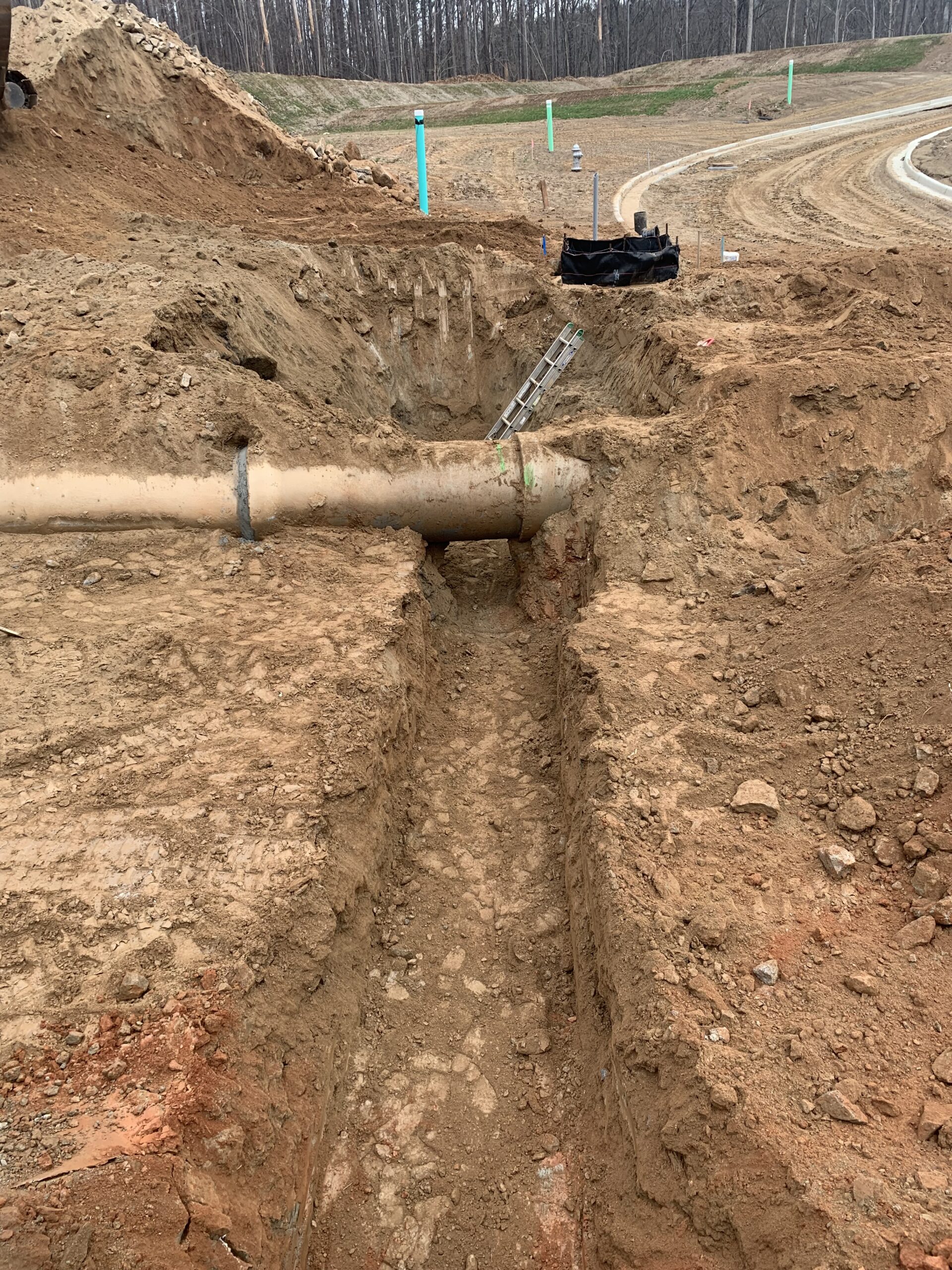 The water line contractor also continued installing 12″ ductile iron water line at Nature Walk Boulevard between manholes #4 and 6. The writer also observed placed concrete at the water vale box installed for the kicker. The backfill was probed using a rounded end steel rod and appeared compacted as per job standards.