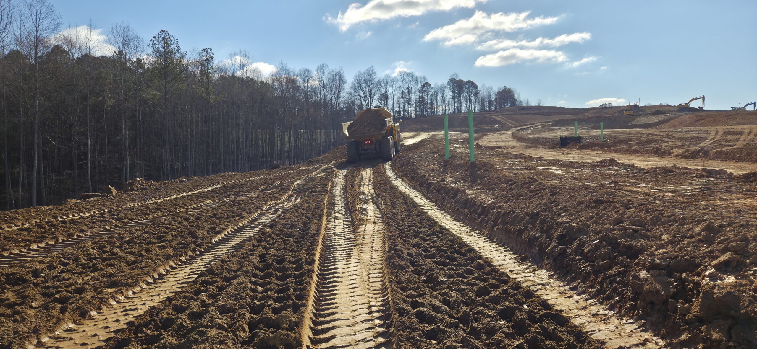 The grading crew began placing soil lifts of approximately 8 to 12 inches in size on Lots #30 through #32. The lifts were compacted with an 815 sheep-foot roller. The soil visually appeared to have a high moisture content. When ASEC watched a loaded off-road truck roll across the lift, there were signs of severe pumping/deflection present along the slope. The contractor excavated this area to stable ground. The contractor then cut wind rows into the remainder of the lift to allow time for the soil to dry.