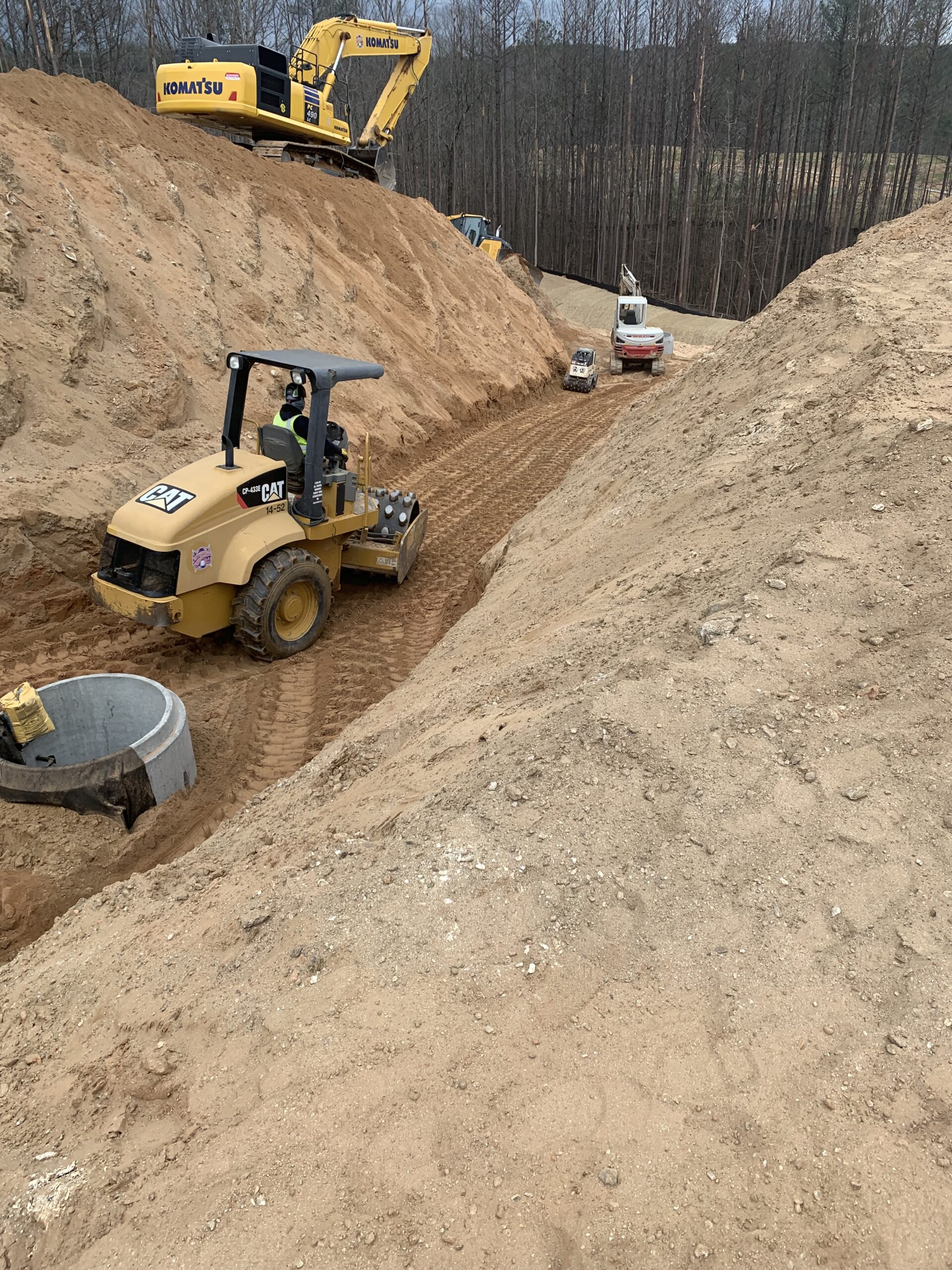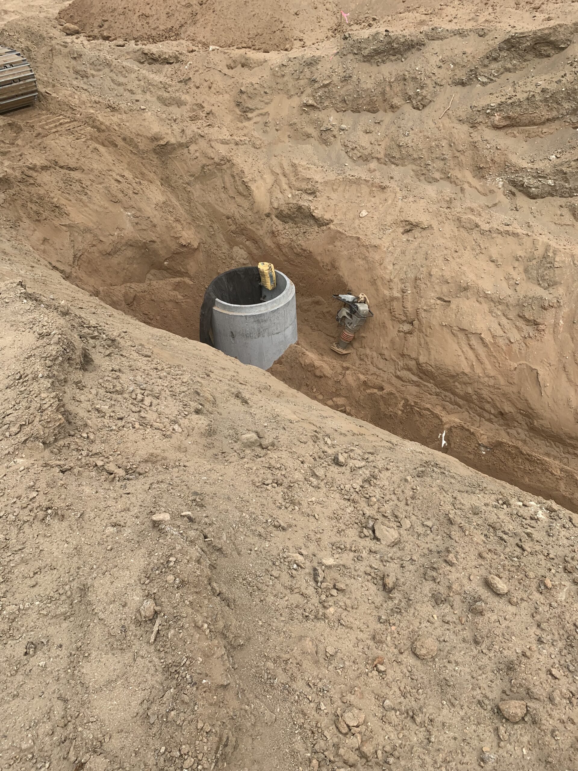 On the above date our representative was on site to observe the pipe contractor continue installing 30″ CMP storm line between manholes #B2 and B4. Backfilling for the deep excavations was observed, and compacting efforts appeared to be suitable for job requirements.