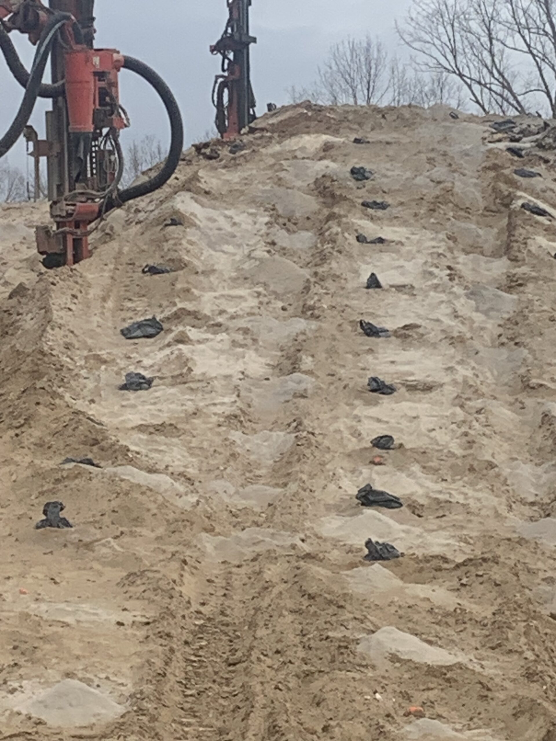 The drilling contractor (Advance) continued drilling hard rock at building Lots #47 and 48 using two drill rigs.