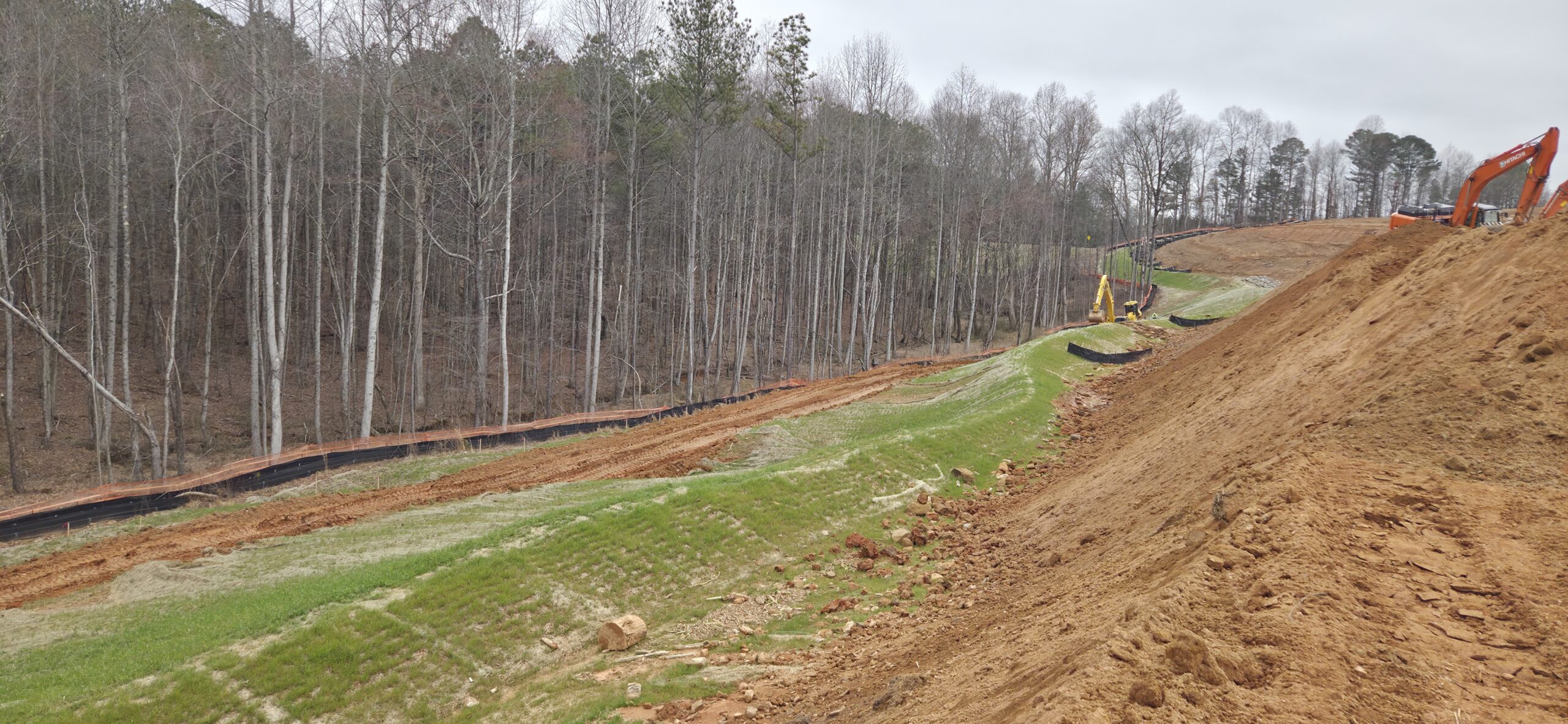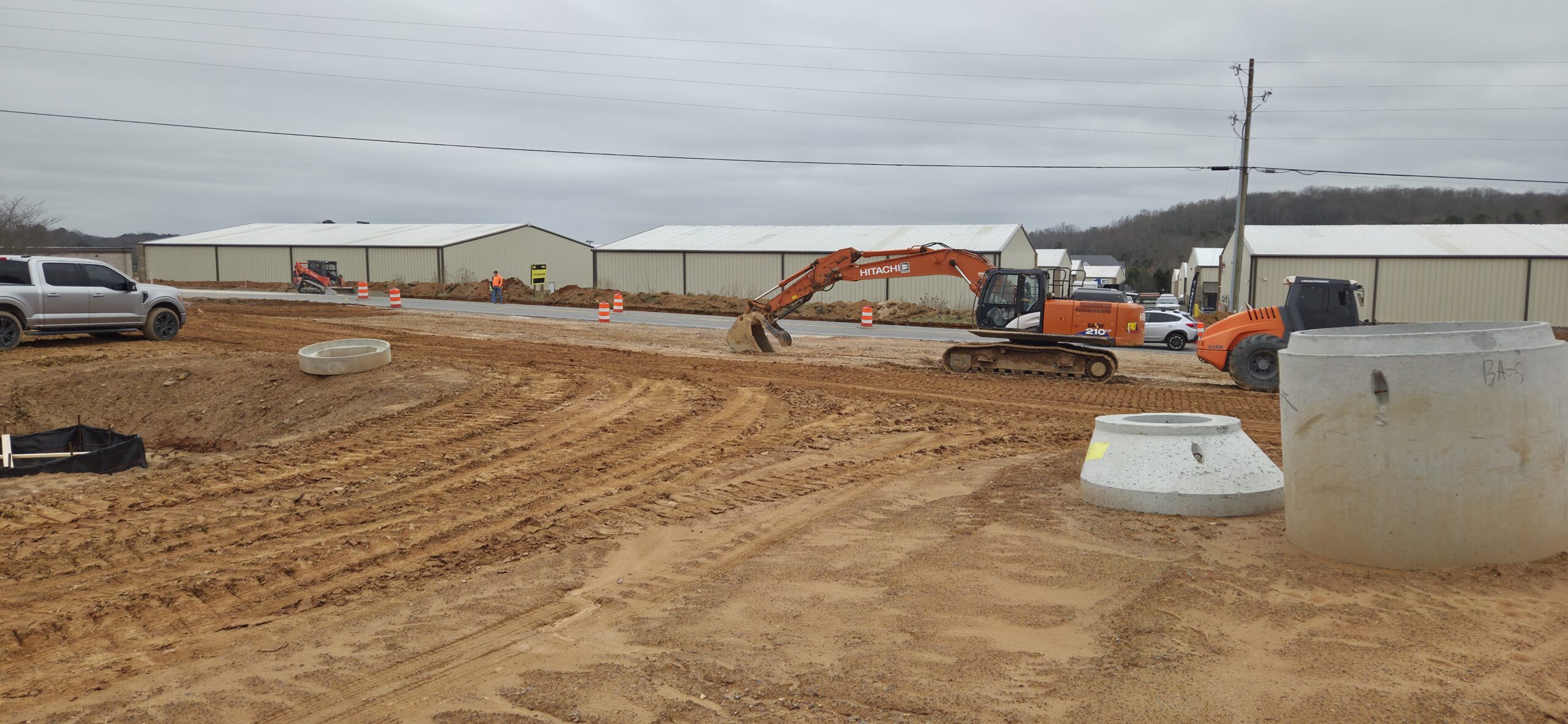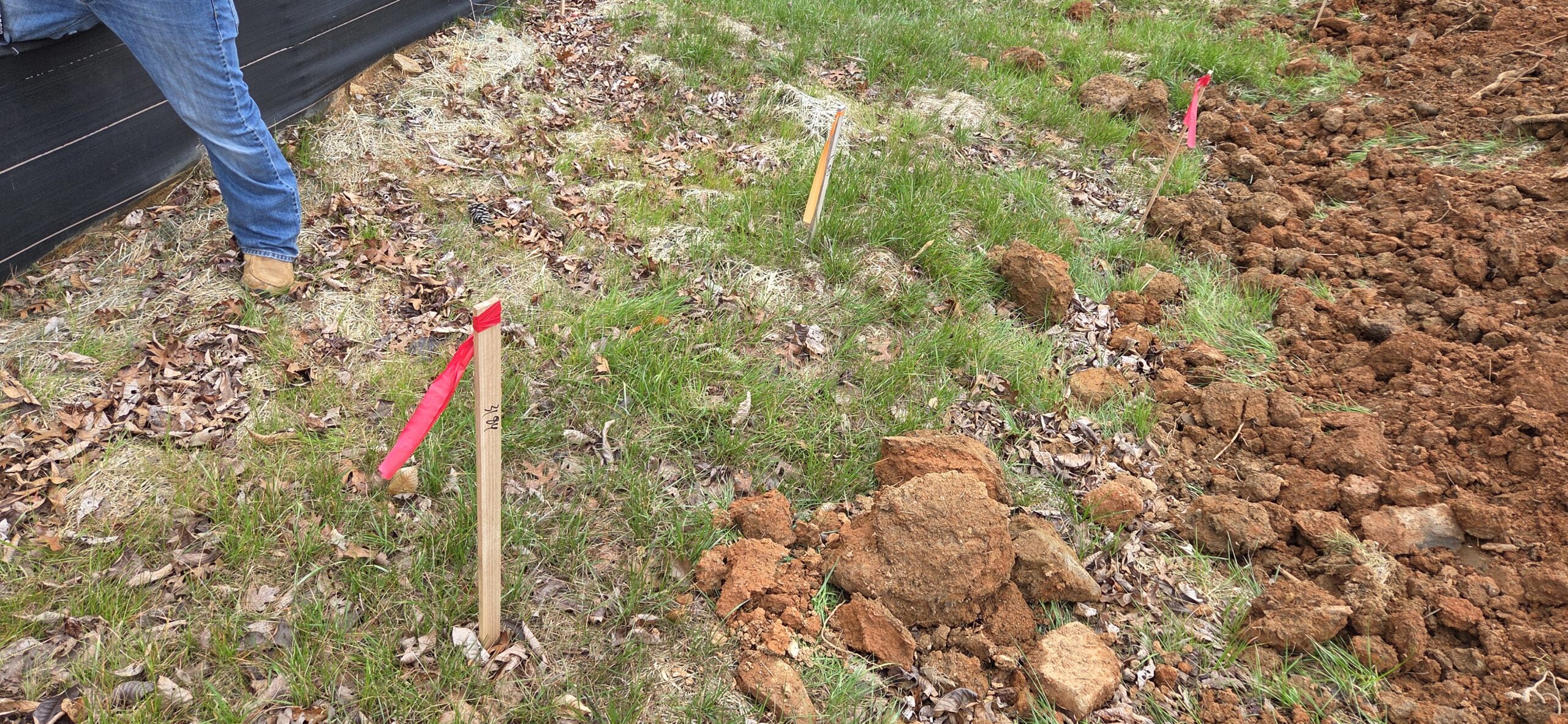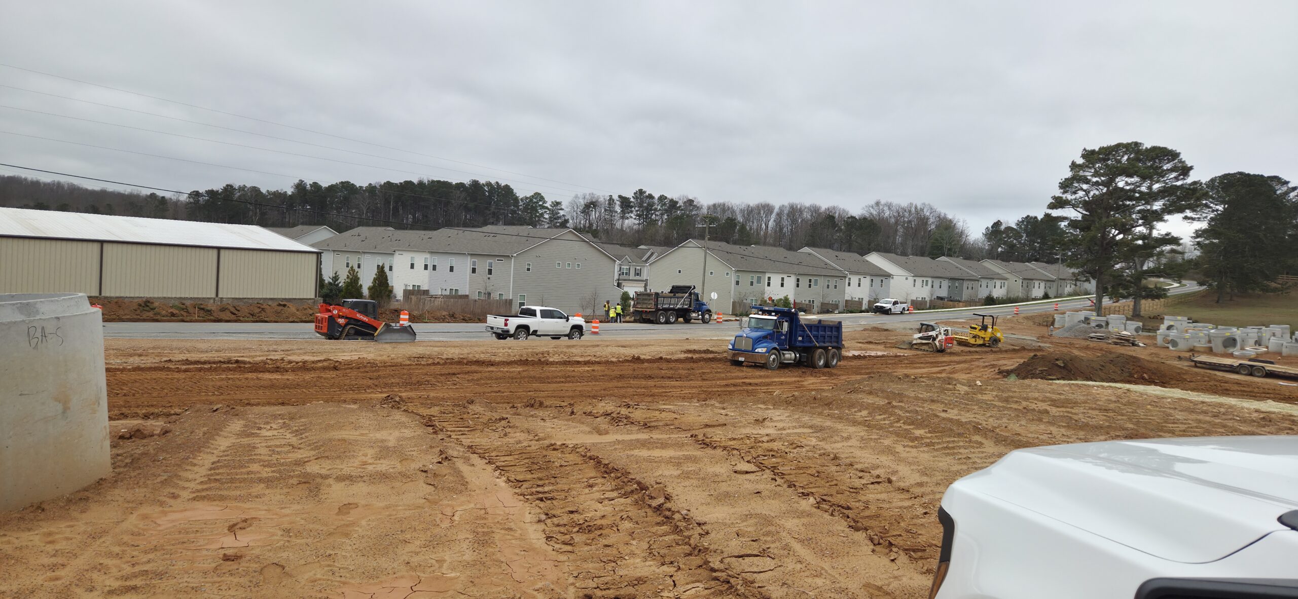 The grading crew began the excavation of wall #1. The face of wall appears to cross the LOD stakes and is within approx. 10ft to 15ft of a small tree on the outside of the property line. This was brought to the contractors and Mr. Woods attention. The grading crew only has one entrance to allow trucks down to the wall, which has extended the time it will take to load trucks and haul out the topsoil located along the footing. DCP testing will be conducted once the footing has been excavated.