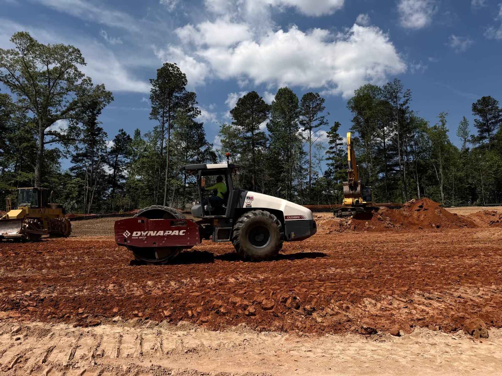 Crew continued working on Lots #62, 63, 64, and the adjacent roadway area. Fill material was placed in lifts, spread using a crawler bulldozer, and compacted using both a sheep-foot roller and a Caterpillar 815. Density tests were performed and met required compaction specifications.
