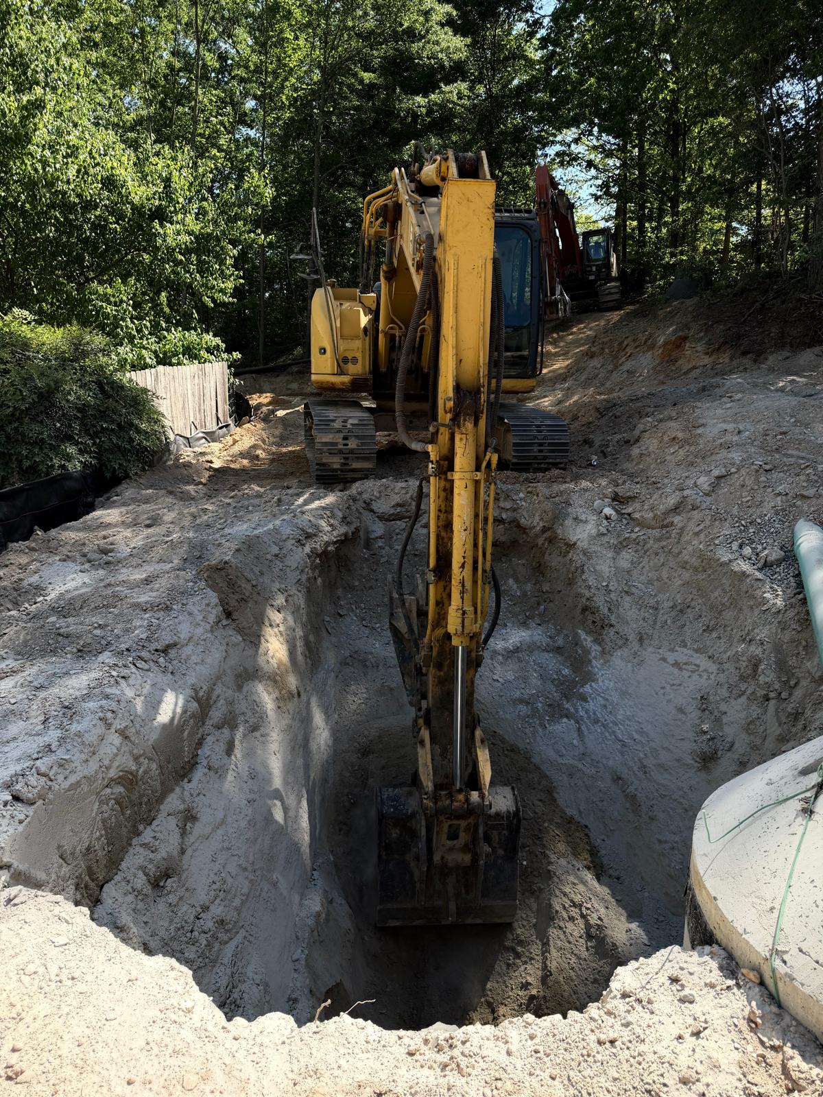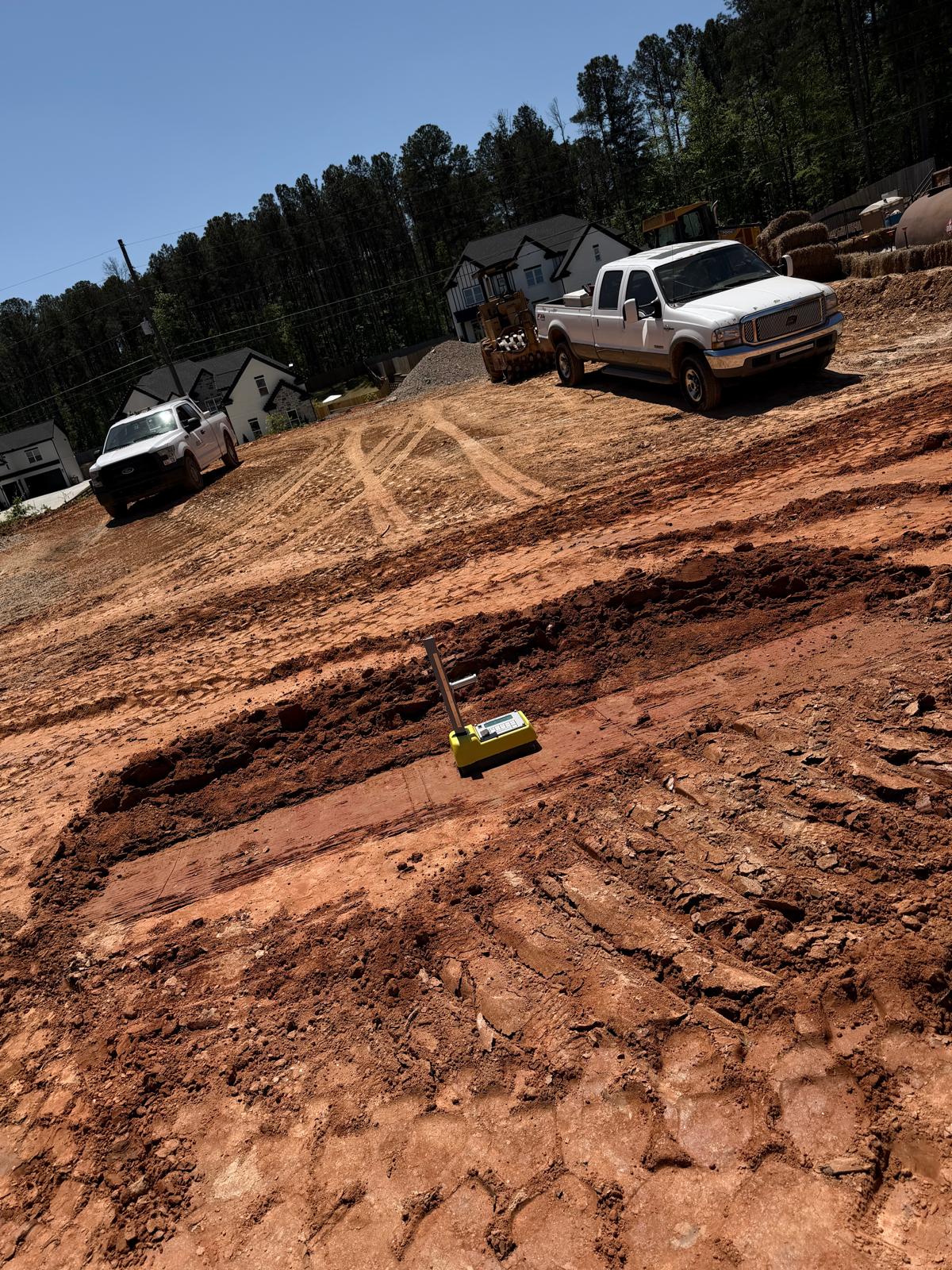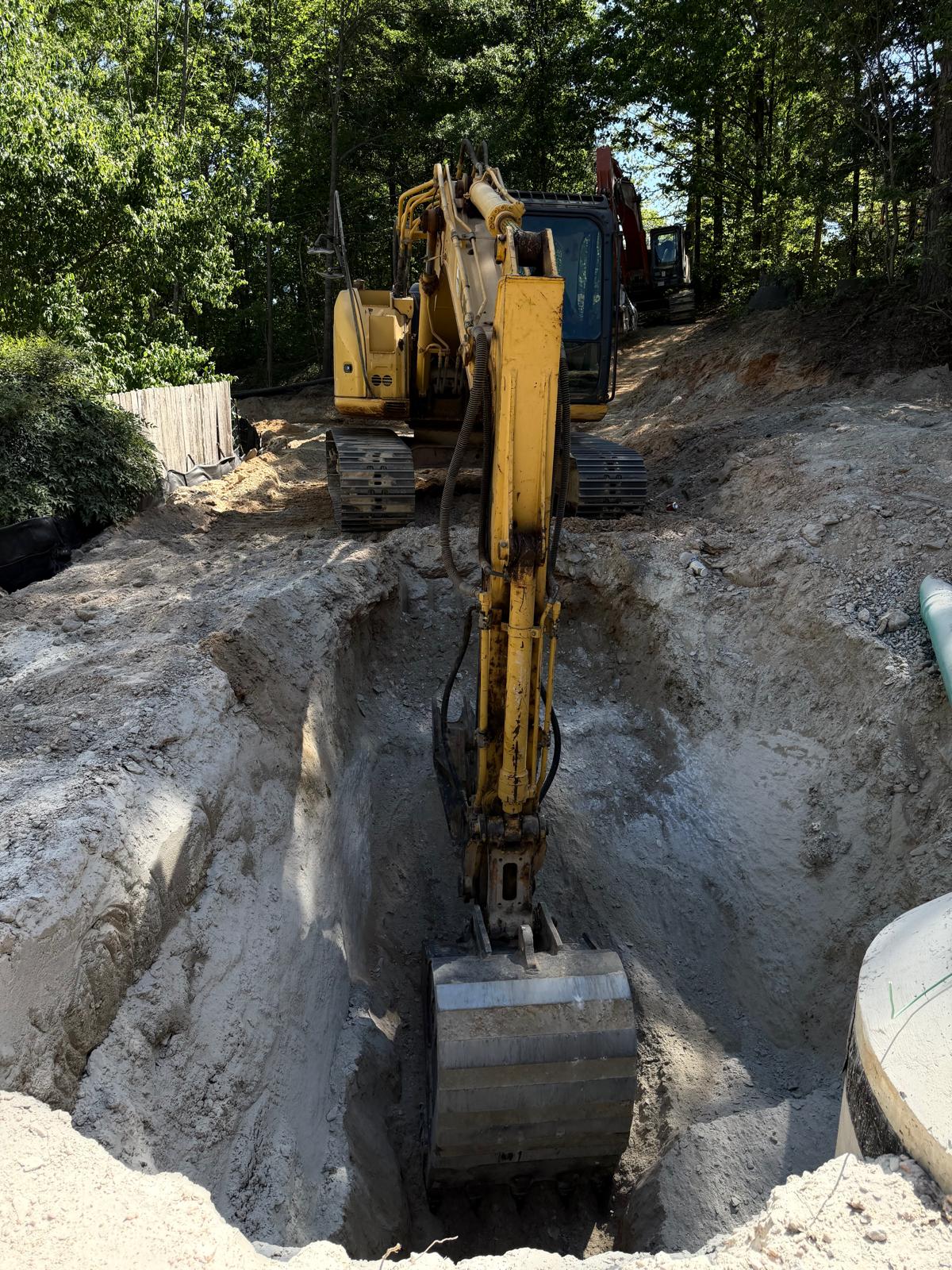At the Buford neighborhood site, the crew continued trench excavation using a hydraulic excavator equipped with a rock grinder to achieve the required depth and alignment.