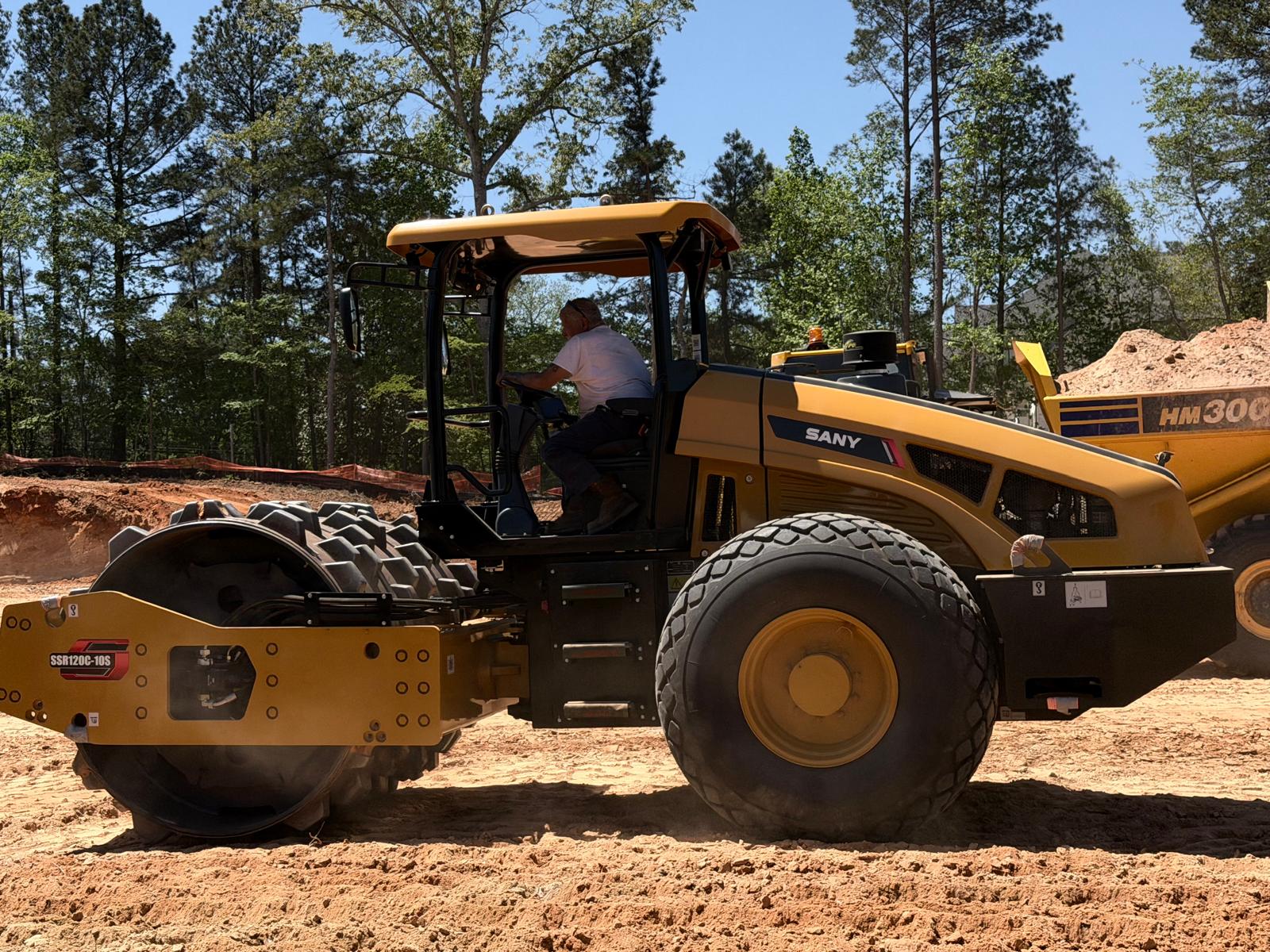 On the other side, the crew continued working on the deceleration lane, where the sub-grade was leveled, and fill material was placed in lifts using a crawler bulldozer and compacted using a sheep-foot roller.