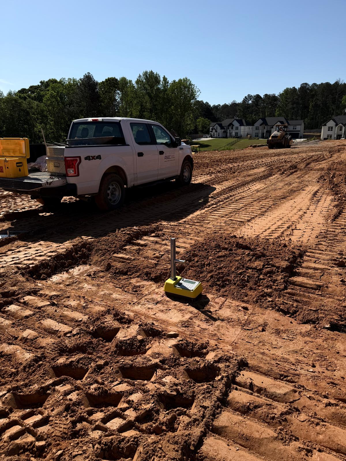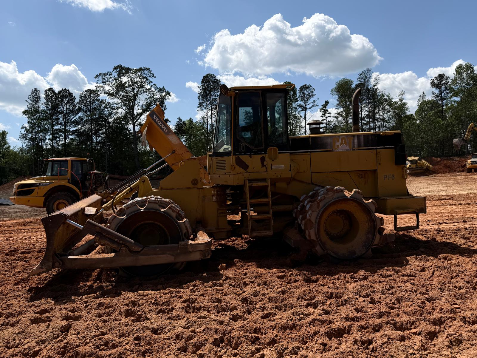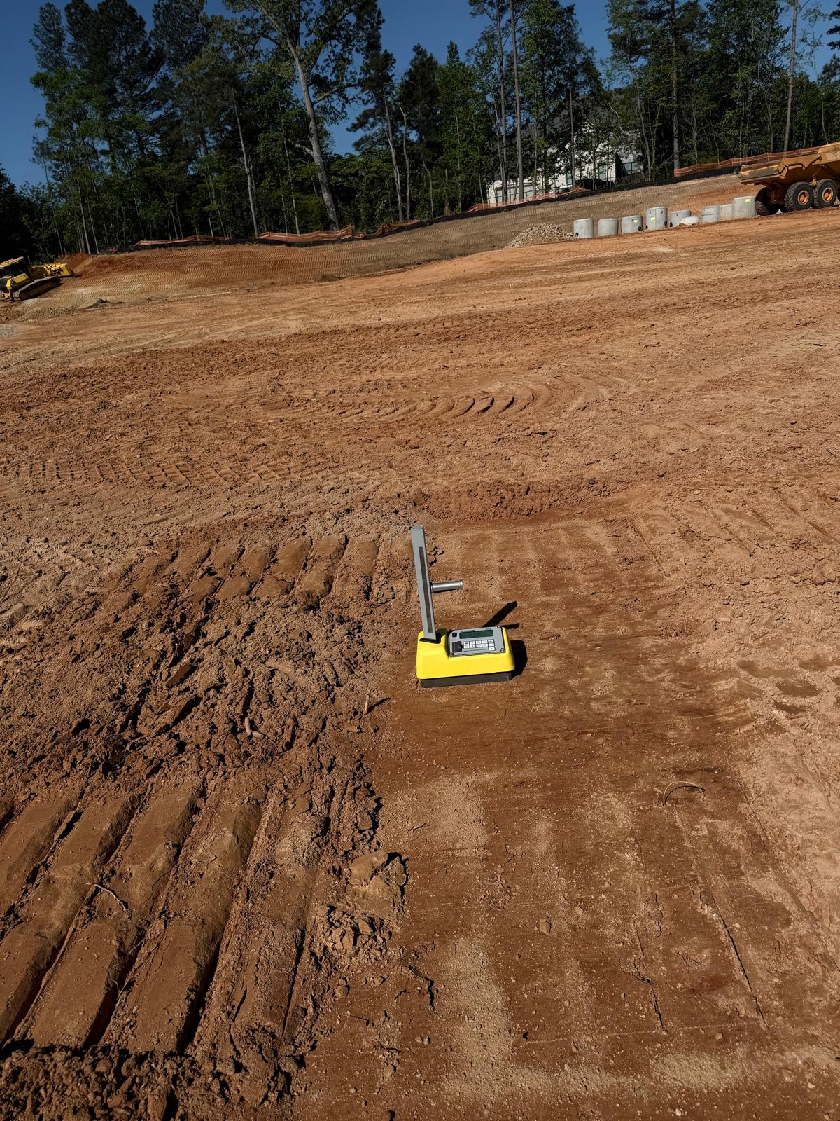 Crew continued working on Lots #62, 63, 64, and the adjacent roadway area. Fill material was placed in lifts, spread using a crawler bulldozer, and compacted using both a sheep-foot roller and a Caterpillar 815. Density tests were performed, and the results met the required project compaction specifications.