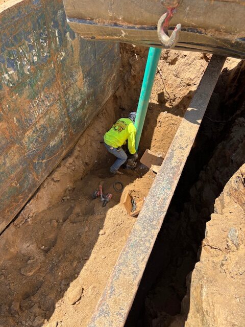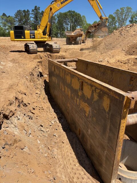 The writer also observed the pipe contractor continue installing 8″ ductile iron sanitary sewer line between manholes #B13 and B14. The contractor had installed between B12 and B13 including laterals. The contractor had placed approximately two feet of fill over the pipe.