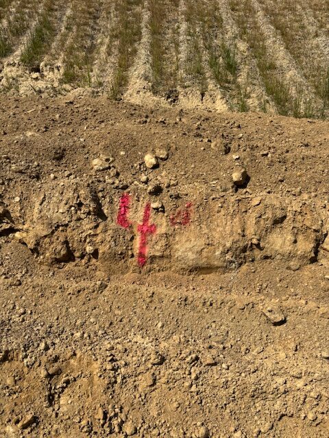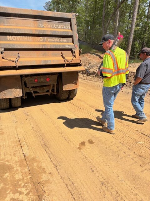On the above date our representative was on site to observe proof-rolling of subgrade soils at Nature Walk Parkway between manholes #10 and 11. The subgrade was proof-rolled using a loaded tandem dump truck with 19.35 tons making two passes over all areas. The east side lane appeared stable under traffic with no additional clipping required. The west side lane had several isolated spots having slight to moderate movement under traffic with recommendations to clip areas -4″ and one area -8″ and replace with additional base stone.
