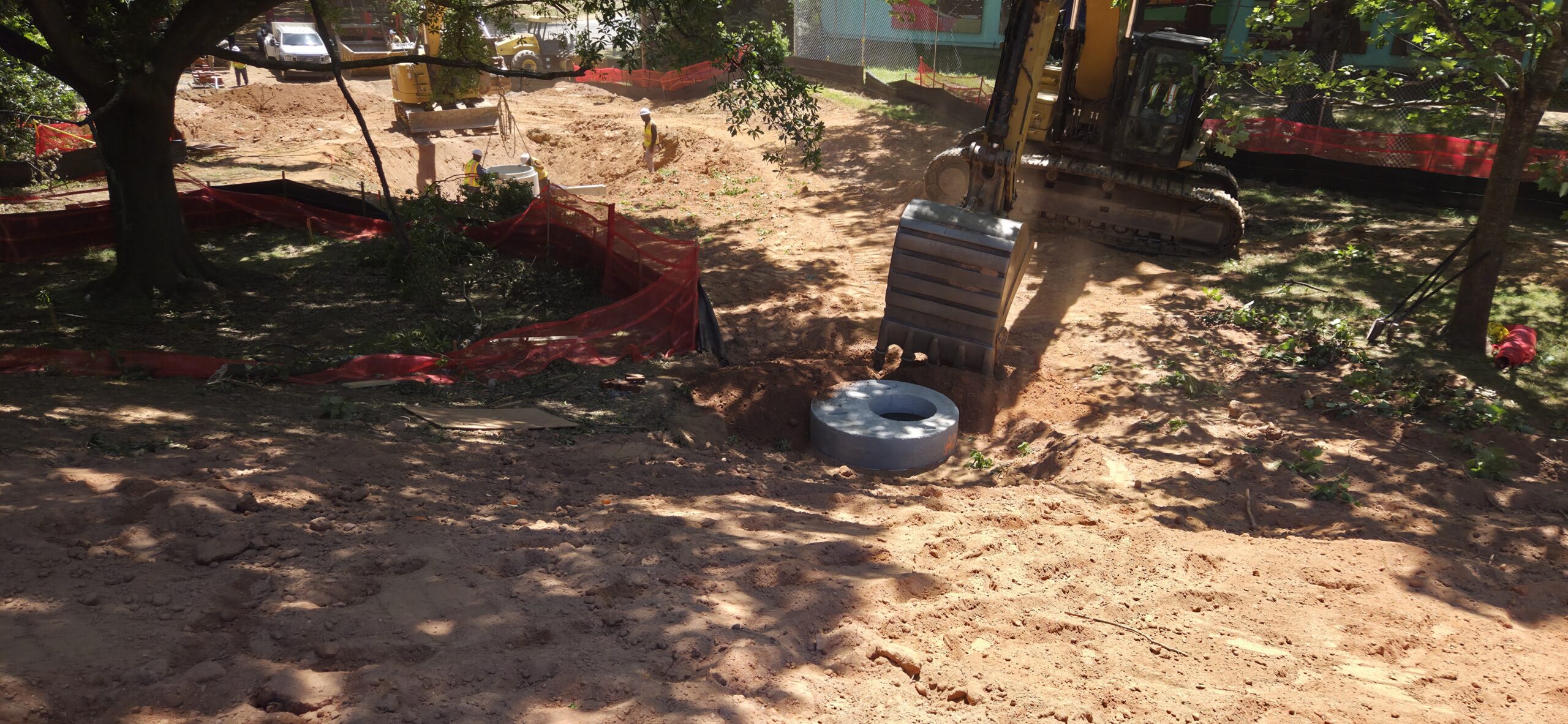 Our ASEC representative was on site to observe the contractor (Lewis Contracting) and for the observation/testing of the placement of fill/backfill. The contractors began backfilling of the storm line. The contractors placed lifts approximately 12 inches in thickness and compacted using a vibrating sheep-foot roller. Density testing was performed and test results were provided to the contractor. DCP testing was requested for the wall in the pond area. This will be performed on another day this week.