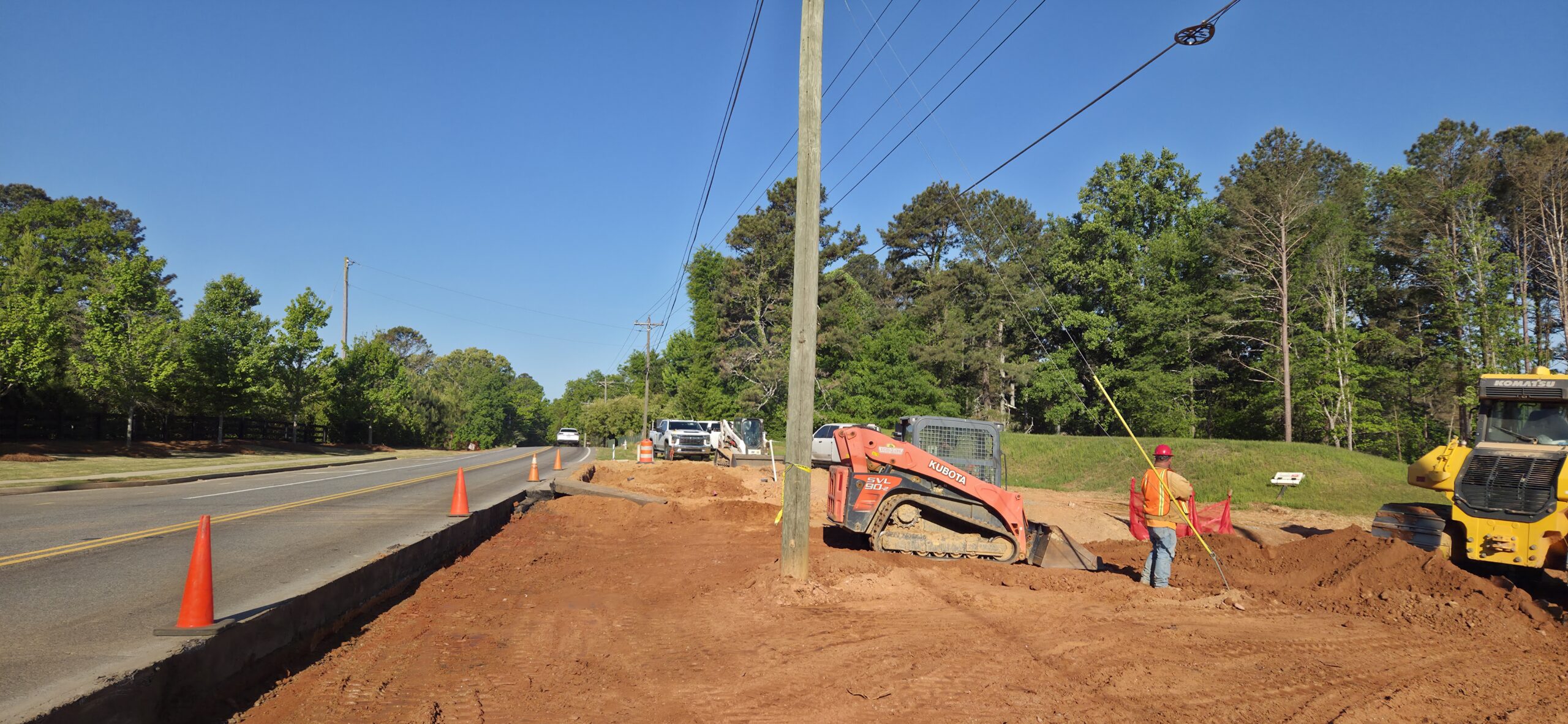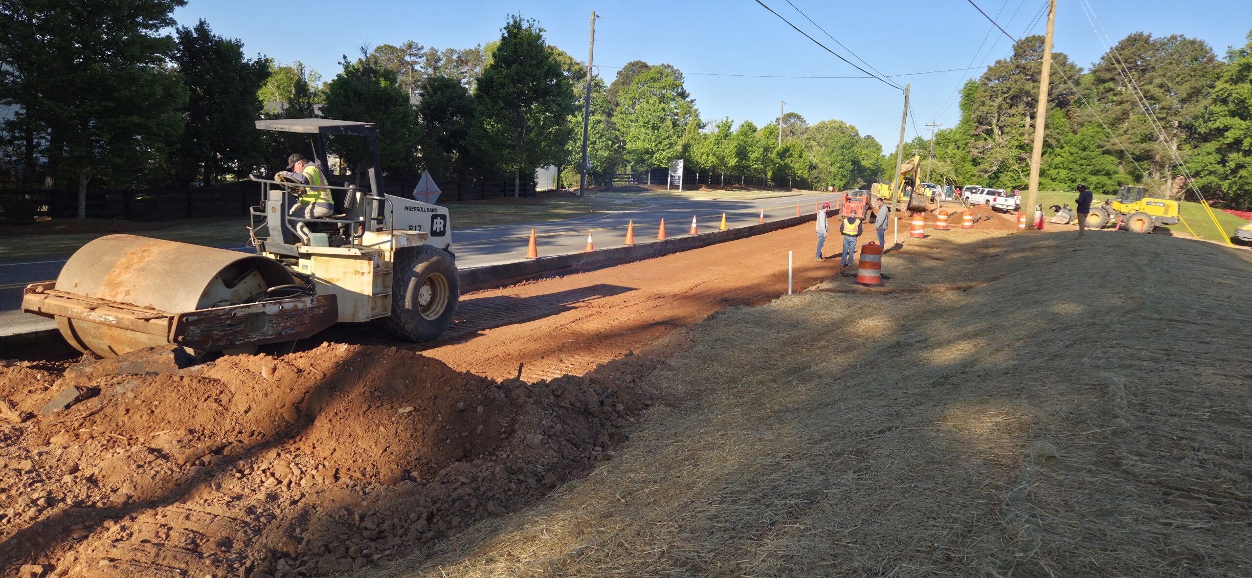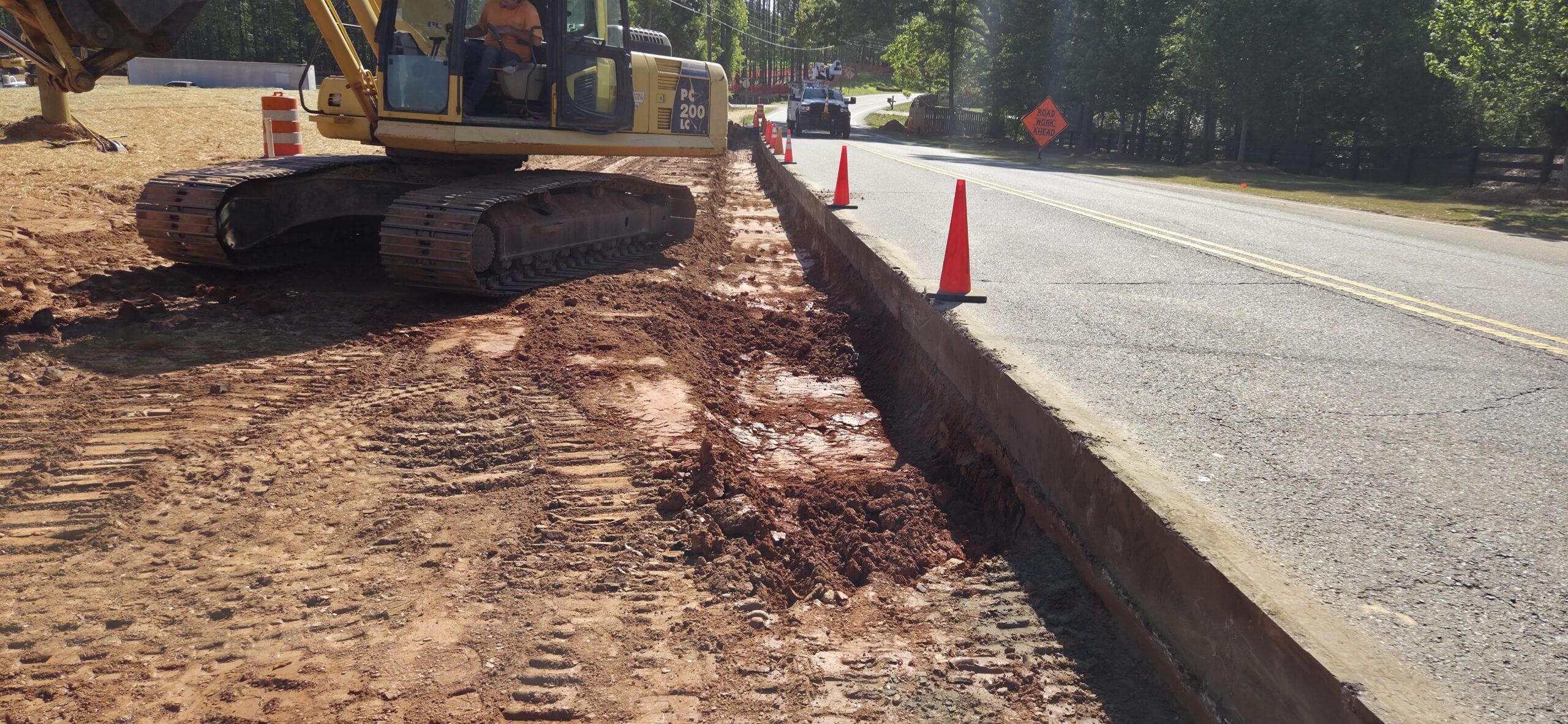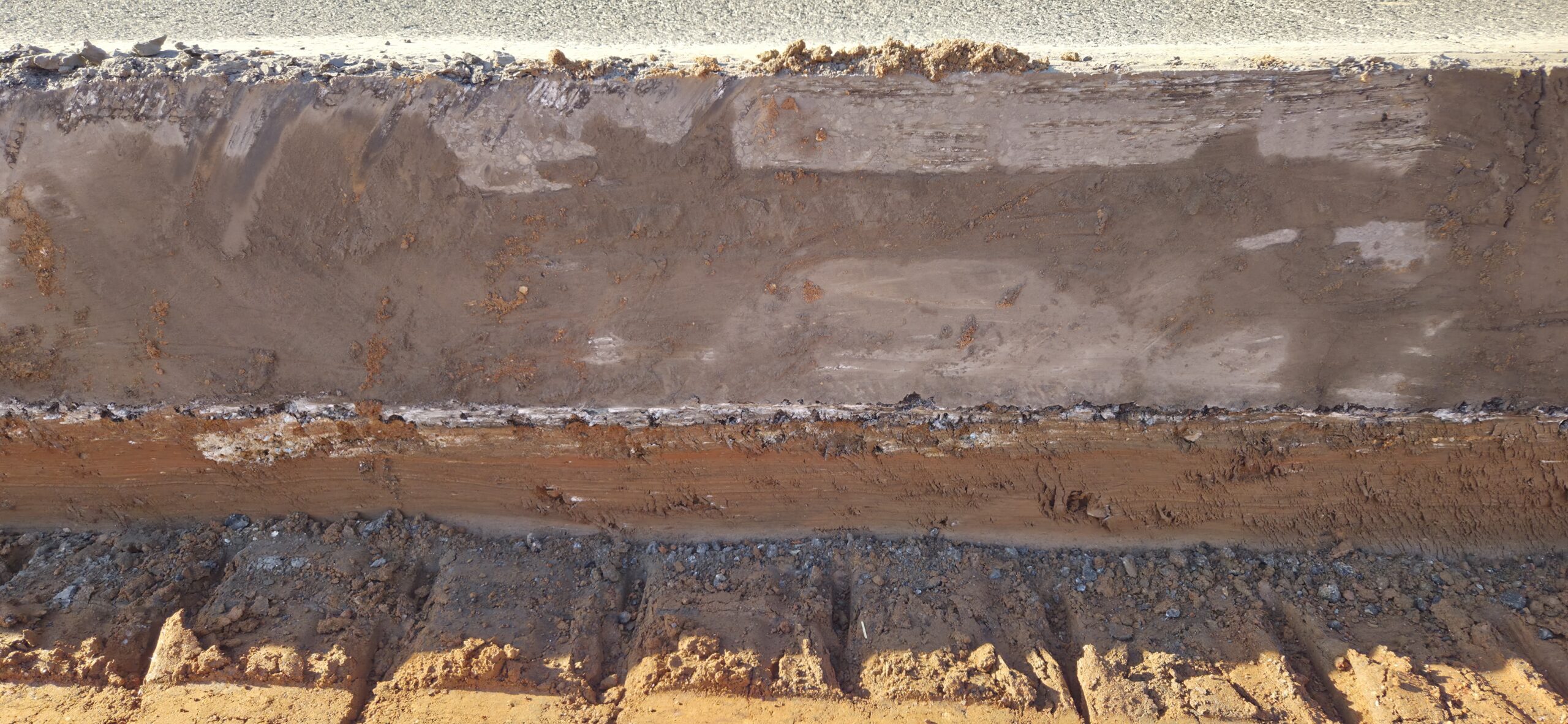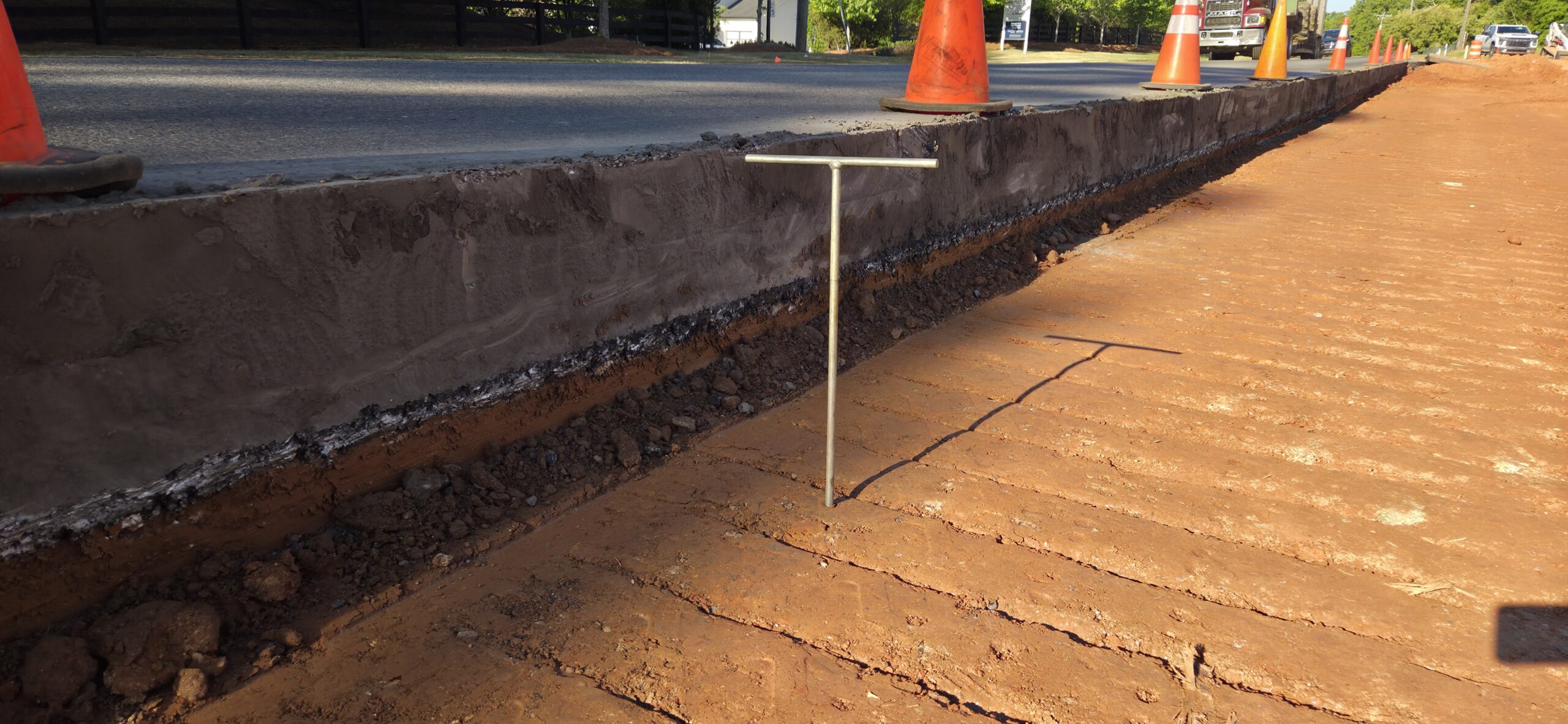 Our ASEC representative was on site to observe the contractor (NG Grading) and for the observation/testing of the placement of fill/backfill. The contractors requested a proof-roll to be performed on the deceleration lane at the entrance of the site, as well as a proof-roll to be performed on the roadway/curbs on the interior of the site. A loaded tandem axled truck was used for the proof-roll. The curb line and roadways on the interior of the site did not show any severe pumping or deflection. There were signs of pumping in the deceleration lane approximately 3 feet from the existing roadway. The existing roadway appeared to be approximately 16 inches thick with no base (see pictures). Probe rod testing was performed, and it was recommended to remove 8 to 12 inches of soil from the pumping areas and replace with GAB. The contractor removed the soil and replaced with GAB in approximately 8-inch lifts and compacted with a walk behind trench roller. ASEC came back to the site later in the day to reroll this area with a loaded truck. The severe pumping was no longer present after remediation.