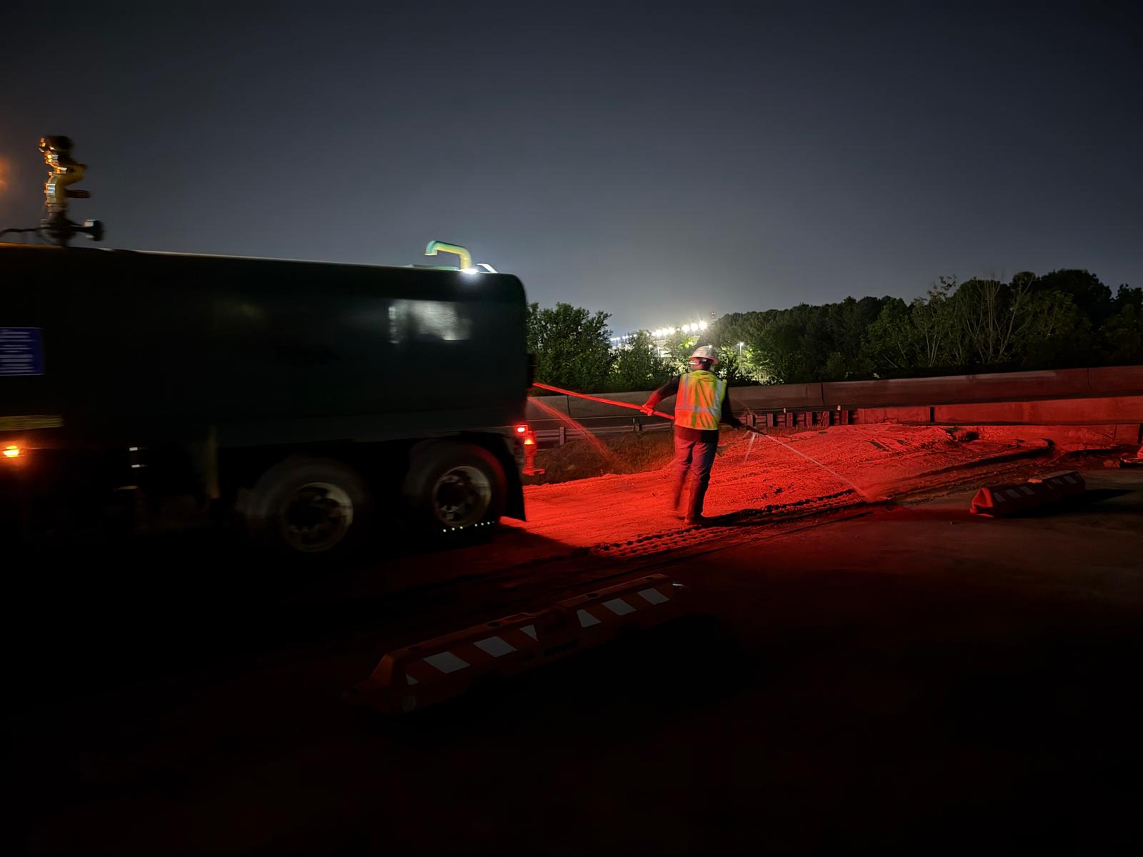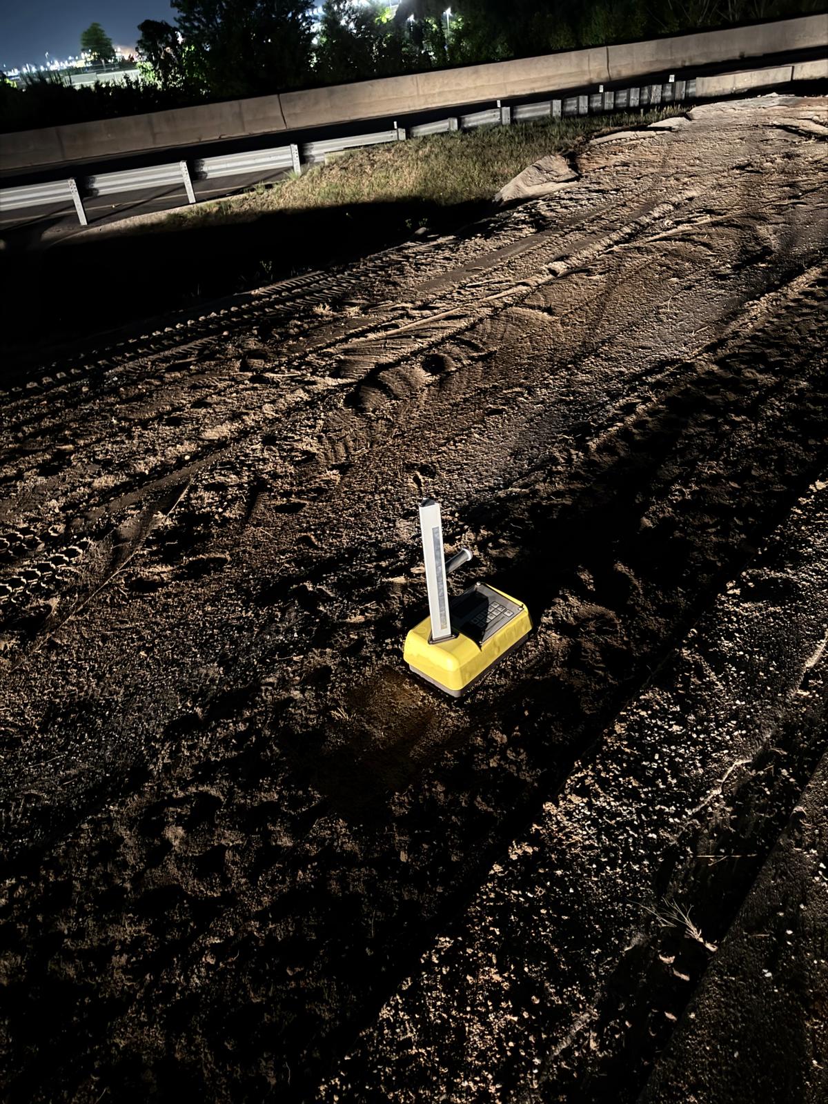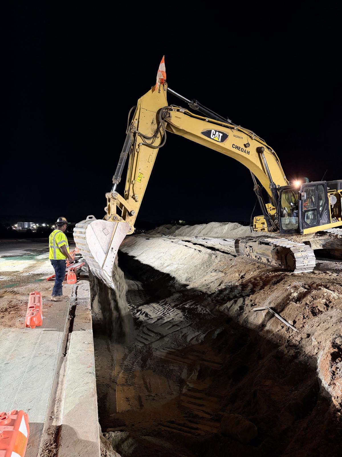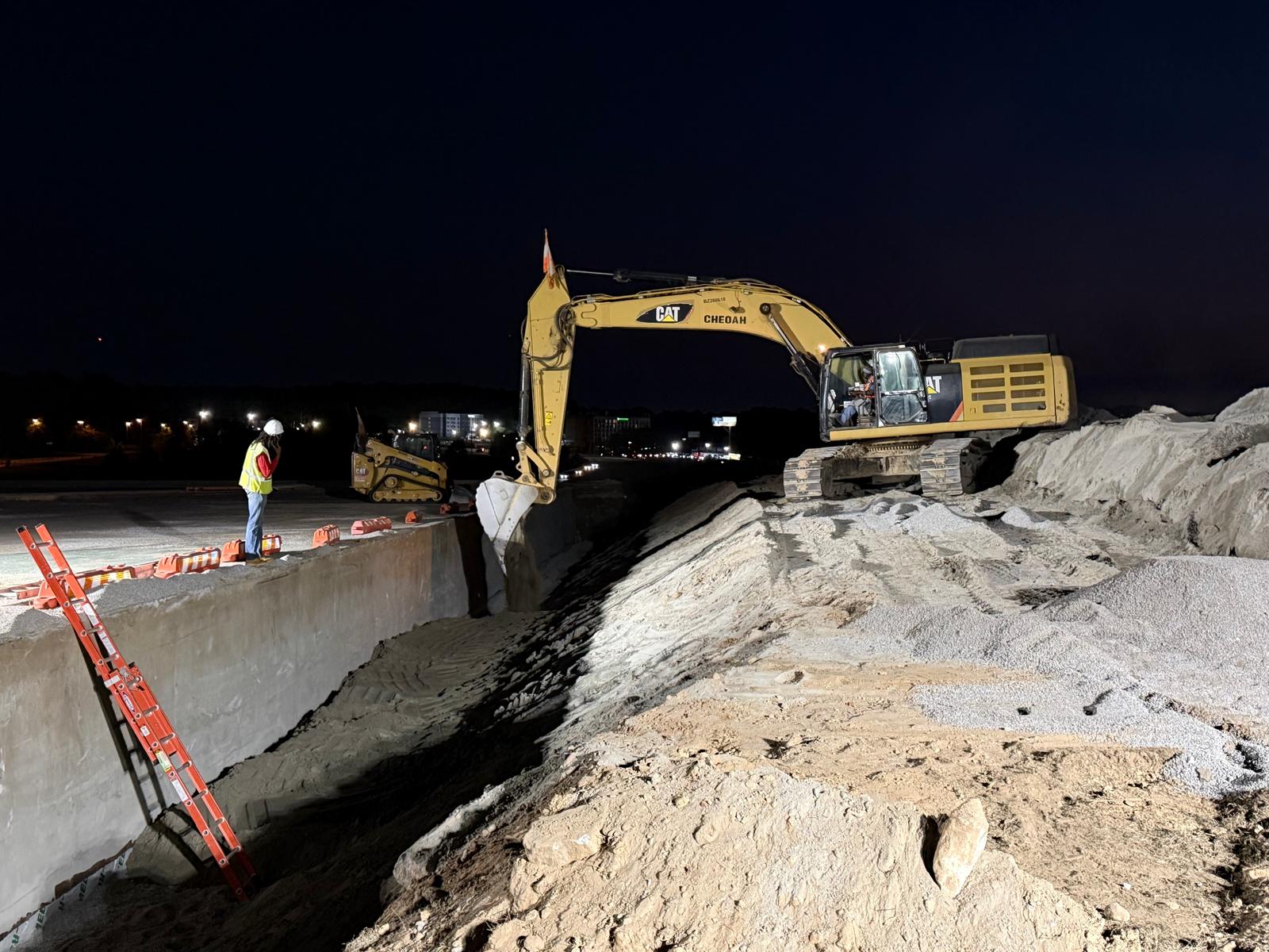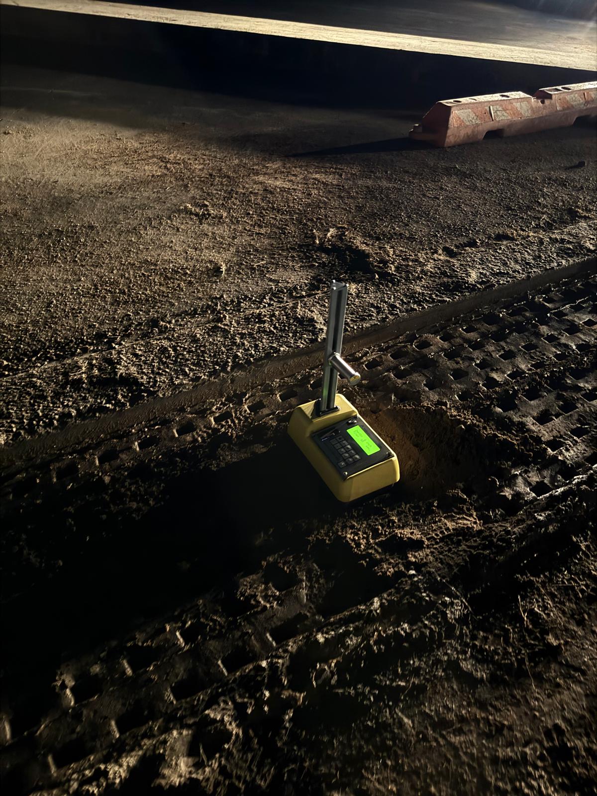 Placement of No. 89 stone was carried out above the pipe with a thickness of approximately 6 inches. Following this, M10 material was placed as backfill in lifts. Water was added to achieve optimum moisture content, and compaction was performed using a trench compactor and sheep-foot roller.
