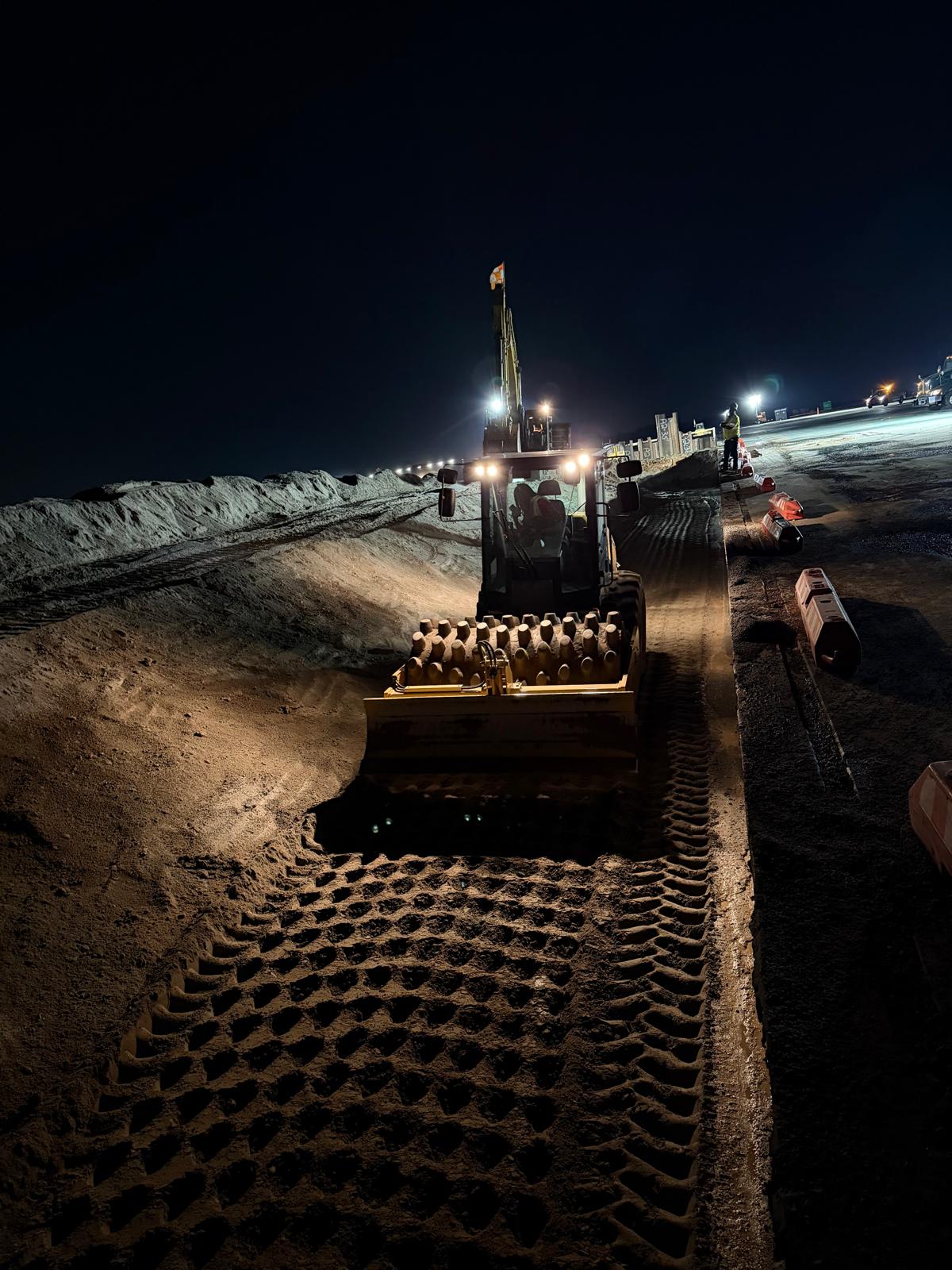 Work activities continued across multiple areas, including fill placement, compaction, testing, and waterproofing operations.