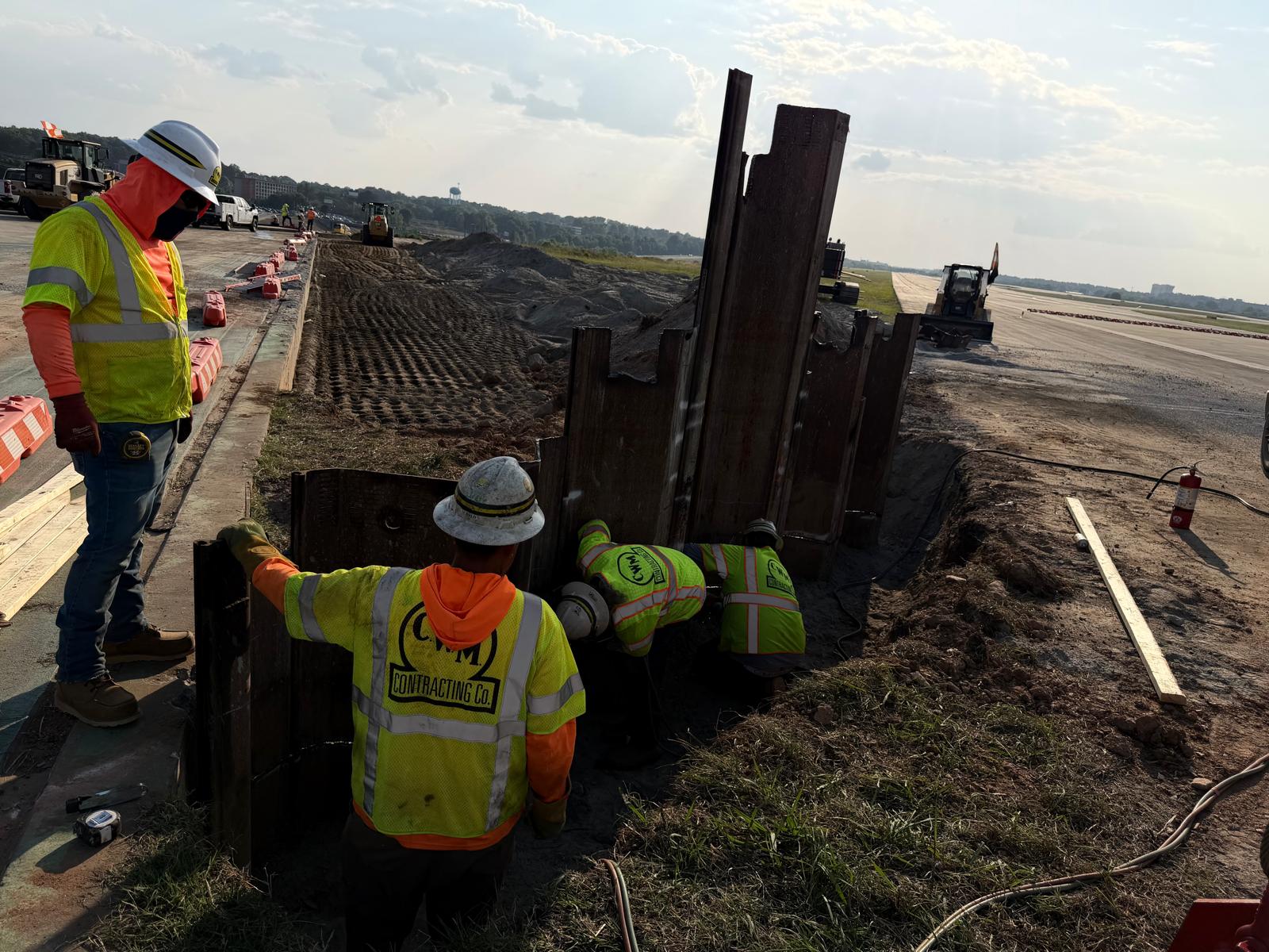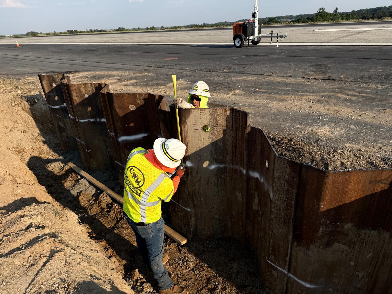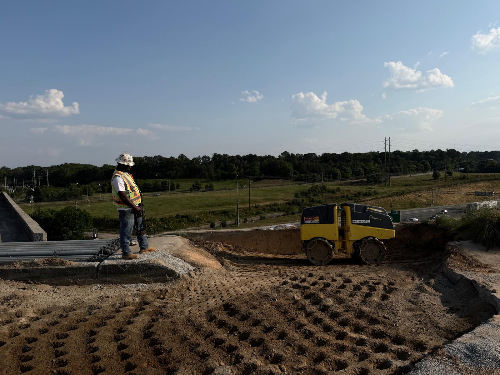 Sheet piles were cut approximately 2 feet below grade. Work continued with placement of M10 material as backfill. The material was compacted using a sheep-foot roller. Density tests were performed and initially did not meet the required compaction. Additional compaction was performed, and after re-testing, it met required compaction. Final grade was then compacted using a smooth drum roller, and performed density tests it met the required compaction.