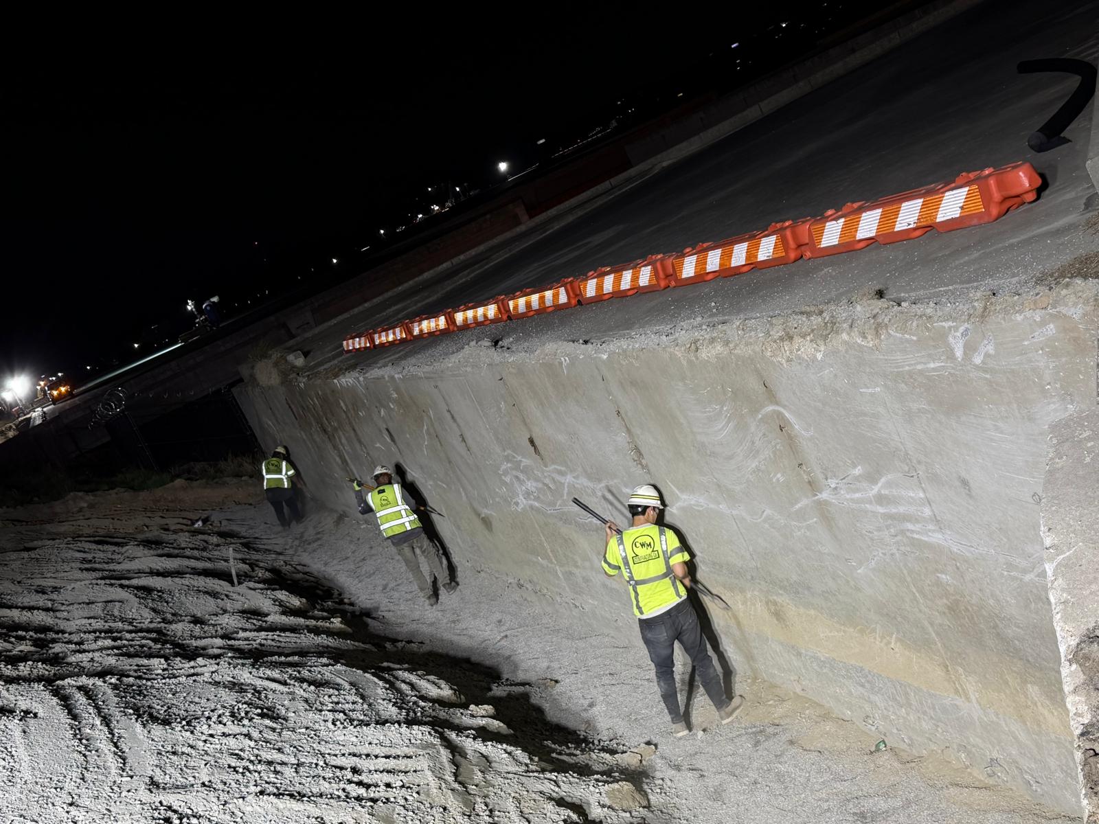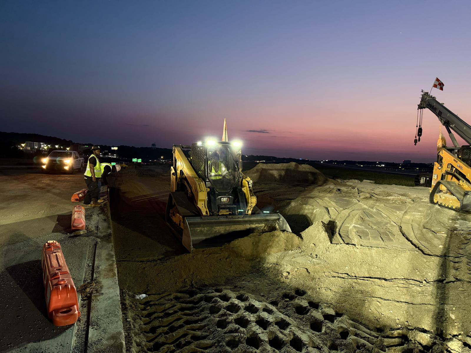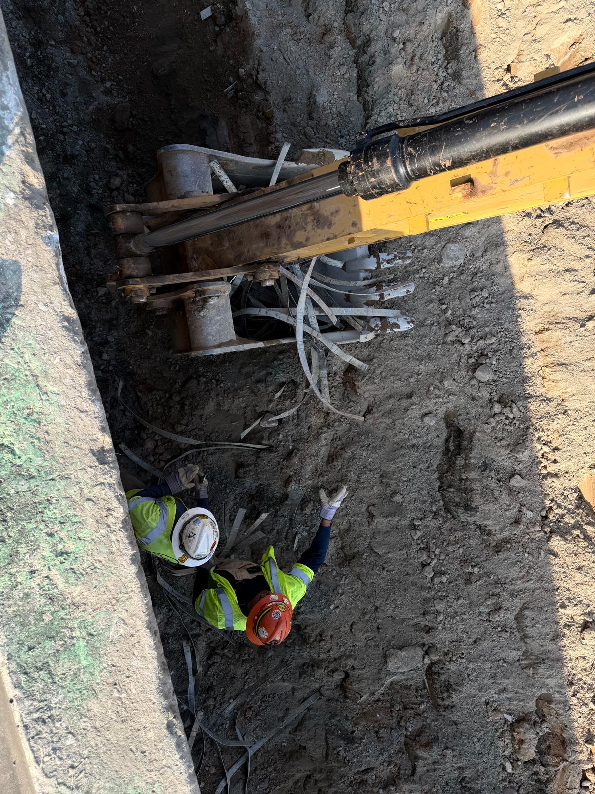 Sheet piles were cut approximately 2 feet below grade. Work continued with placement of M10 material as backfill. The material was compacted using a sheep-foot roller. Density tests were performed and initially did not meet the required compaction. Additional compaction was performed, and after re-testing, it met required compaction. Final grade was then compacted using a smooth drum roller, and performed density tests it met the required compaction.