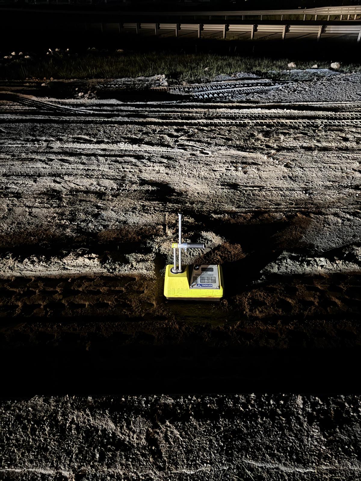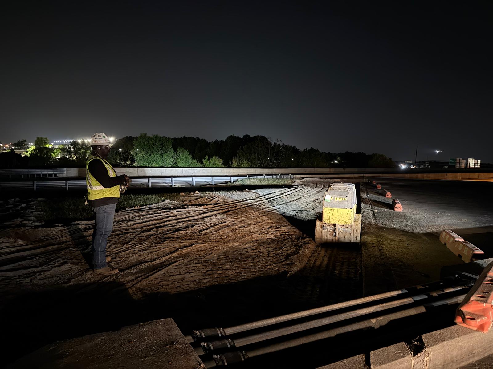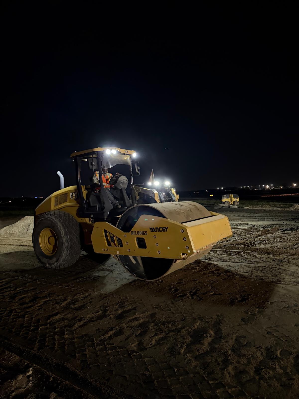 Proof-rolled in day shift, crew placed a 6-inch layer of GAB and compacted using trench compactor and smooth drum roller. Density tests were performed and met the required compaction.