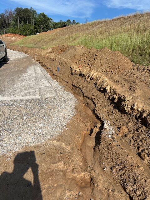 Deficient area due to rain event at toe of slope