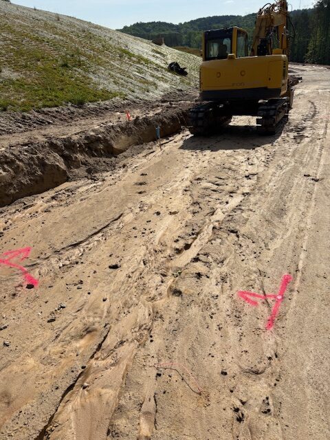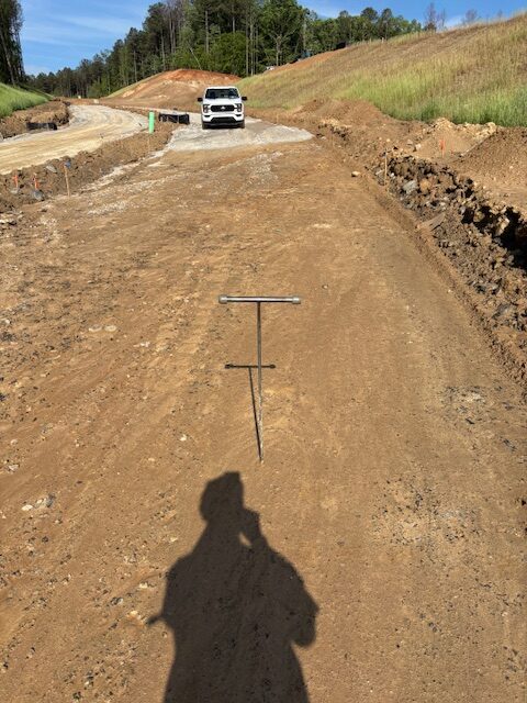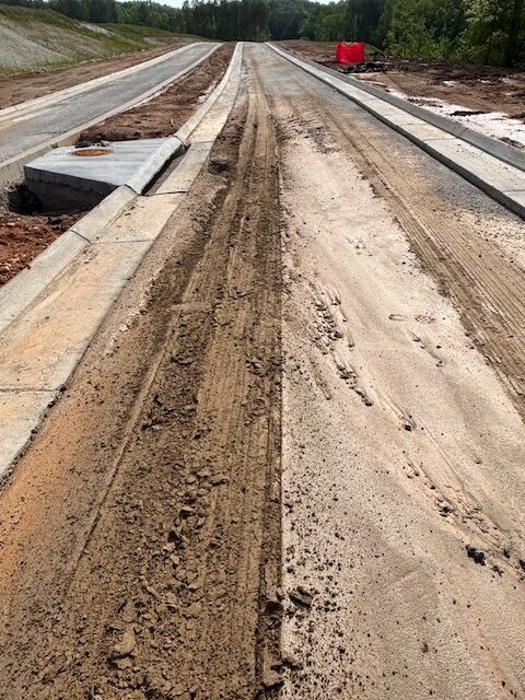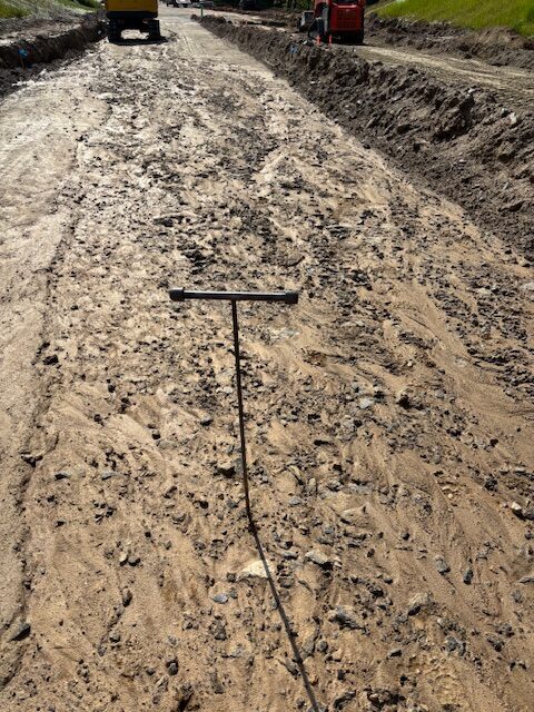 On the above date the writer was onsite as requested and observed sub grade and sub base conditions at Nature Walk Pkwy.between sanitary sewer manholes #11 and 6 after rain event.The sub grade conditions between manhole# 11 and 10 appeared stable with blast rock in place with only loose surface silts washed away.The sub grade area previous observed with recommendations to clip -4″ and replace with additional base stone still remain needed for repairs.Most areas appeared stable with recommendations made to place sub base stone over sub grade without clipping to be re observed after placement.Other areas of sub base stone in place between manhole # 9 and 6 had washed silt over some areas and will require clipping to remove.The clipped materials was recommended to be placed at washed gullies at edge of curb line.The Paving contractor continued placing base stone over approved sub grade areas.