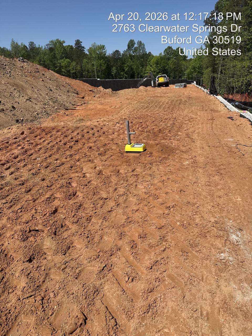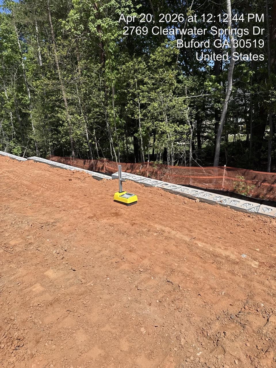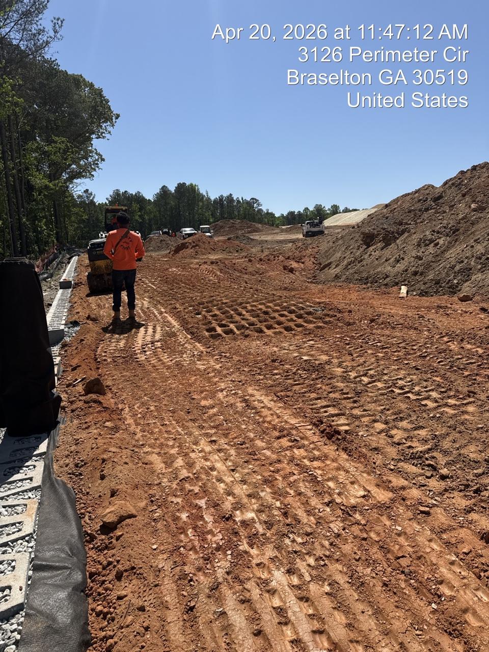 At wall 5, the crew continued wall construction by placing CMU blocks in accordance with the project plans.Fill material was placed at the wall in controlled lifts and compaccted using a trench compactor and a sheep foot roller to ensure proper stability and compaction.